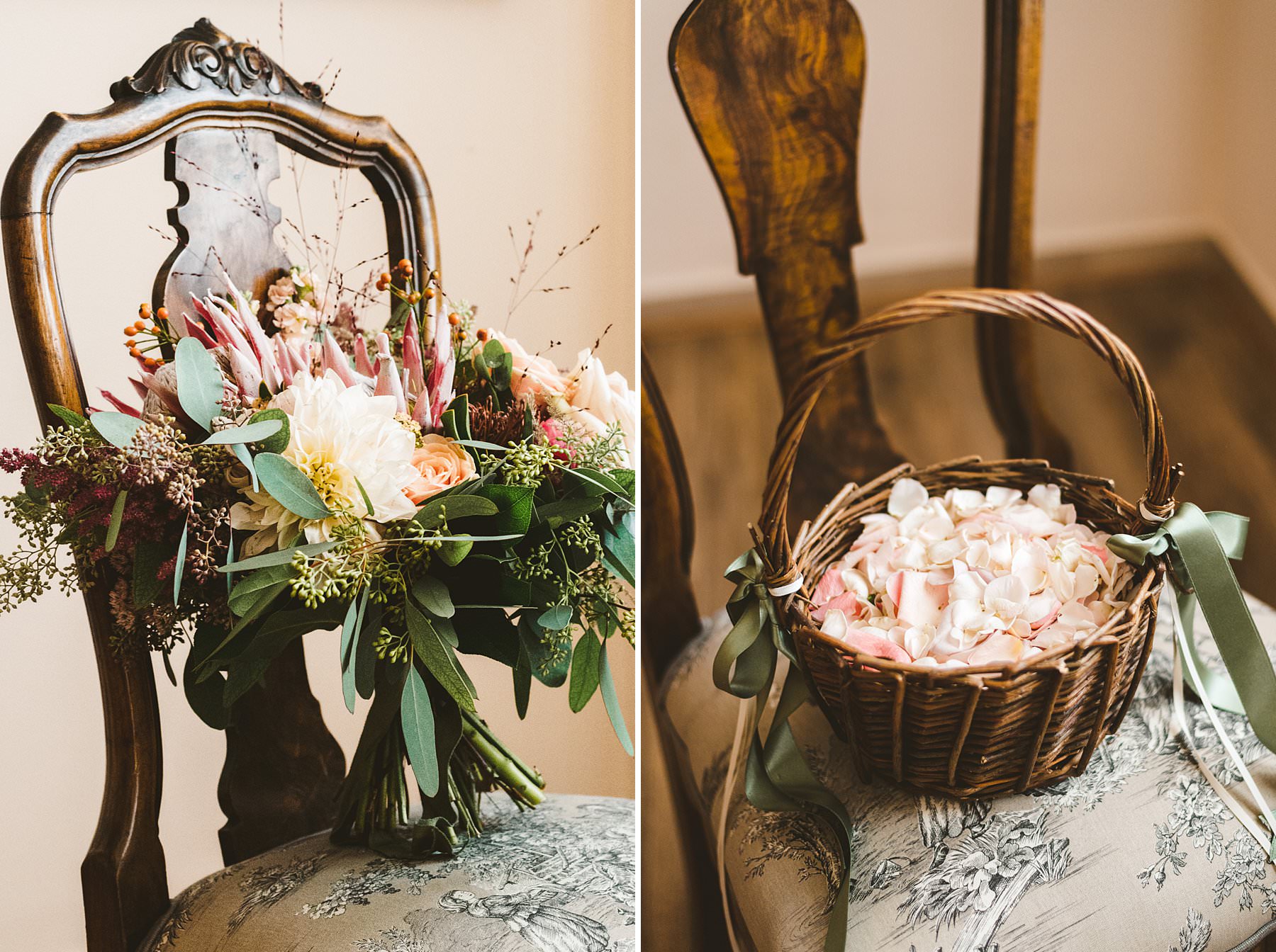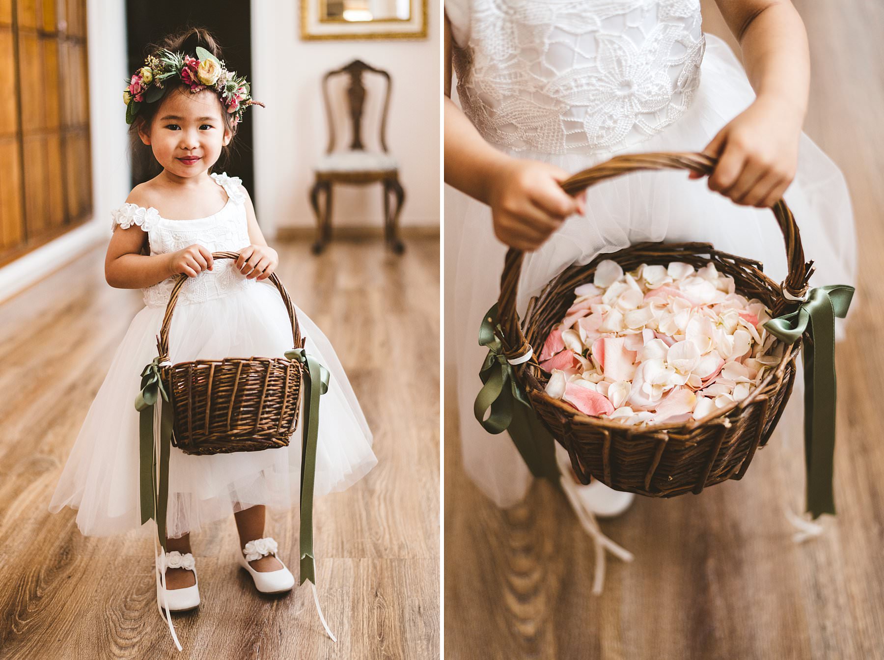 Lovely flower girl with a basket of flowers by Jardin Divers. Intimate destination wedding in Florence. Photo by the Italian elegant creative and modern destination wedding photographer in Tuscany based Florence Gabriele Fani.