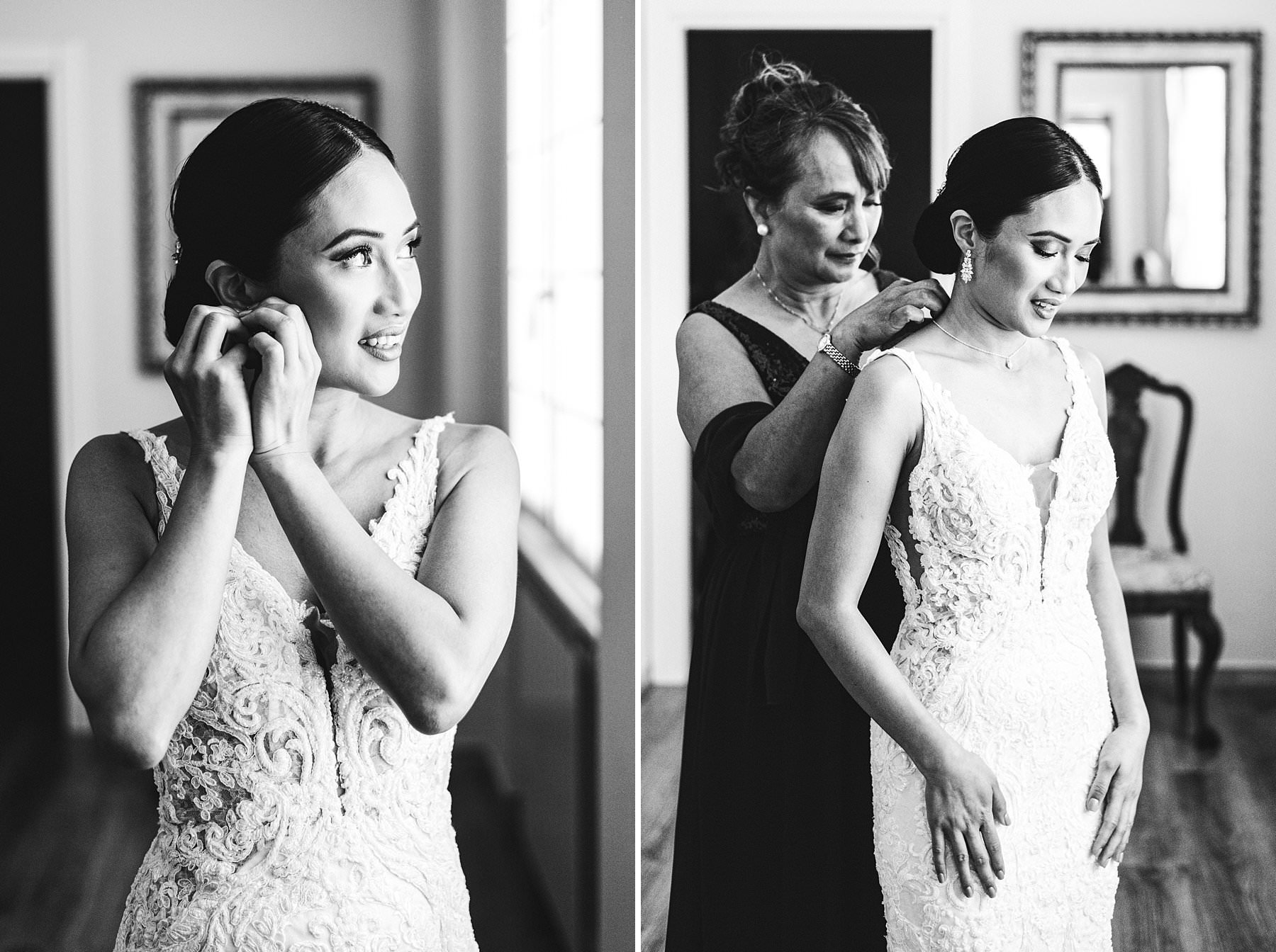 Liza and Justin’s intimate wedding at Belmond Villa San Michele. Lovely bride Liza with her luxury Martina Liana wedding gown during getting ready. Photo by the Italian elegant creative and modern destination wedding photographer in Tuscany based Florence Gabriele Fani.