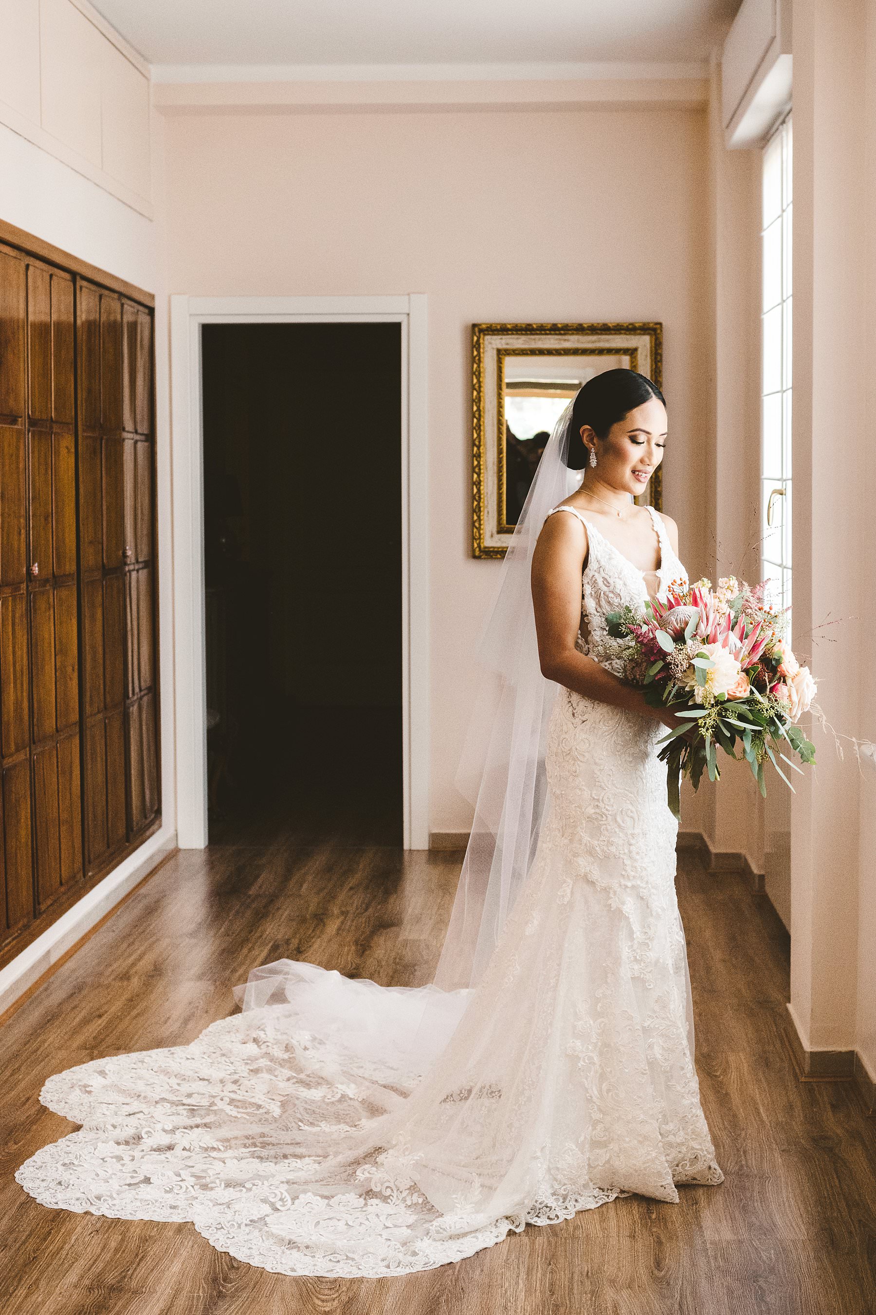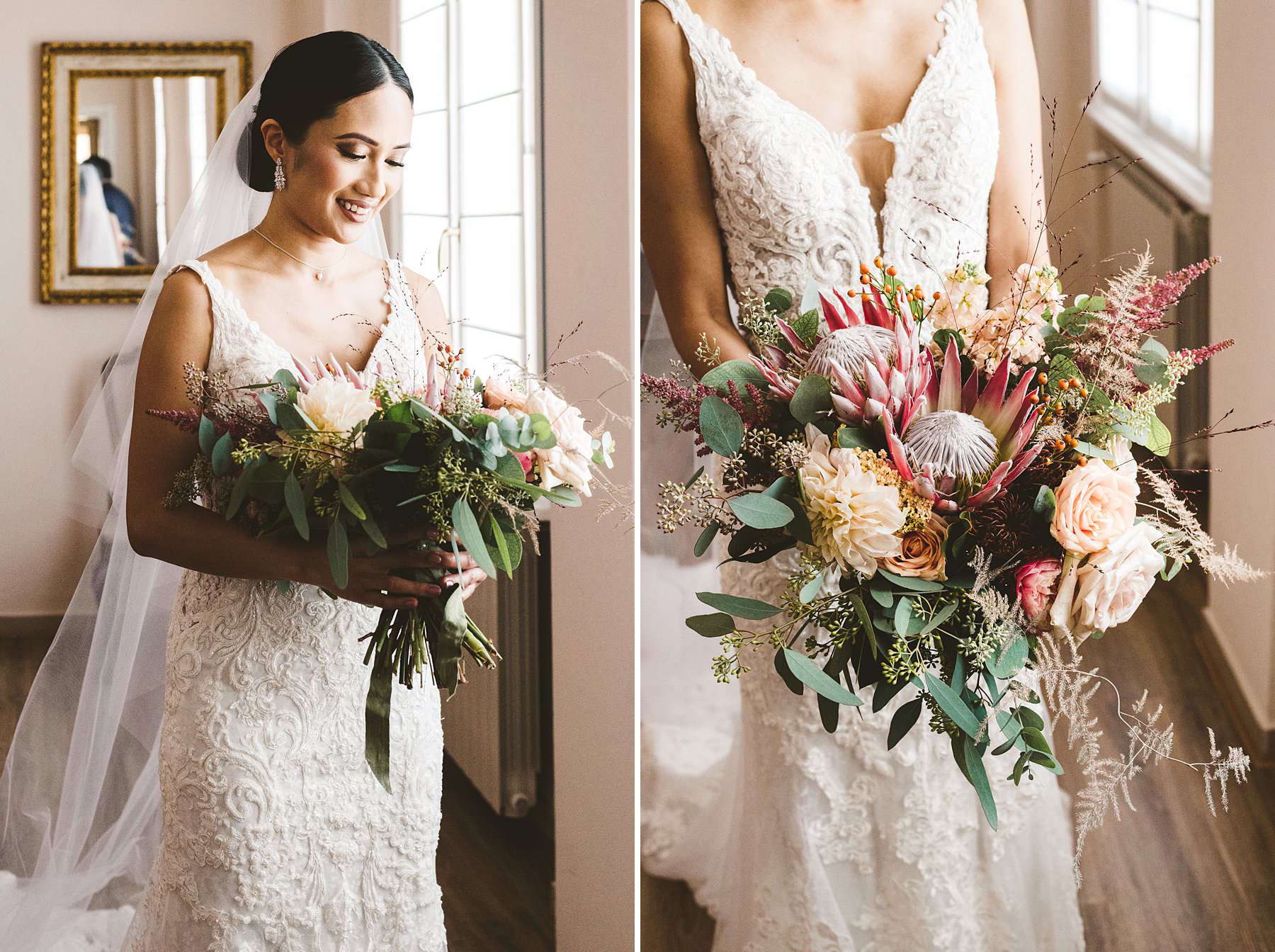 Lovely and elegant bride Liza in her Martina Liana luxury wedding gown and beautiful bouquet made by talented flower designer Jardin Divers. Photo by the Italian elegant creative and modern destination wedding photographer in Tuscany based Florence Gabriele Fani.
