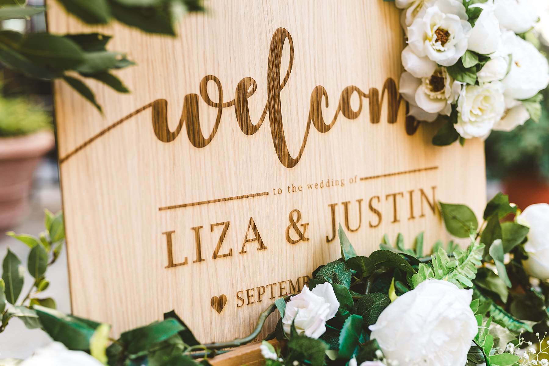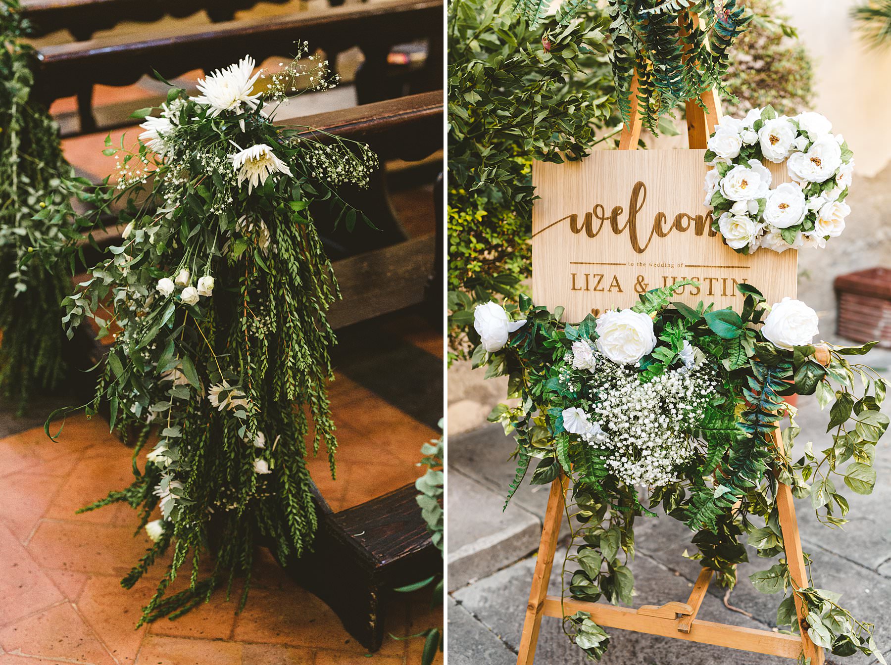 Lovely flower decoration bride and groom sign at San Barnaba Church in Florence. Photo by the Italian elegant creative and modern destination wedding photographer in Tuscany based Florence Gabriele Fani.