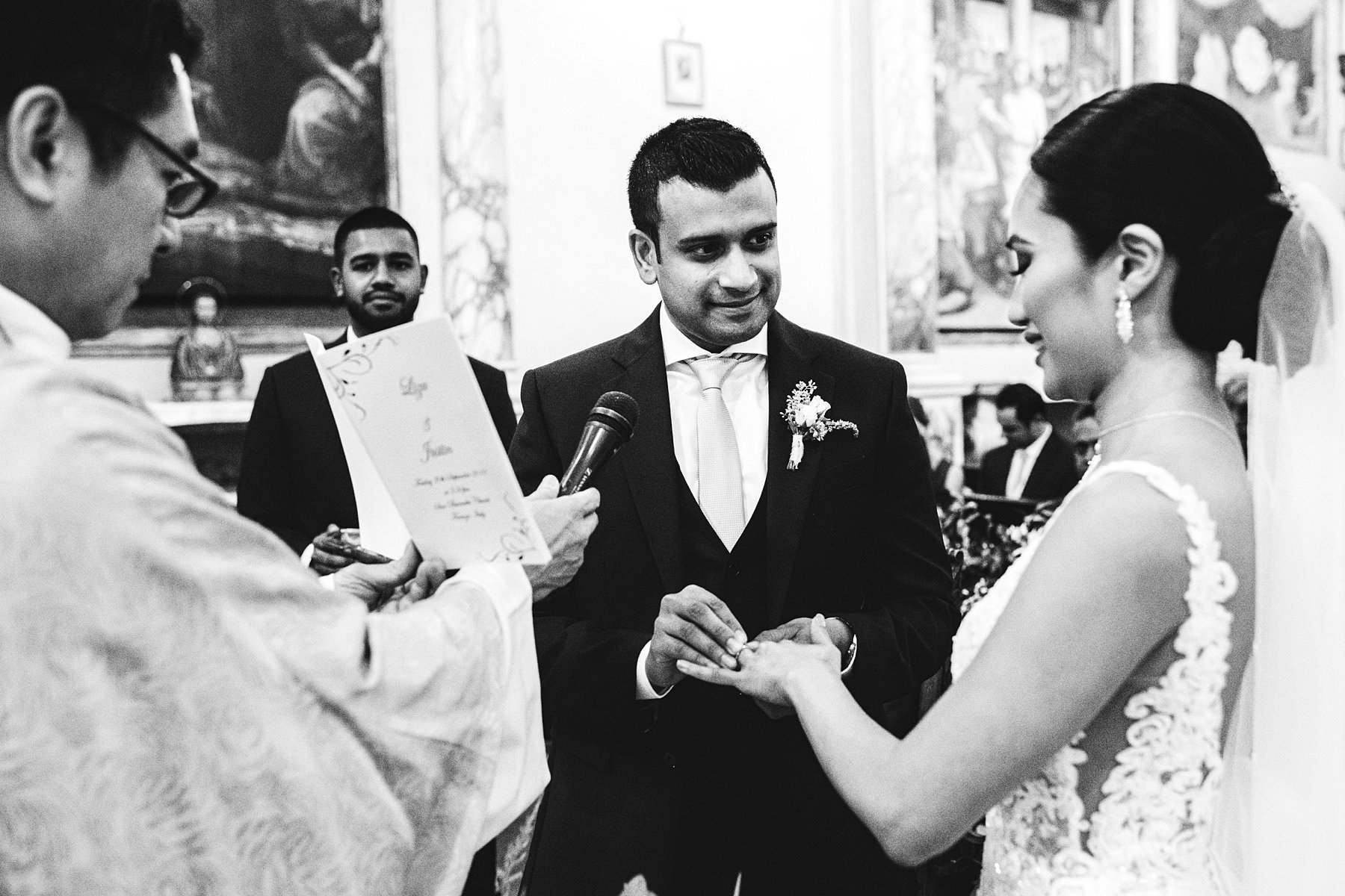 Bride groom ring exchange at San Barnaba Church. Destination intimate wedding in Florence. Photo by the Italian elegant creative and modern destination wedding photographer in Tuscany based Florence Gabriele Fani.