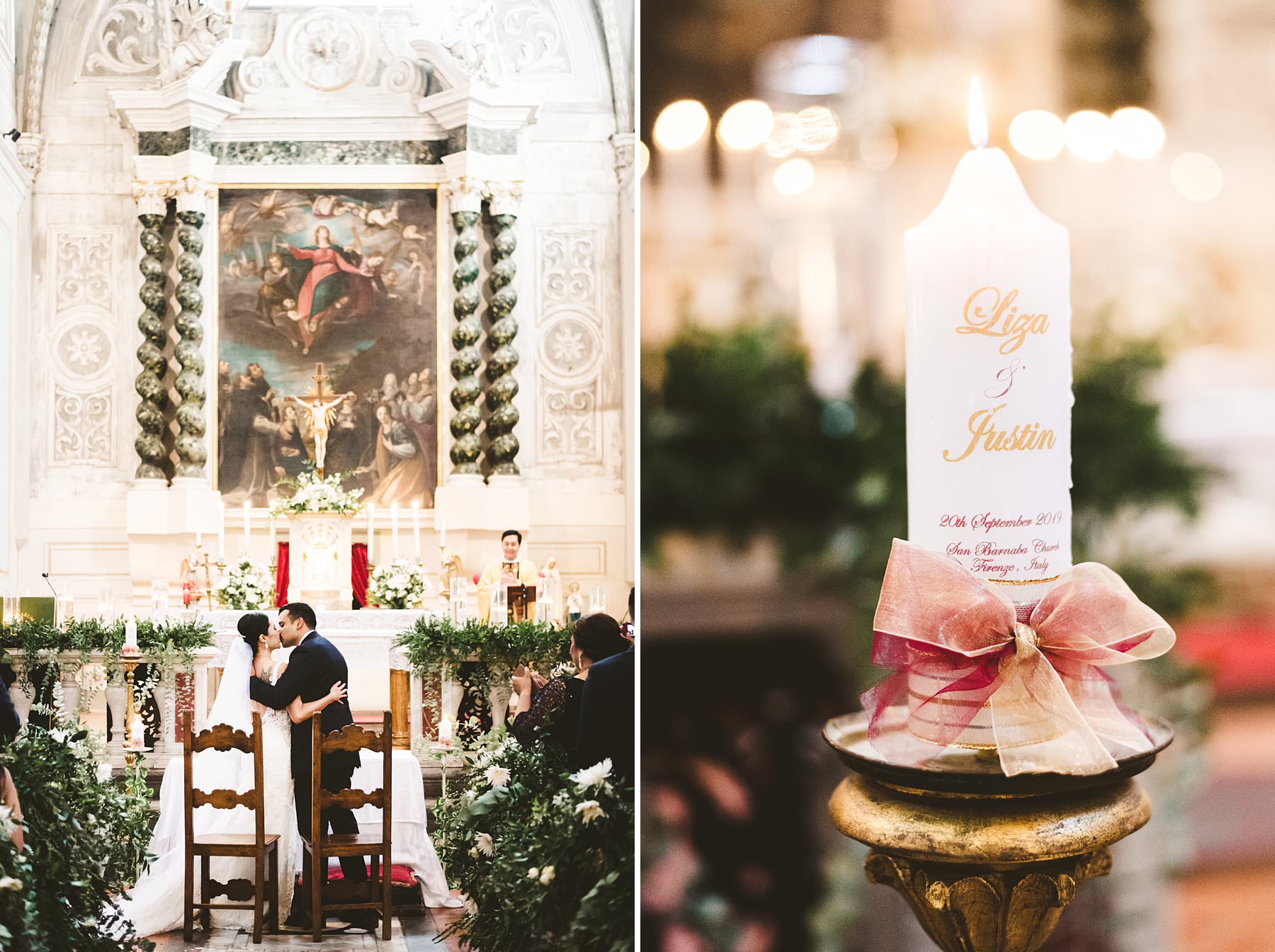 Beautiful San Barnaba Church in the historic centre of Florence. Intimate destination wedding ceremony. Photo by the Italian elegant creative and modern destination wedding photographer in Tuscany based Florence Gabriele Fani.