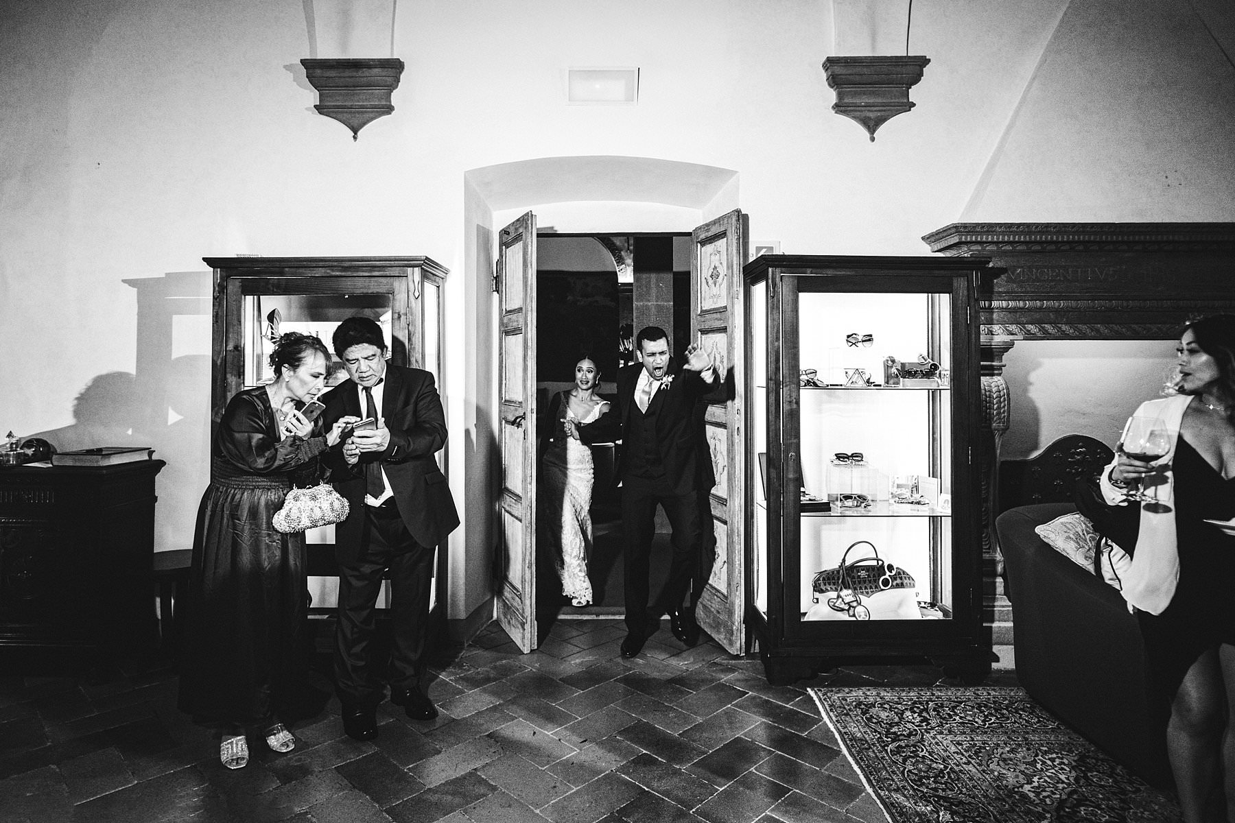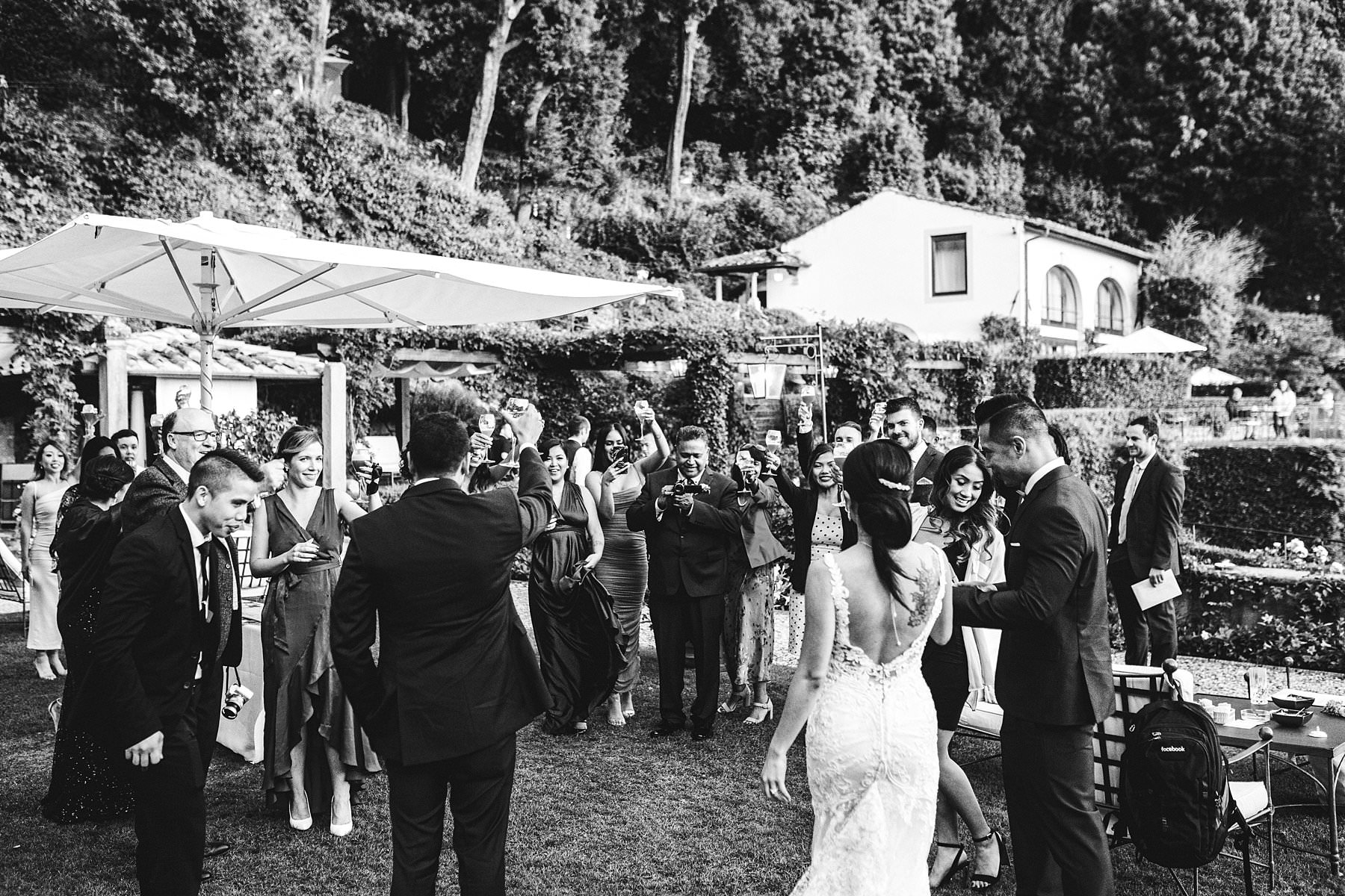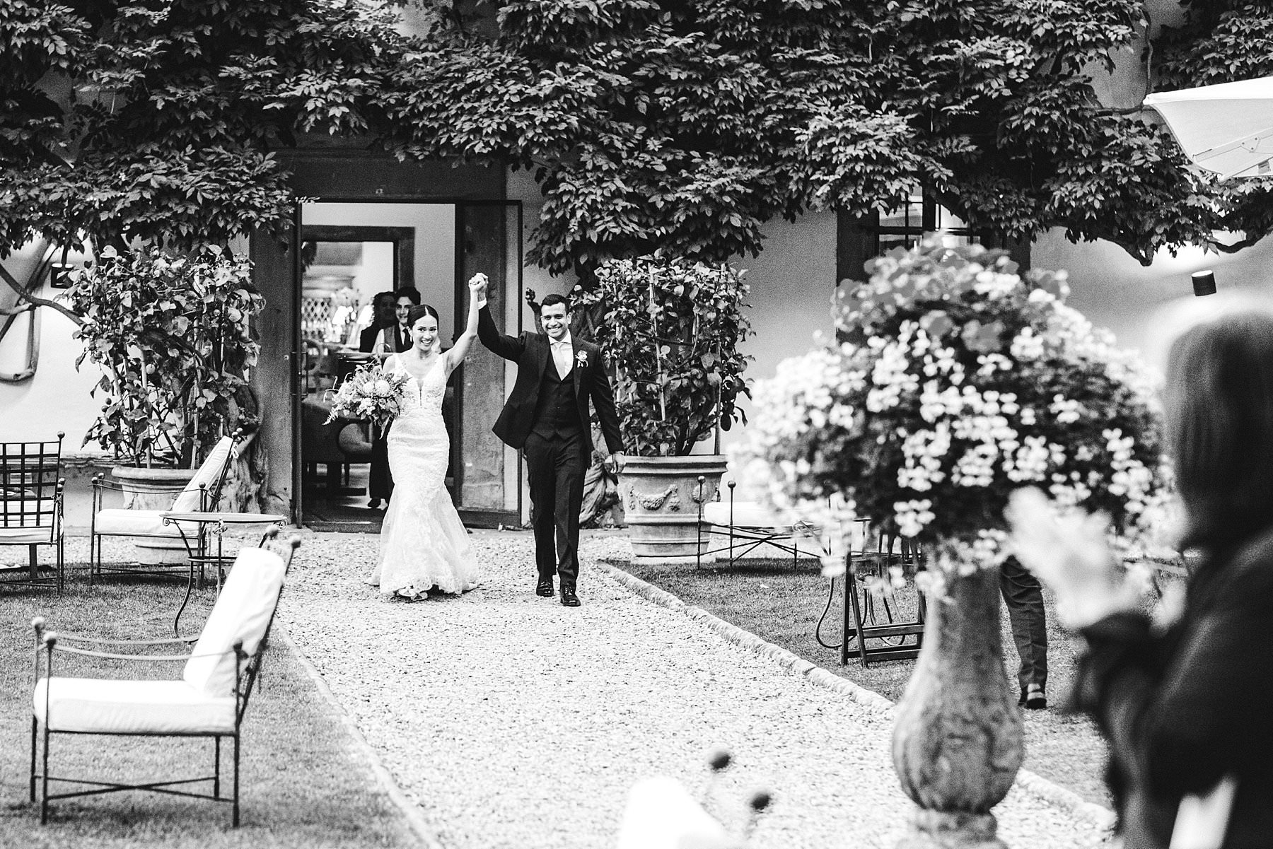 Bride and groom entrance for the first dance at luxury hotel Belmond Villa San Michele just outside the city of Florence. Photo by the Italian elegant creative and modern destination wedding photographer in Tuscany based Florence Gabriele Fani.