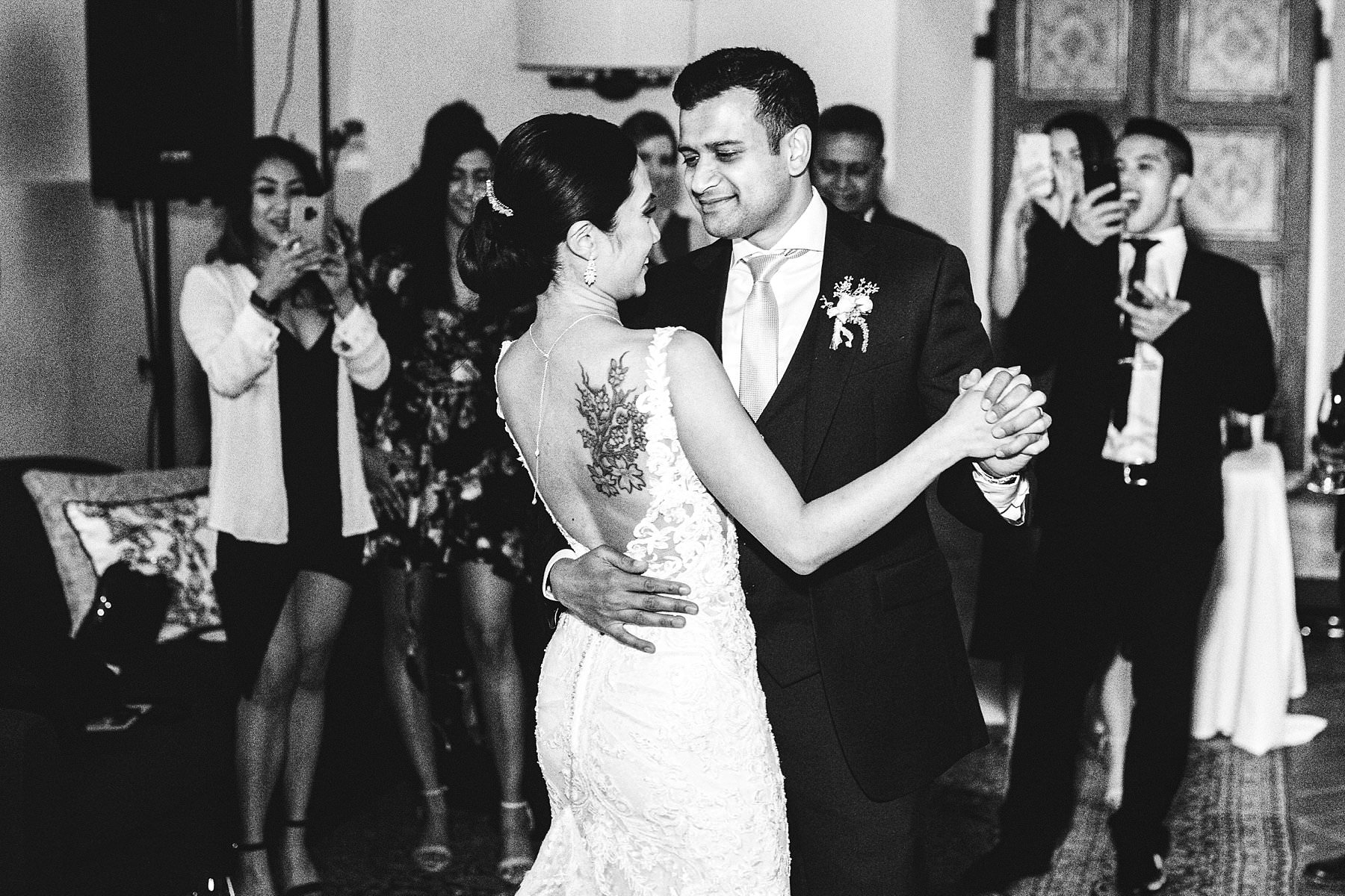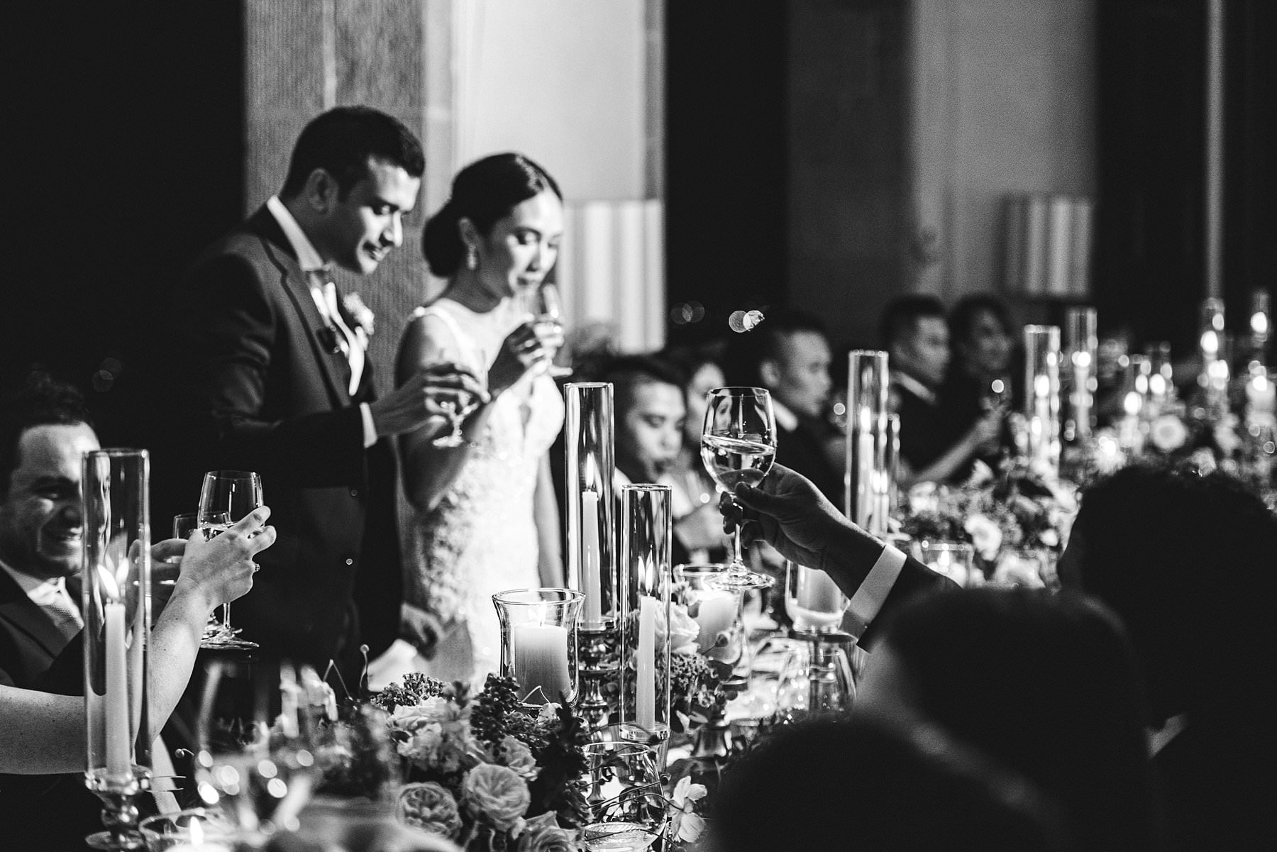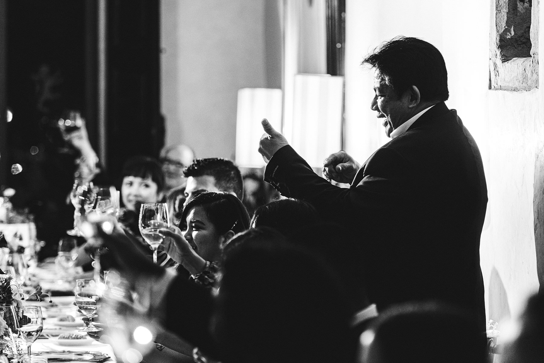 Bride and groom entrance for the first dance at luxury hotel Belmond Villa San Michele just outside the city of Florence. Photo by the Italian elegant creative and modern destination wedding photographer in Tuscany based Florence Gabriele Fani.