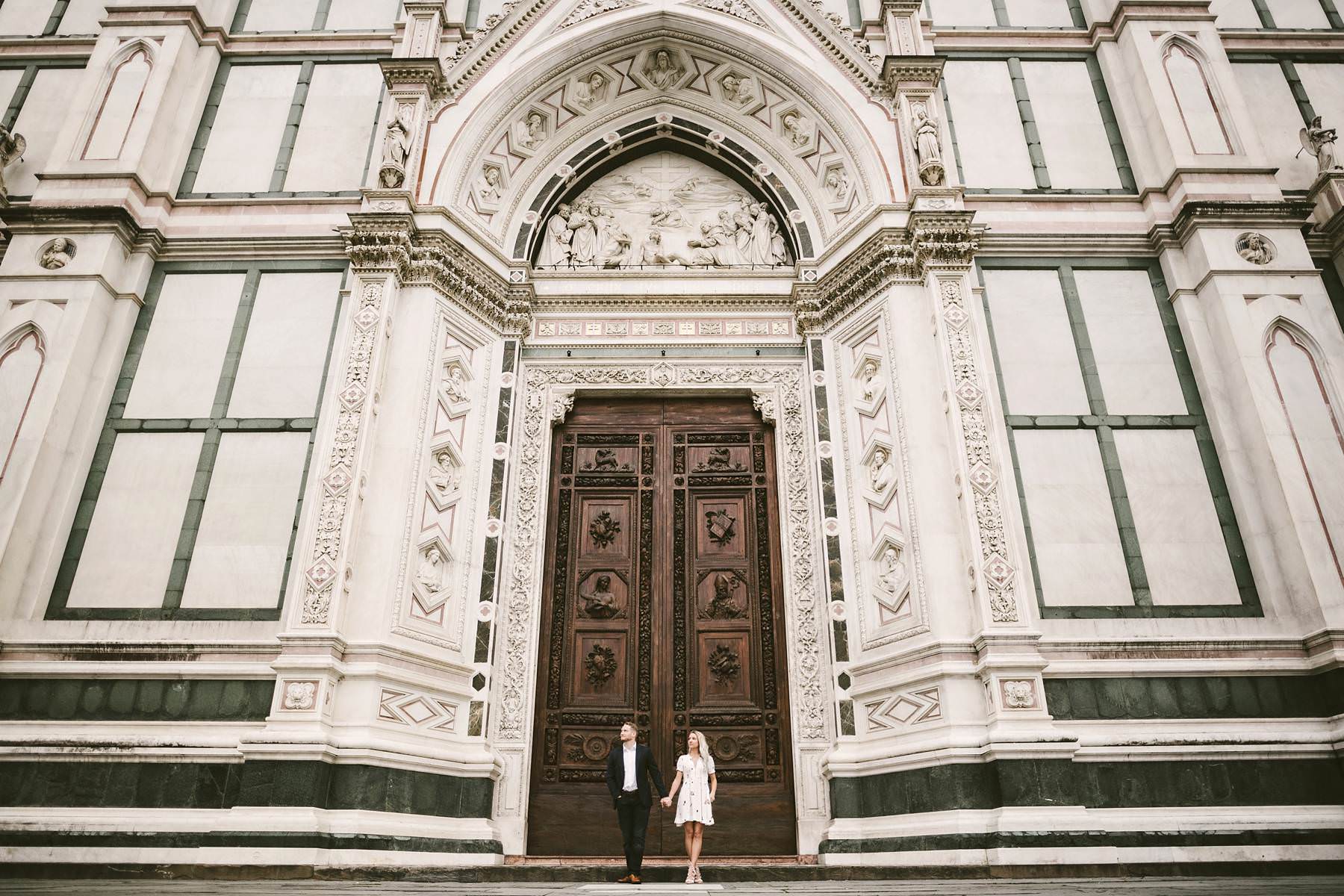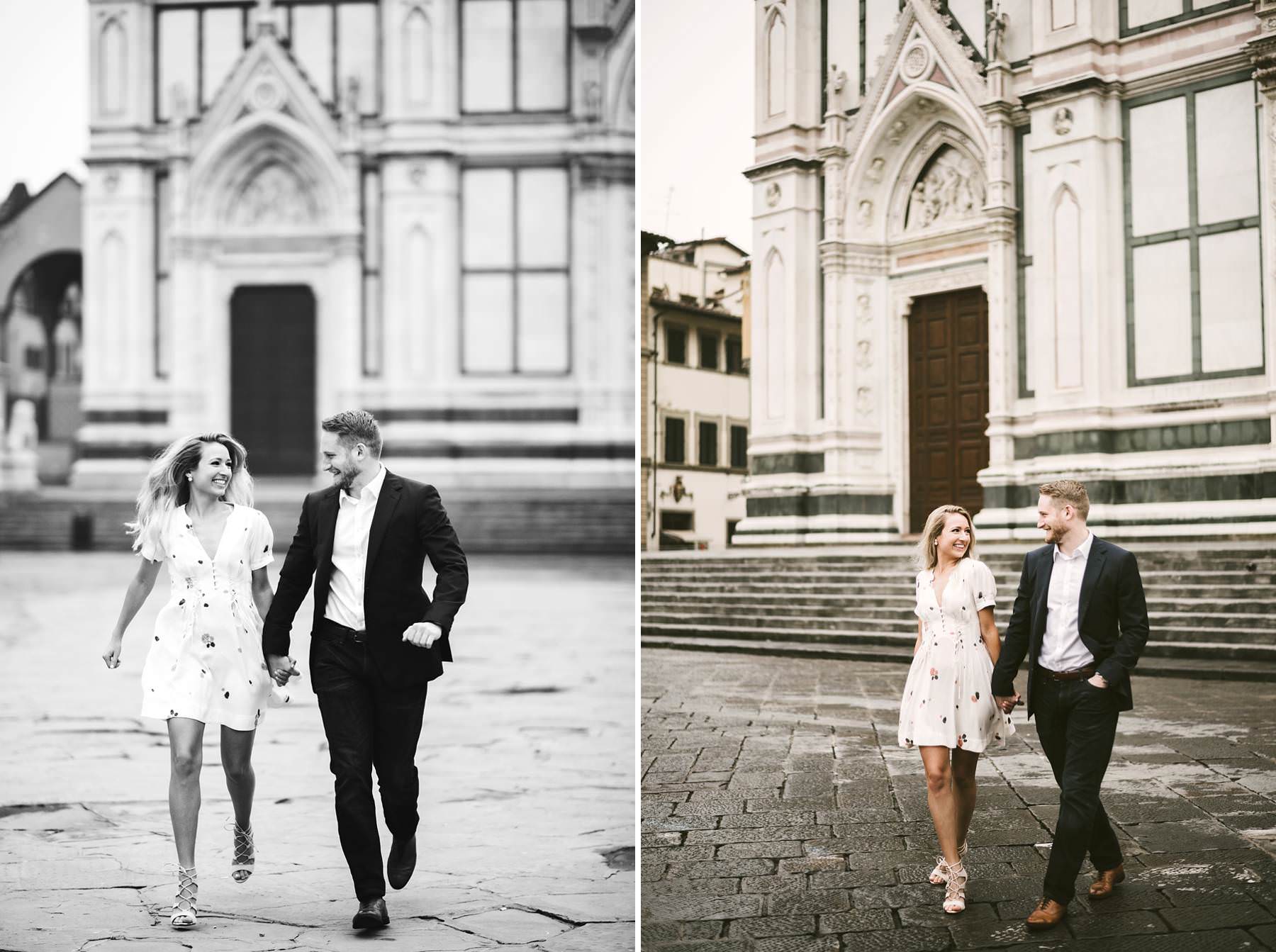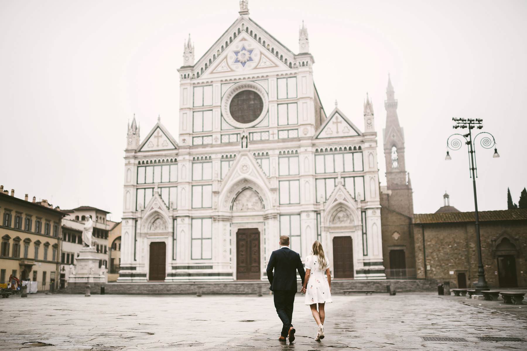Florence early morning engagement pre wedding photo shoot. Lovely couple at Santa Croce Church. Photo by the Italian creative and modern engagement photographer in Tuscany based Florence Gabriele Fani