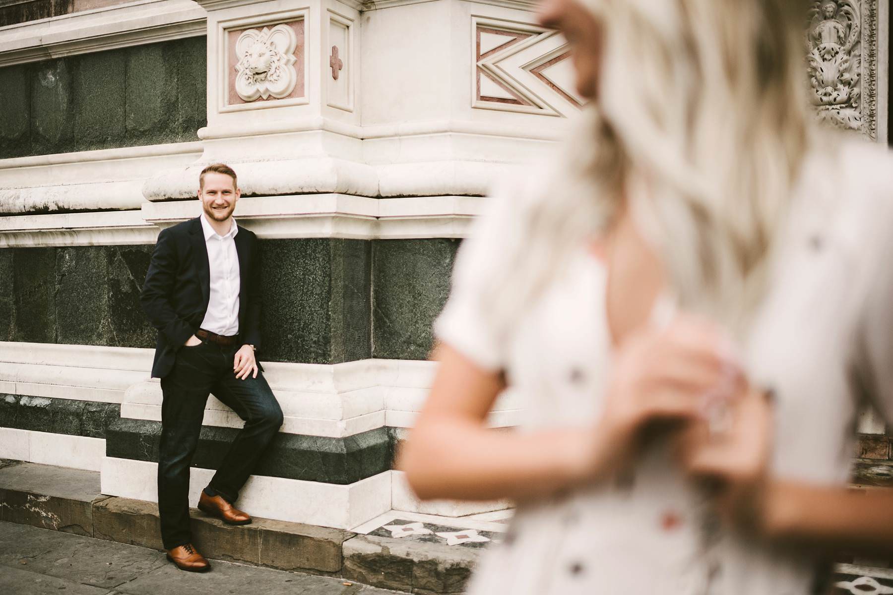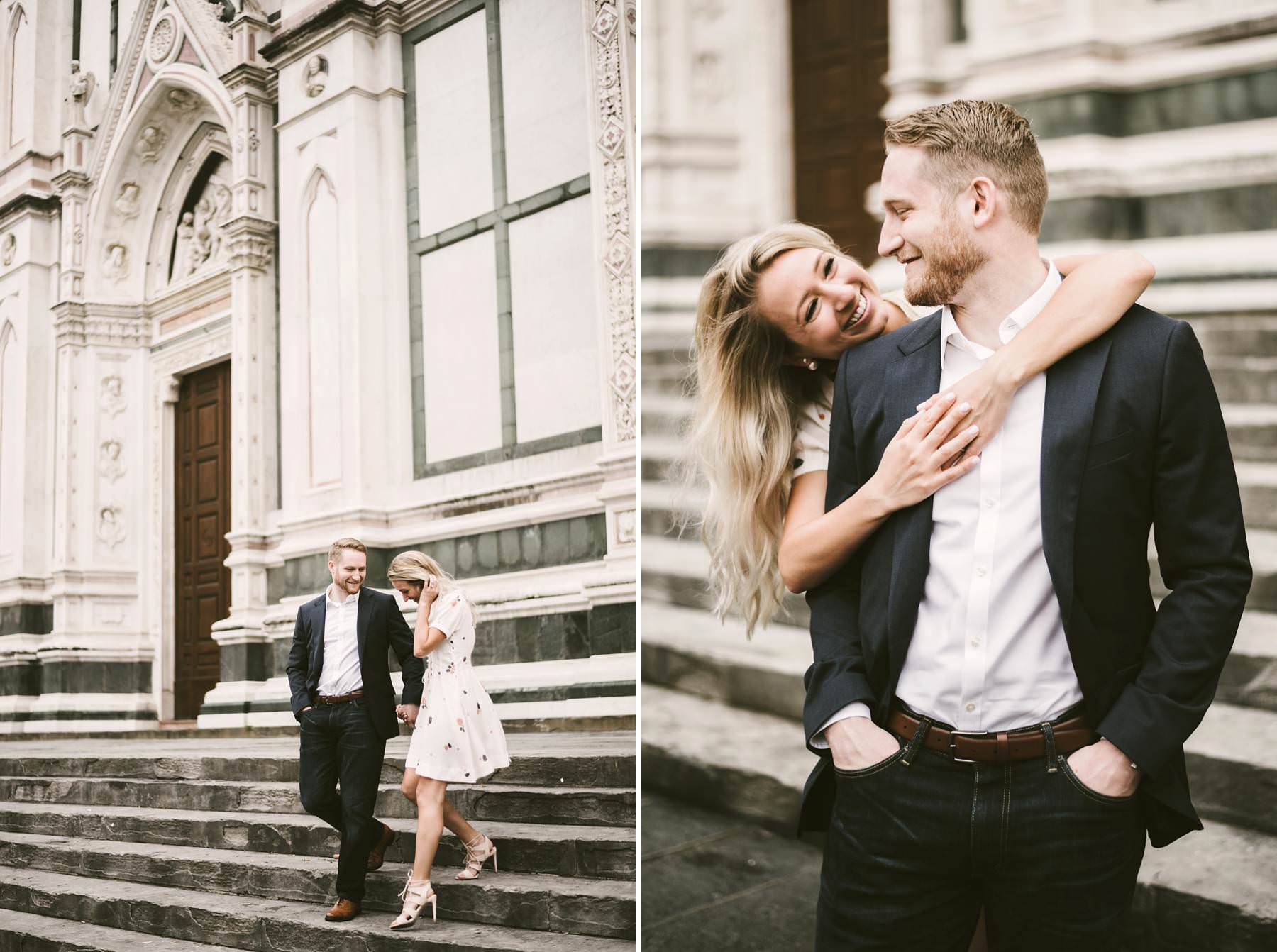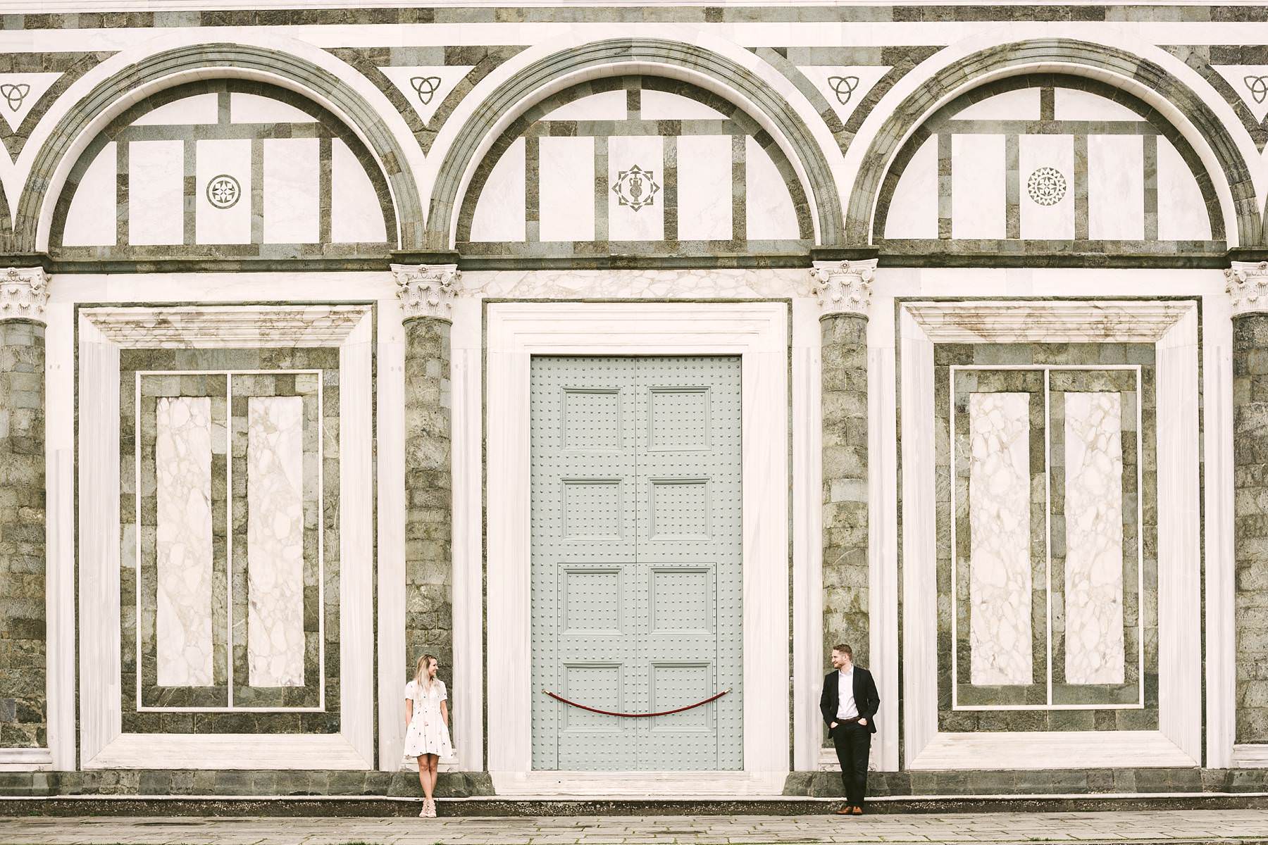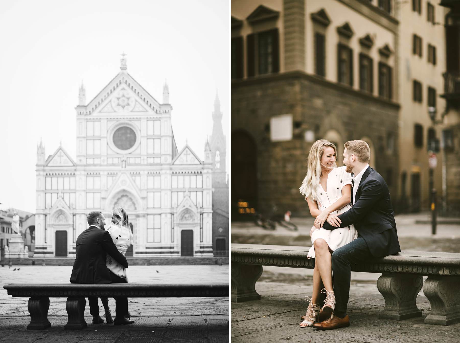 Florence early morning engagement pre wedding photo shoot. Lovely couple at Santa Croce Church. Photo by the Italian creative and modern engagement photographer in Tuscany based Florence Gabriele Fani