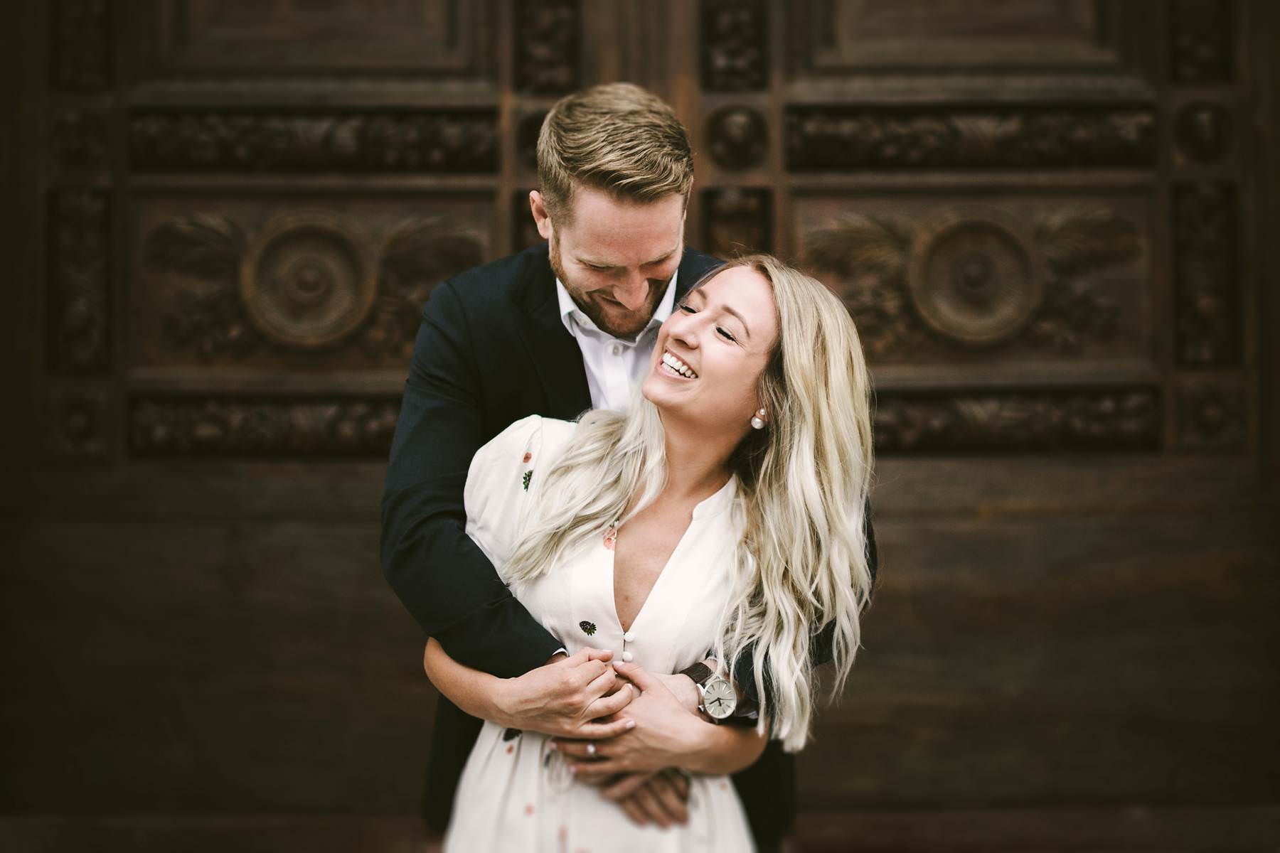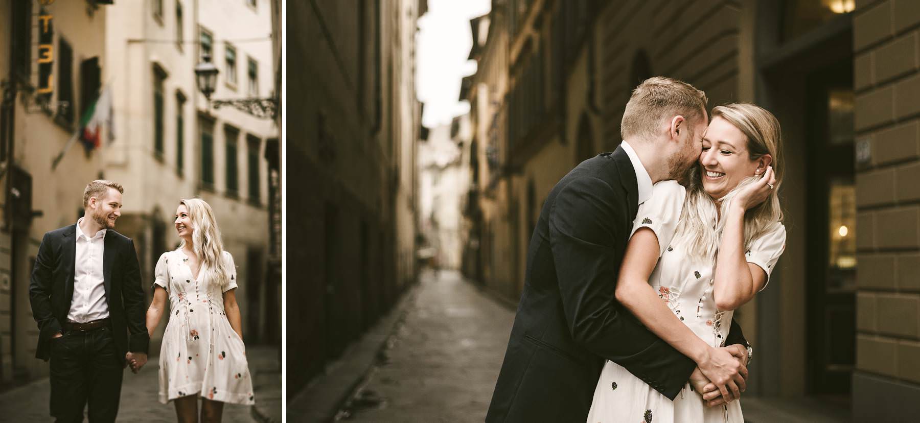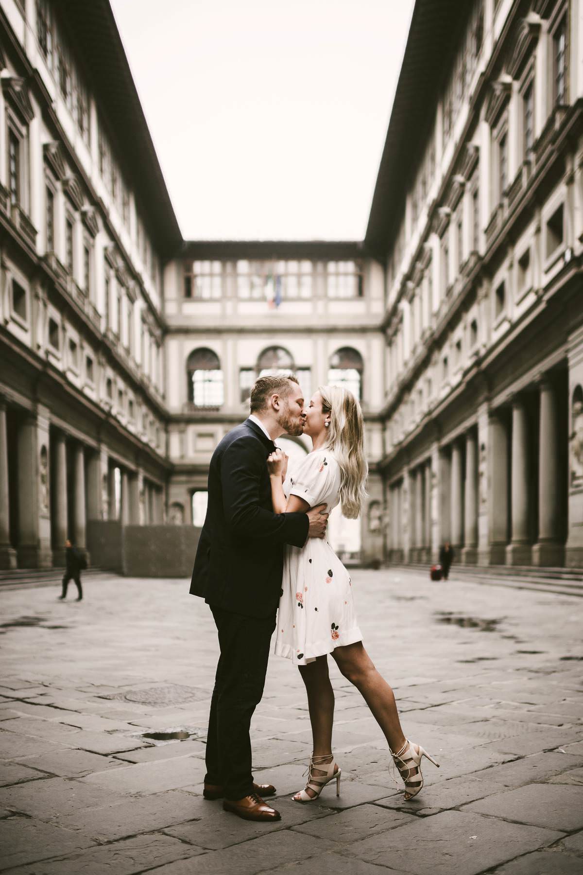 Lovely couple engaged in Florence. Pre wedding couple portrait photo shoot at Uffizi area near Palazzo Vecchio. Photo by the Italian engagement photographer in Tuscany based Florence Gabriele Fani