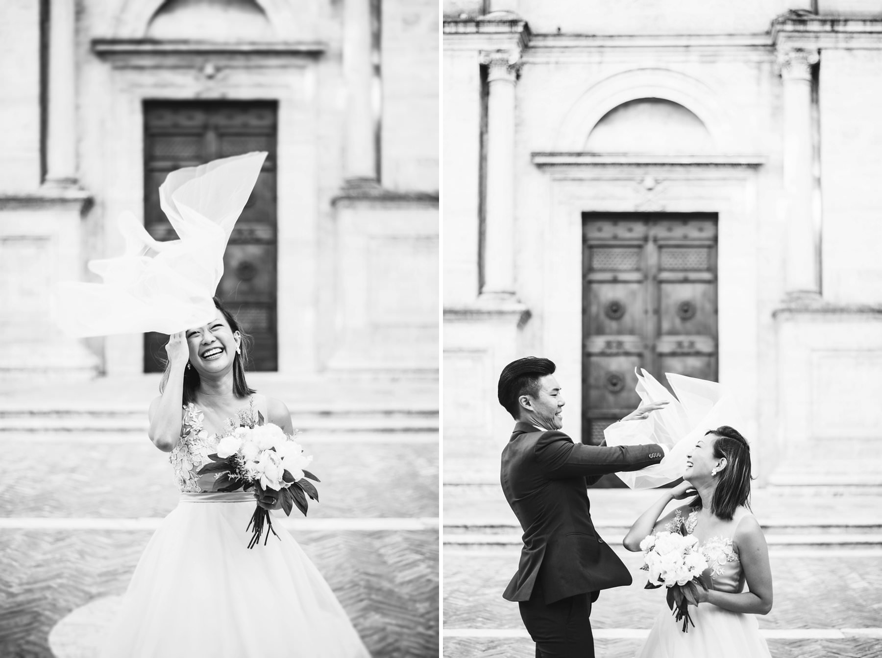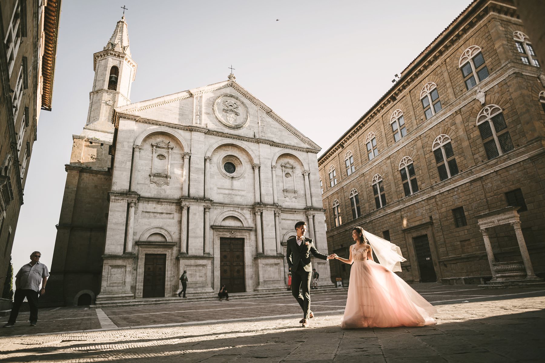 They even brought their wedding dresses all the way from their home country in order for the pictures to be even more dreamy and charming! The main location of the shooting was Pienza, a small and enchanting hamlet near Siena. It’s known as an ideal Renaissance town – and it was the perfect set for chic and elegant honeymoon photos, with its marble churches, brick houses and wooden portals.