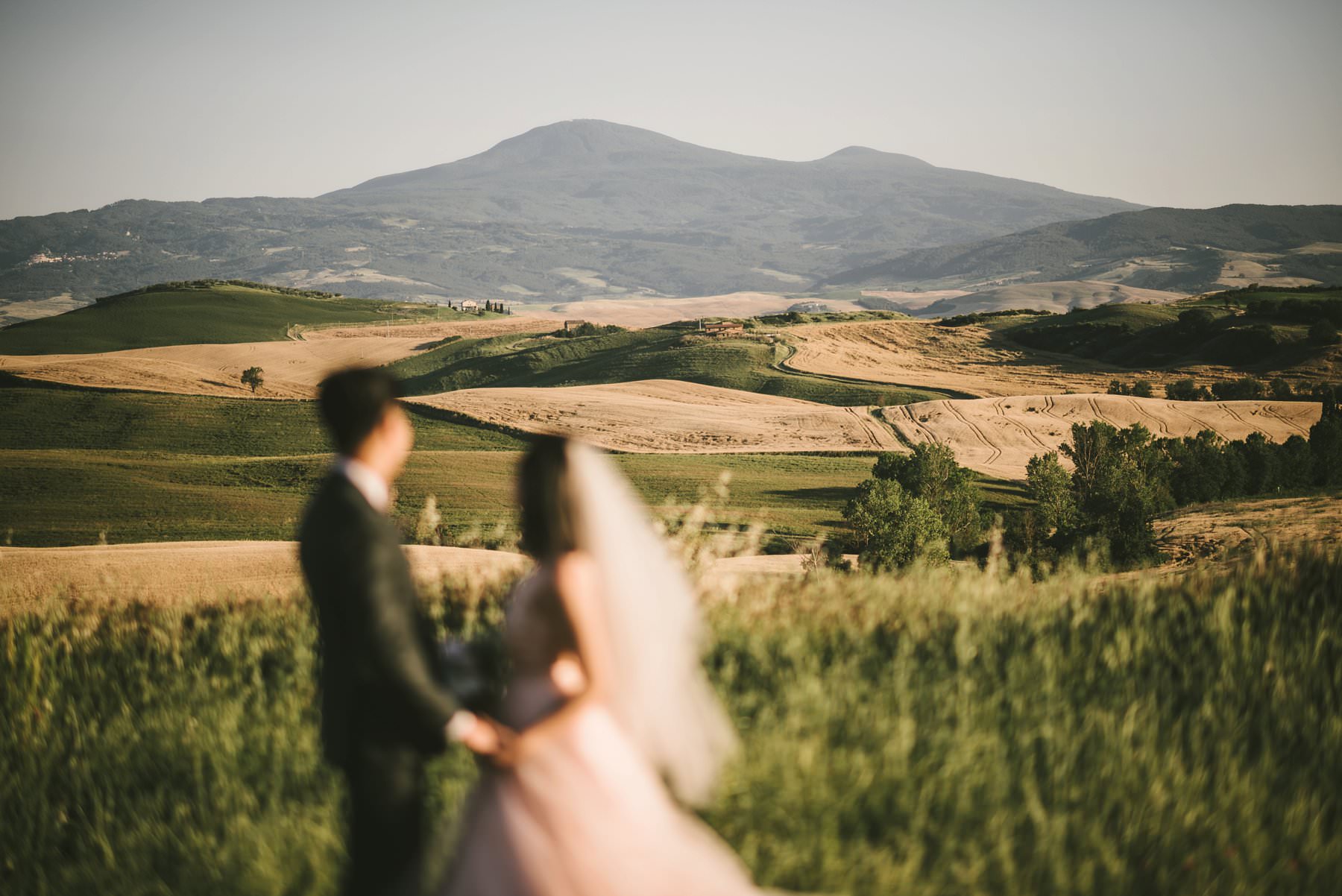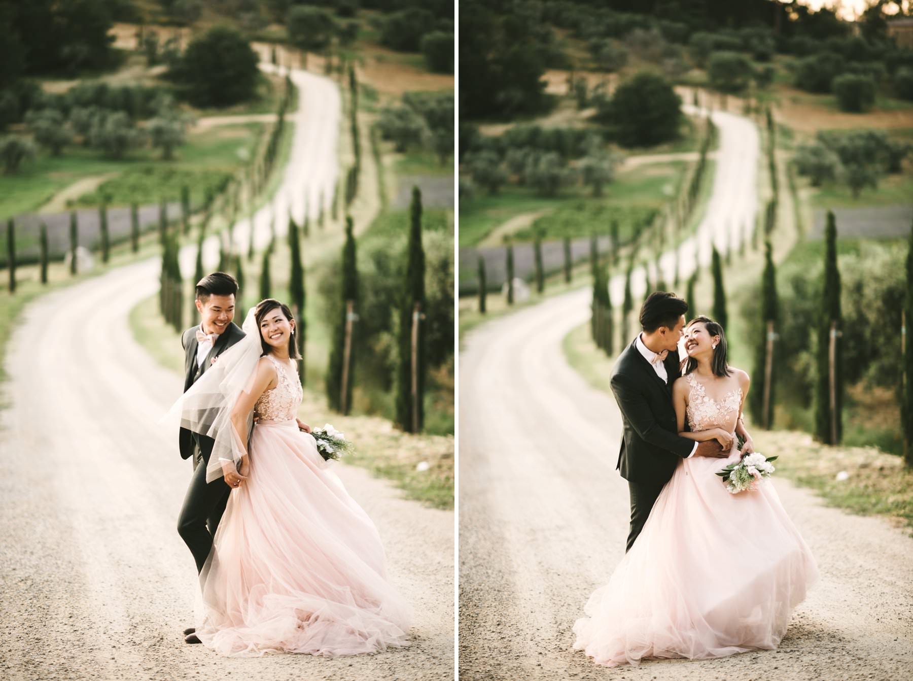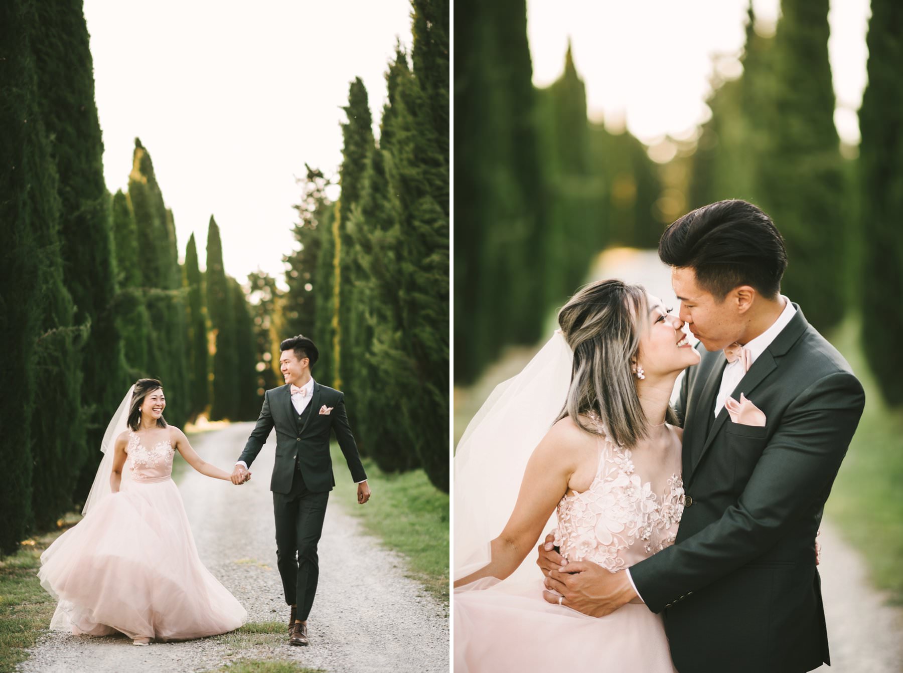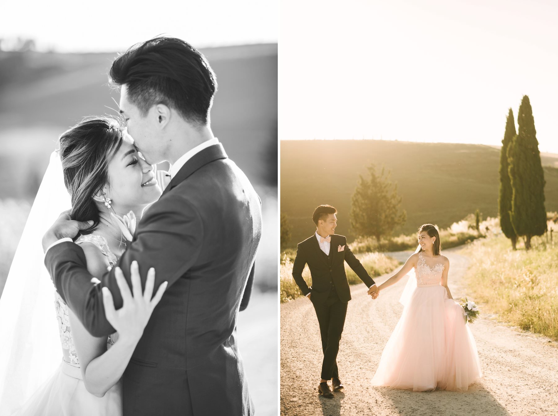 This delightful place is surrounded by the glorious hills of Val d’Orcia, where we shot some more photos in the warm sunset light. Daphne and Brendon set their love free among the green and golden wheat fields – and they will treasure their honeymoon photos forever.