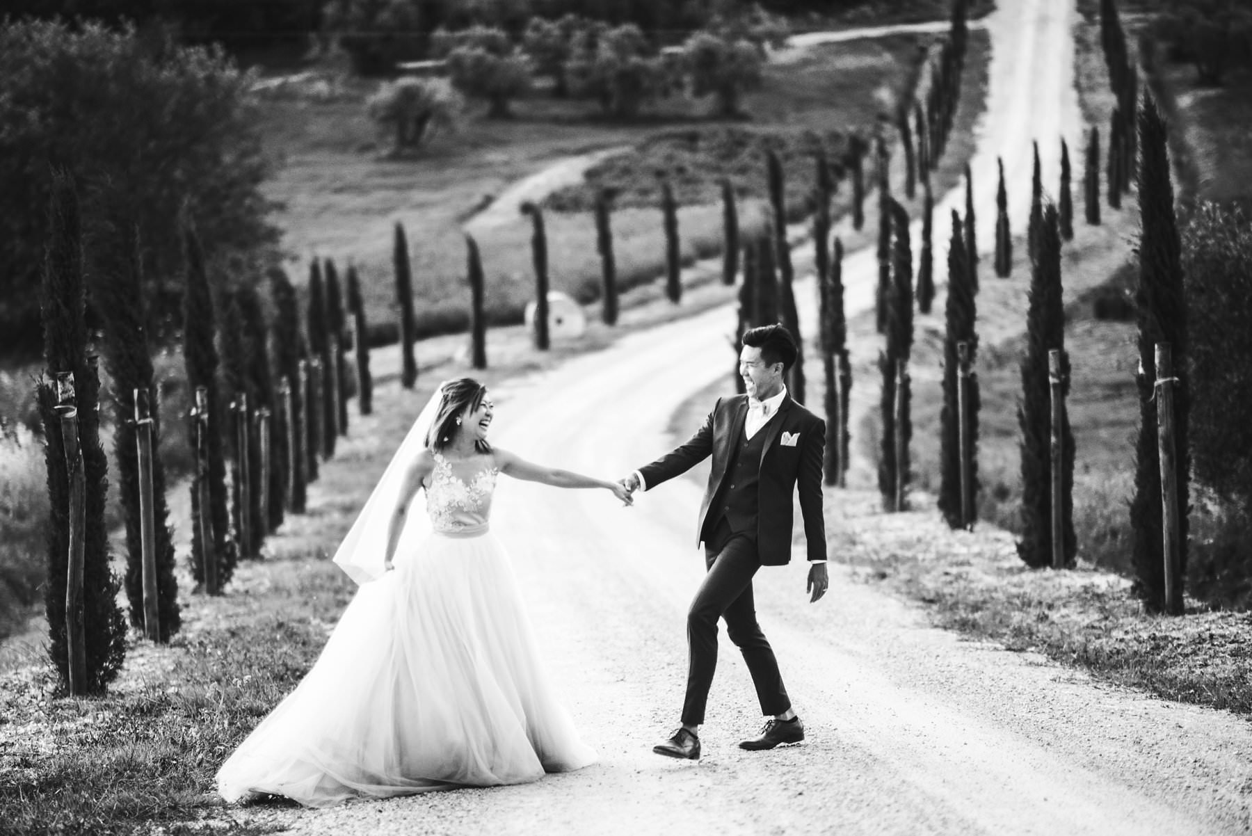 Emotional and joyful honeymoon experience photo shoot in Tuscany countryside near Pienza Val D’Orcia by the classic and elegant photographer in Tuscany based Florence Gabriele Fani.