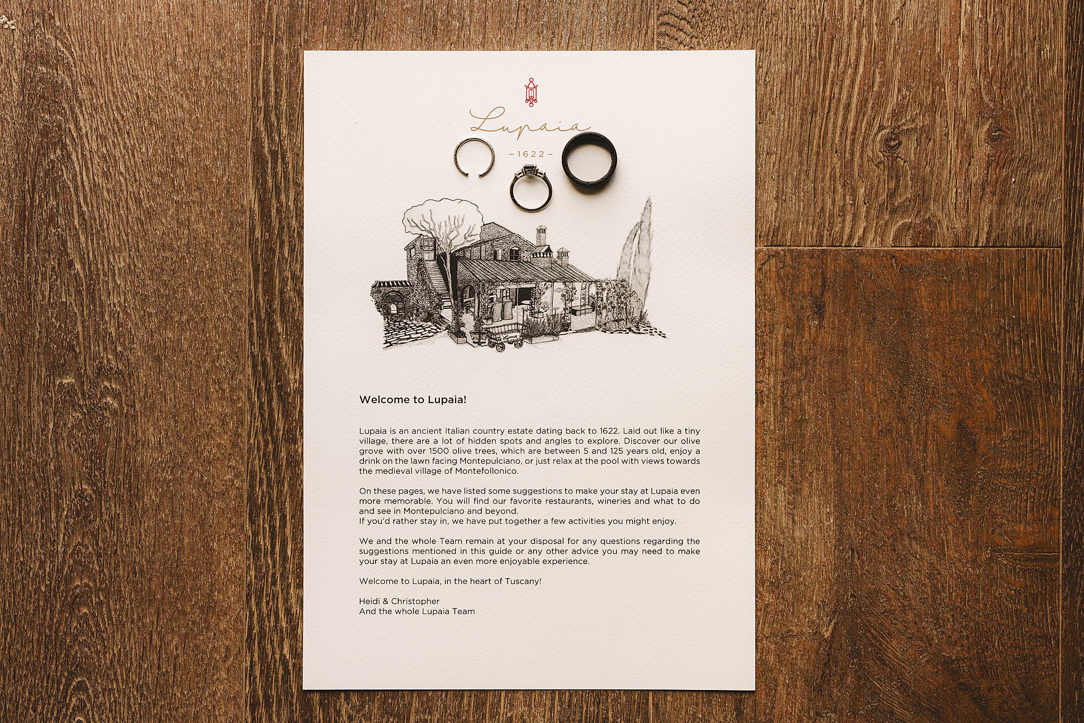 The couple then exchanged vows in a symbolic ceremony with panoramic views of the Tuscan hills. No grand audience, no distractions: just love, sincerity and the beauty of their surroundings. Lupaia, a historic farmhouse turned luxury retreat, provided the perfect backdrop, where the charm of old-world Tuscany meets understated elegance.