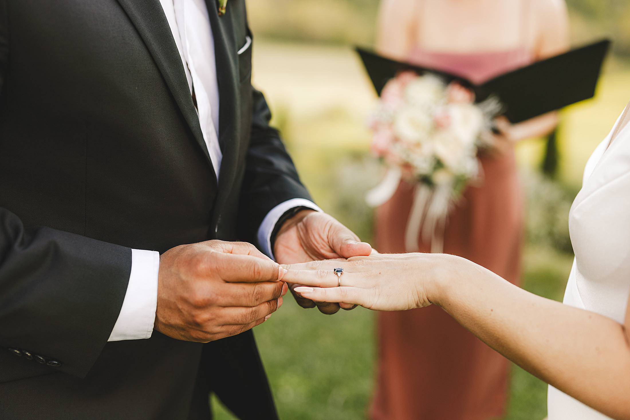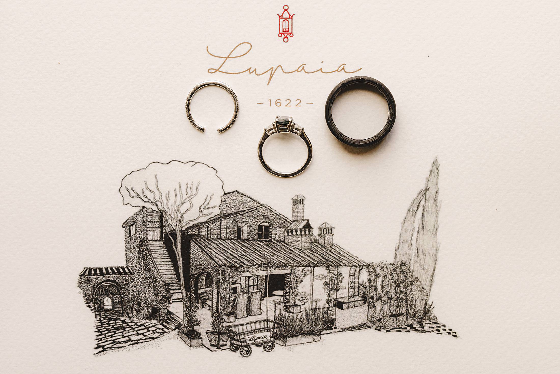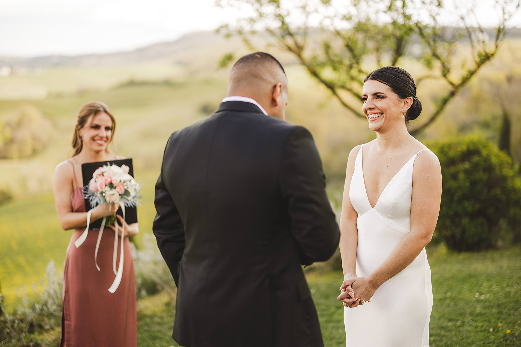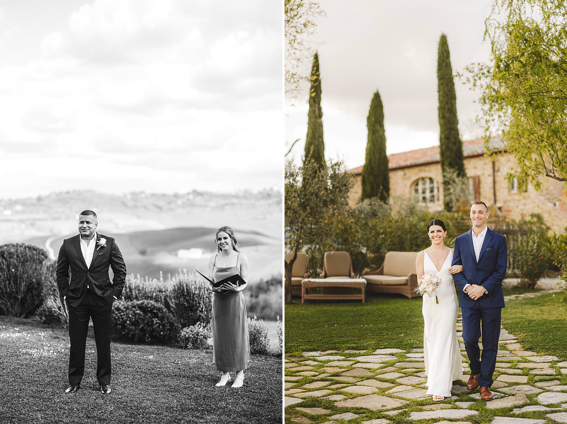 Unforgettable and unique elopement symbolic ceremony with panoramic views of the Tuscan hills at Lupaia hotel. Photo by the Italian elegant and creative elopement photographer in Tuscany based Florence Gabriele Fani