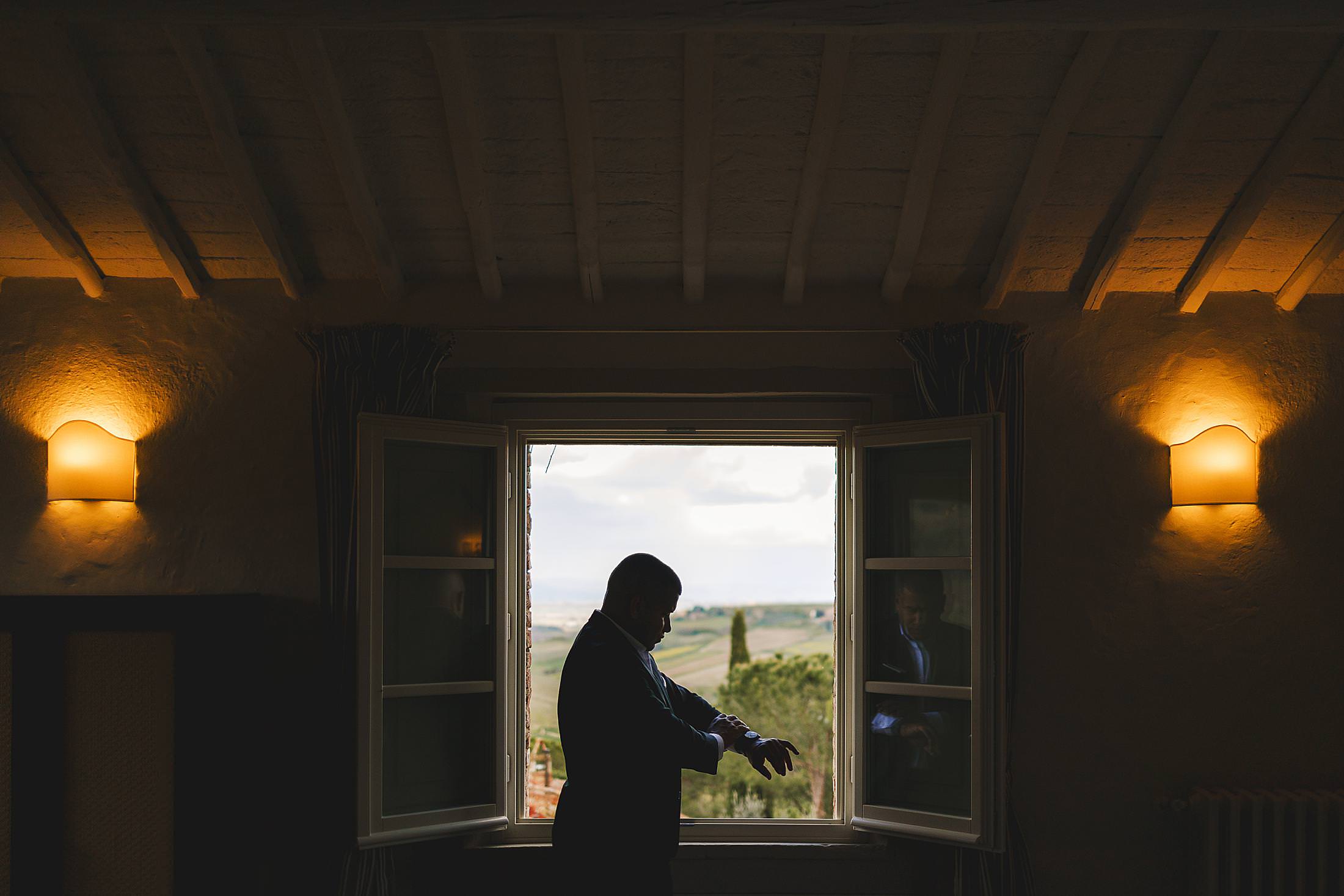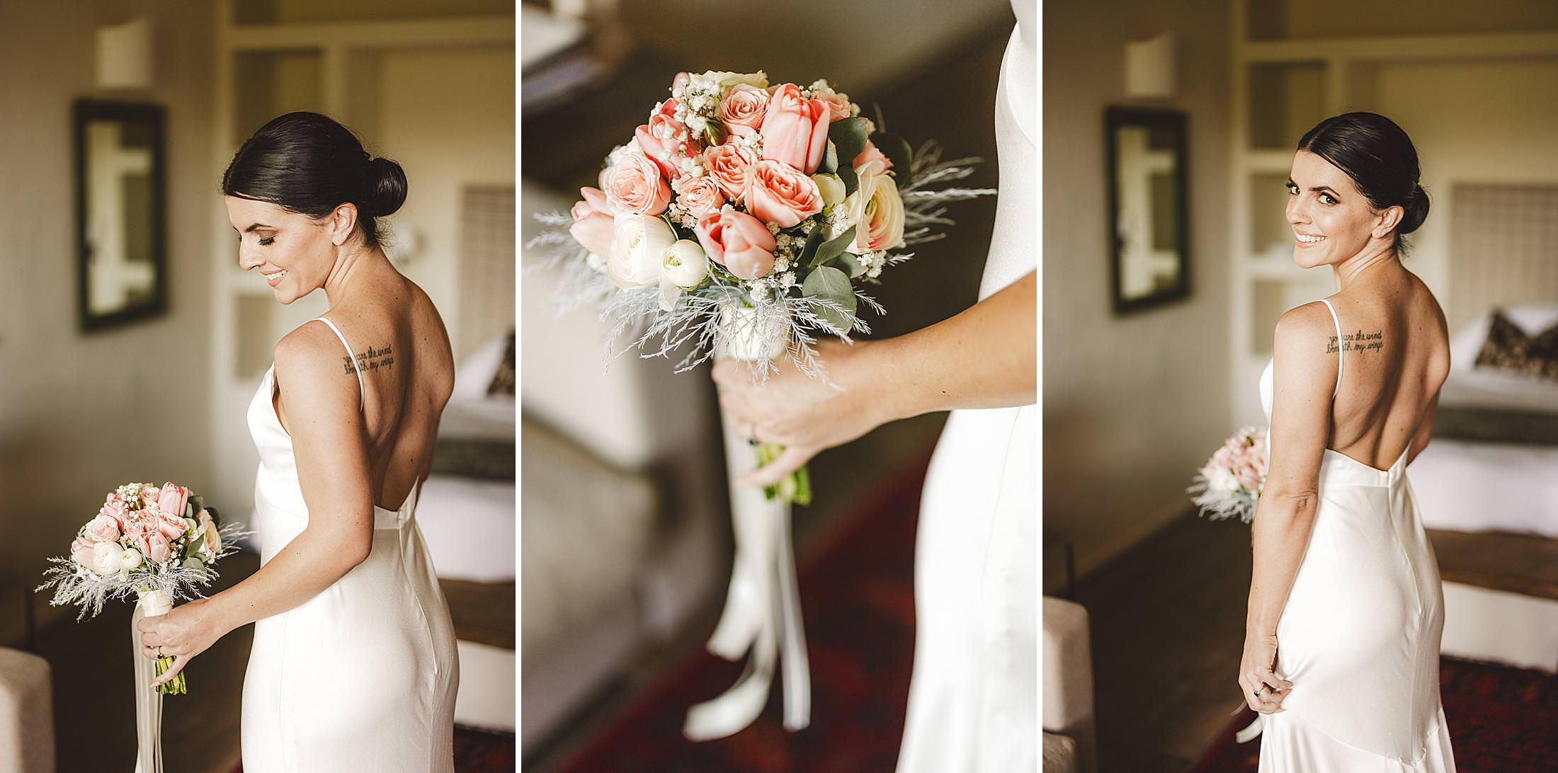 Lovely and elegant bride ready to meet future husband at elopement wedding in Lupaia Boutique hotel in Val d’Orcia. Photo by the Italian elegant and creative elopement photographer in Tuscany based Florence Gabriele Fani