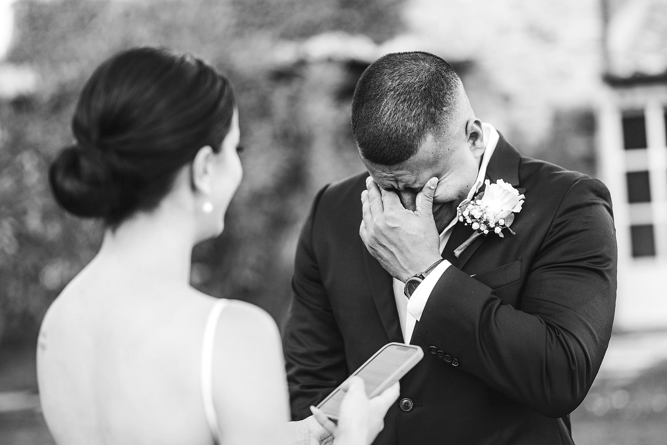 Bride and groom elopement wedding emotional first look at Lupaia hotel in the Val d’Orcia heart of Tuscany countryside. Photo by the Italian elegant and creative elopement photographer in Tuscany based Florence Gabriele Fani