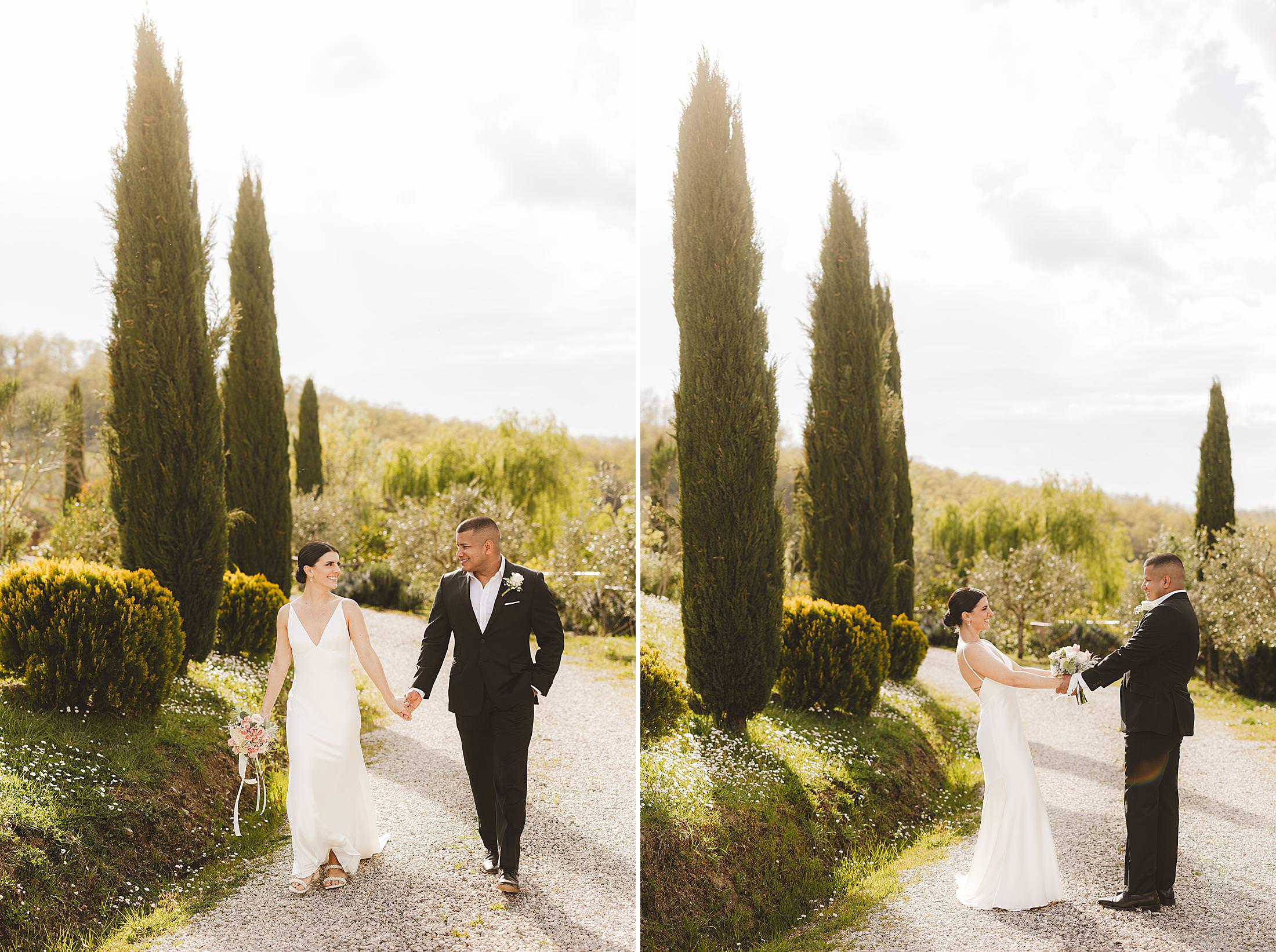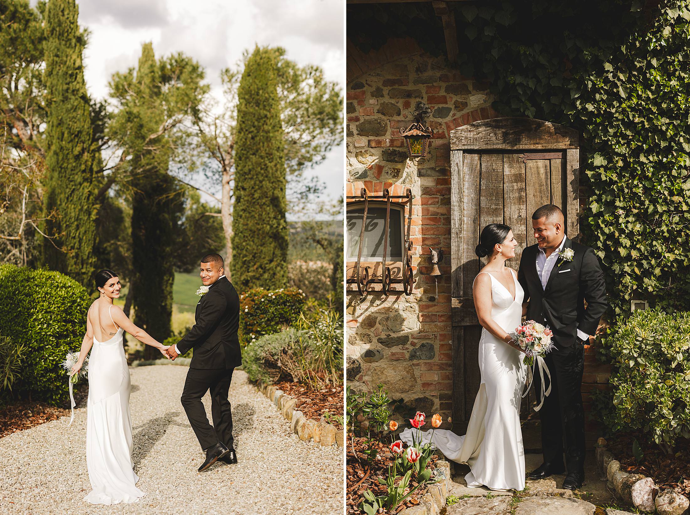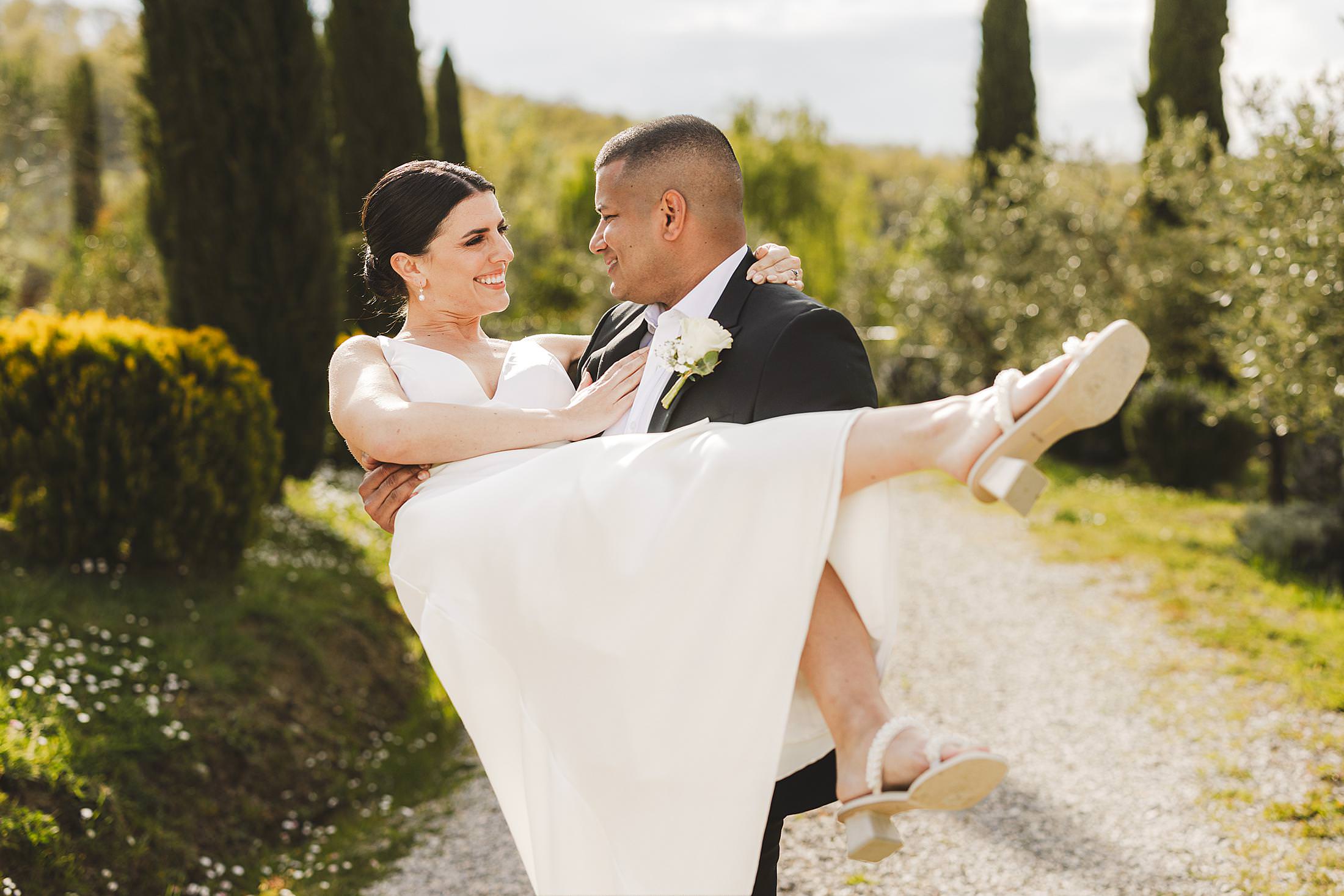 Exciting and fun couple elopement photo session in Lupaia hotel in Tuscany countryside. Photo by the Italian elegant and creative elopement photographer in Tuscany based Florence Gabriele Fani