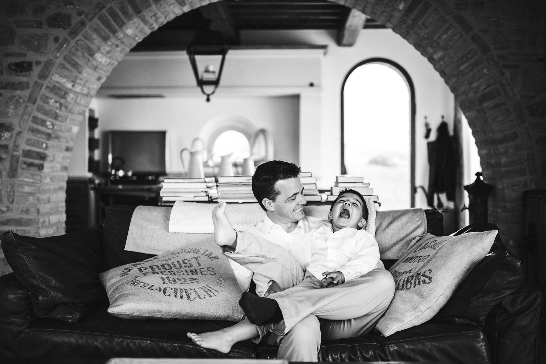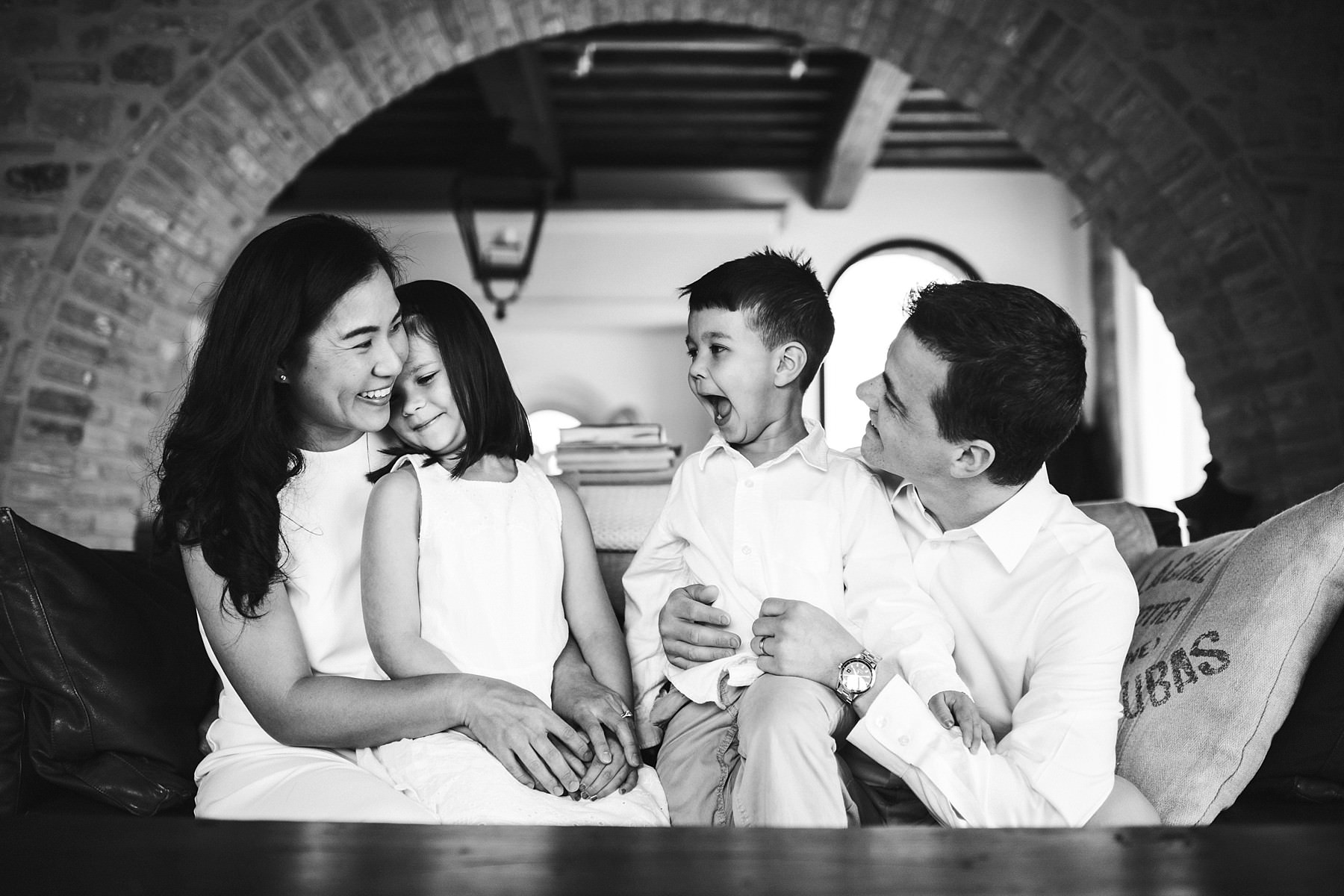 Come faccio abitualmente all’inizio dei servizi ho cercato di rompere il ghiaccio e mettere a proprio agio i miei clienti. Abbiamo così iniziato con foto di famiglia all’interno della residenza, nel salotto dove i ragazzi si trovavano maggiormente a proprio agio sul divano. Non ci è voluto molto perché si sentissero liberi di esprimersi! Ci siamo quindi trasferiti all’esterno, dove abbiamo avuto la possibilità di scattare molte foto divertenti insieme ai genitori e ai bambini.
