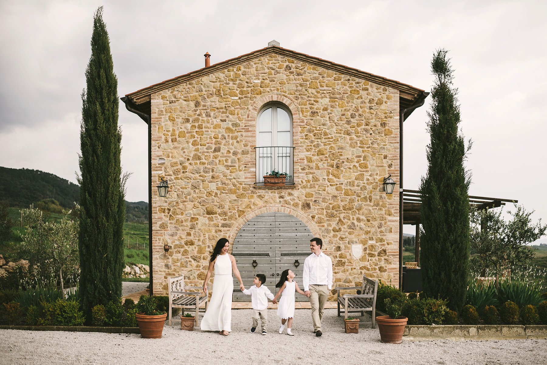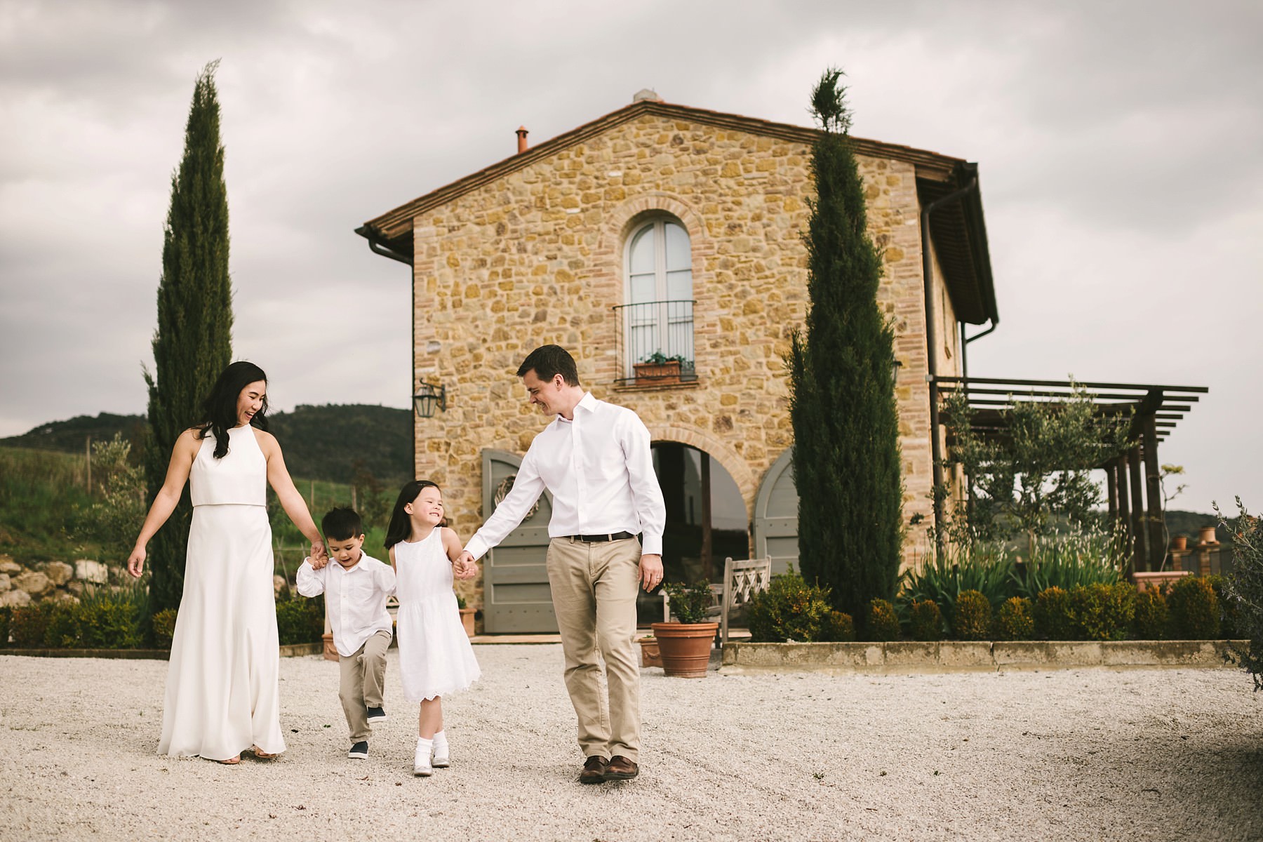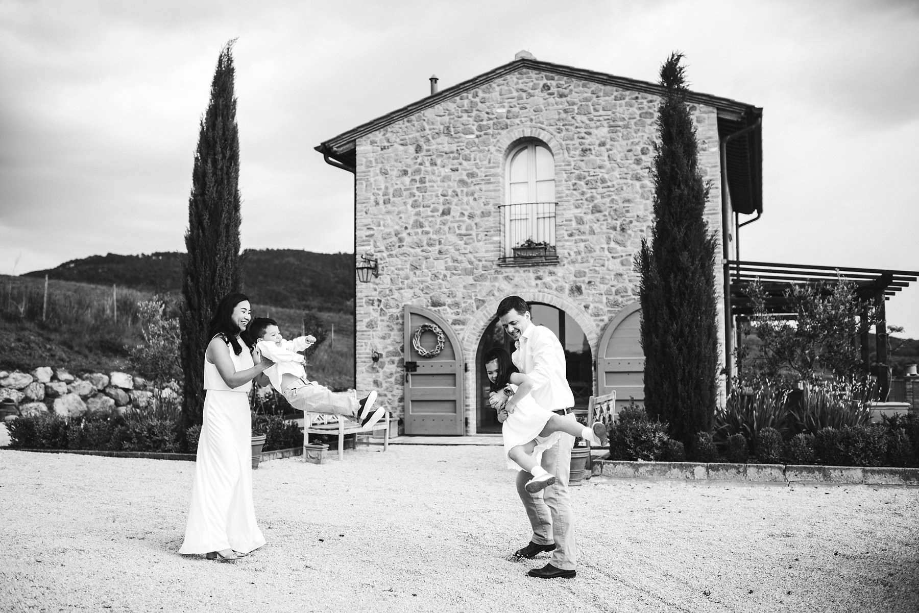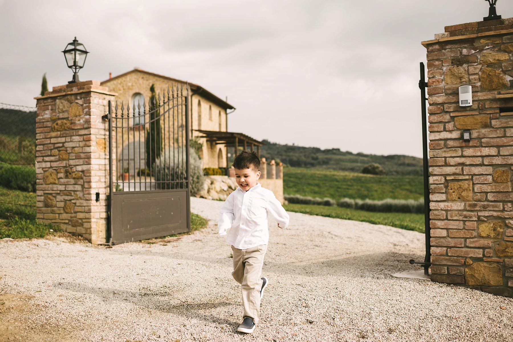 Exciting family photo session in Tuscany during a vacation. Walk in the private Villa. Photo by the Italian Family photographer in Tuscany based Florence Gabriele Fani.