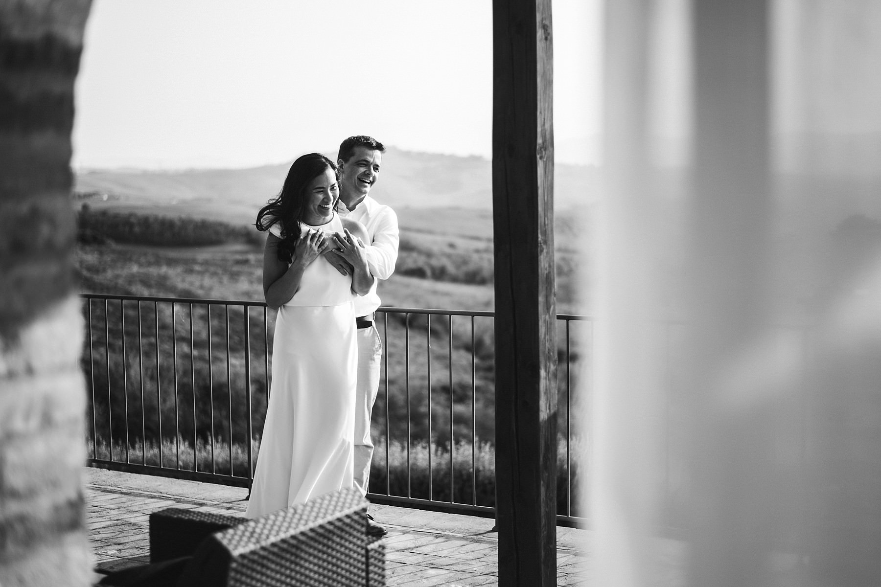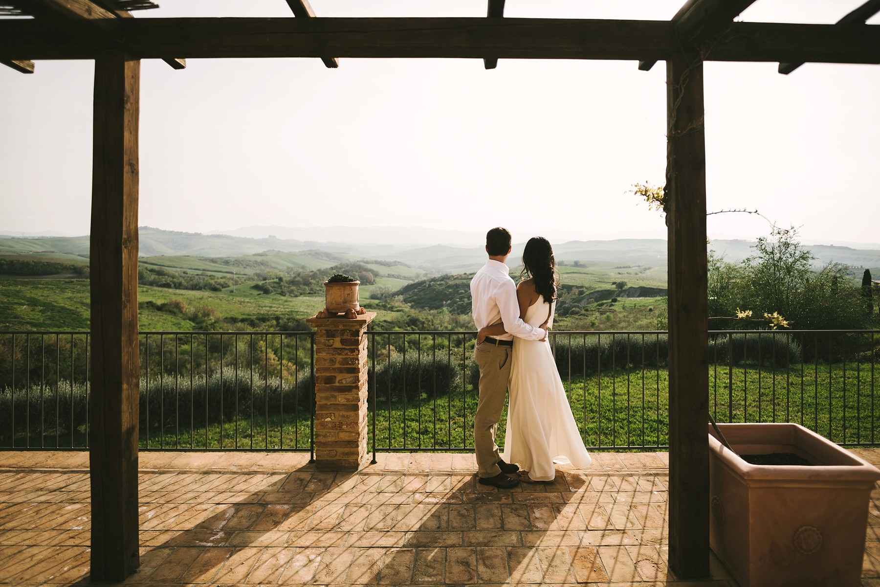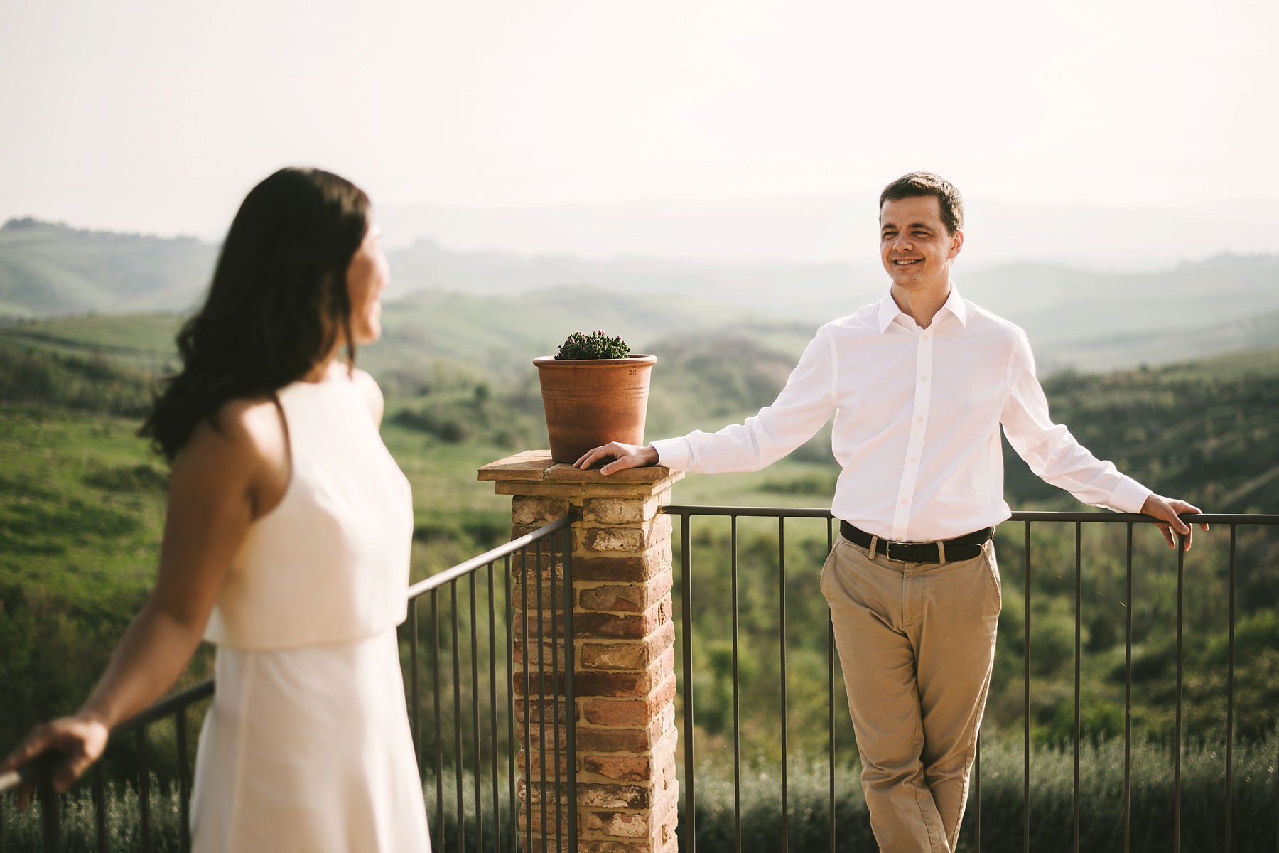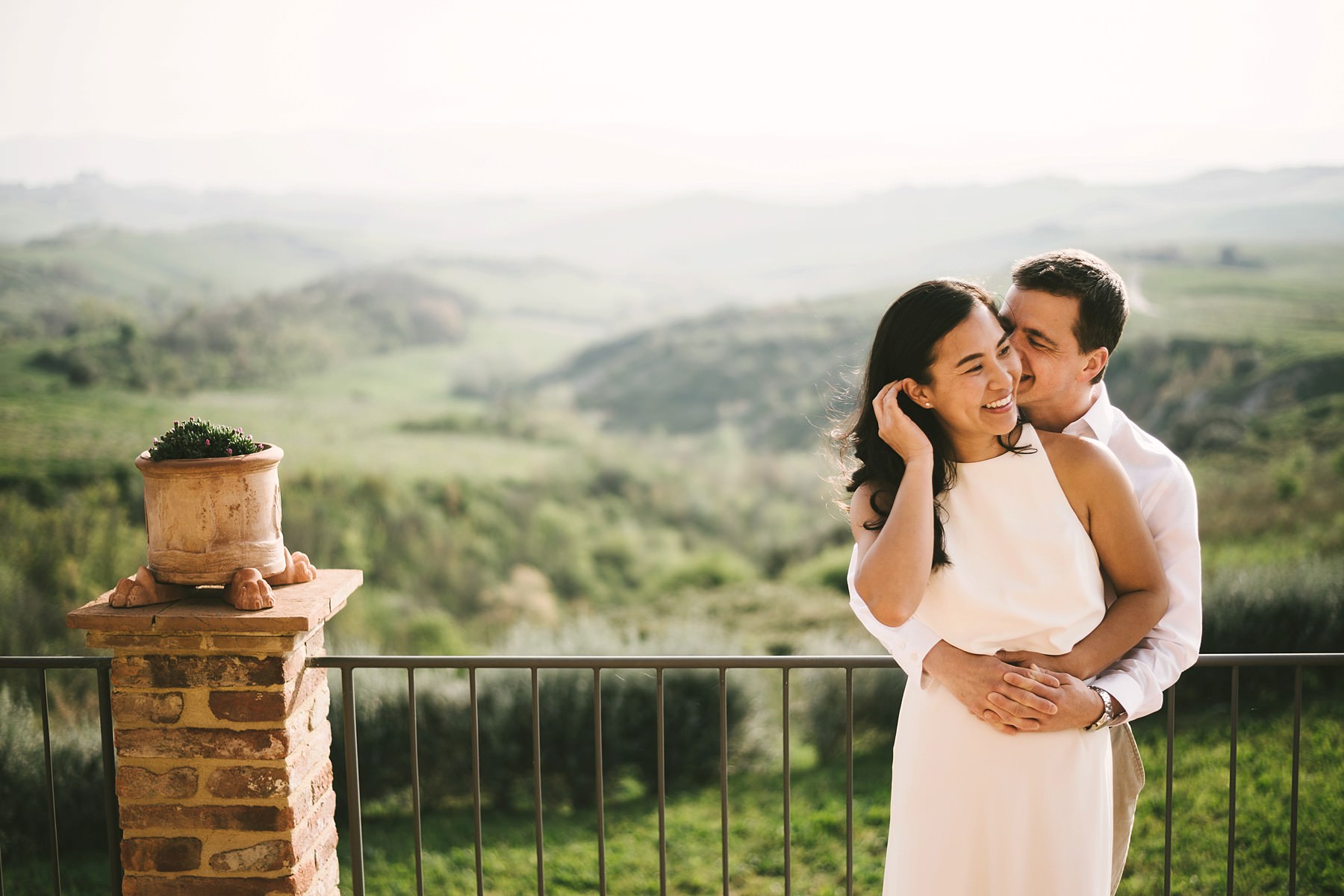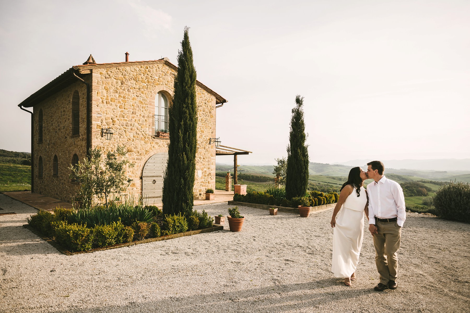 Per questa vacanza significativa, Annie e Michael hanno scelto una casa vacanze appena fuori il paese di Iano, una piccola città circondata dalle iconiche colline toscane. La vista dalla residenza era mozzafiato, quindi non abbiamo avuto necessità di cercare altri luoghi per il servizio fotografico dell’anniversario: la cornice che avevamo davanti ai nostri occhi era assolutamente splendida!