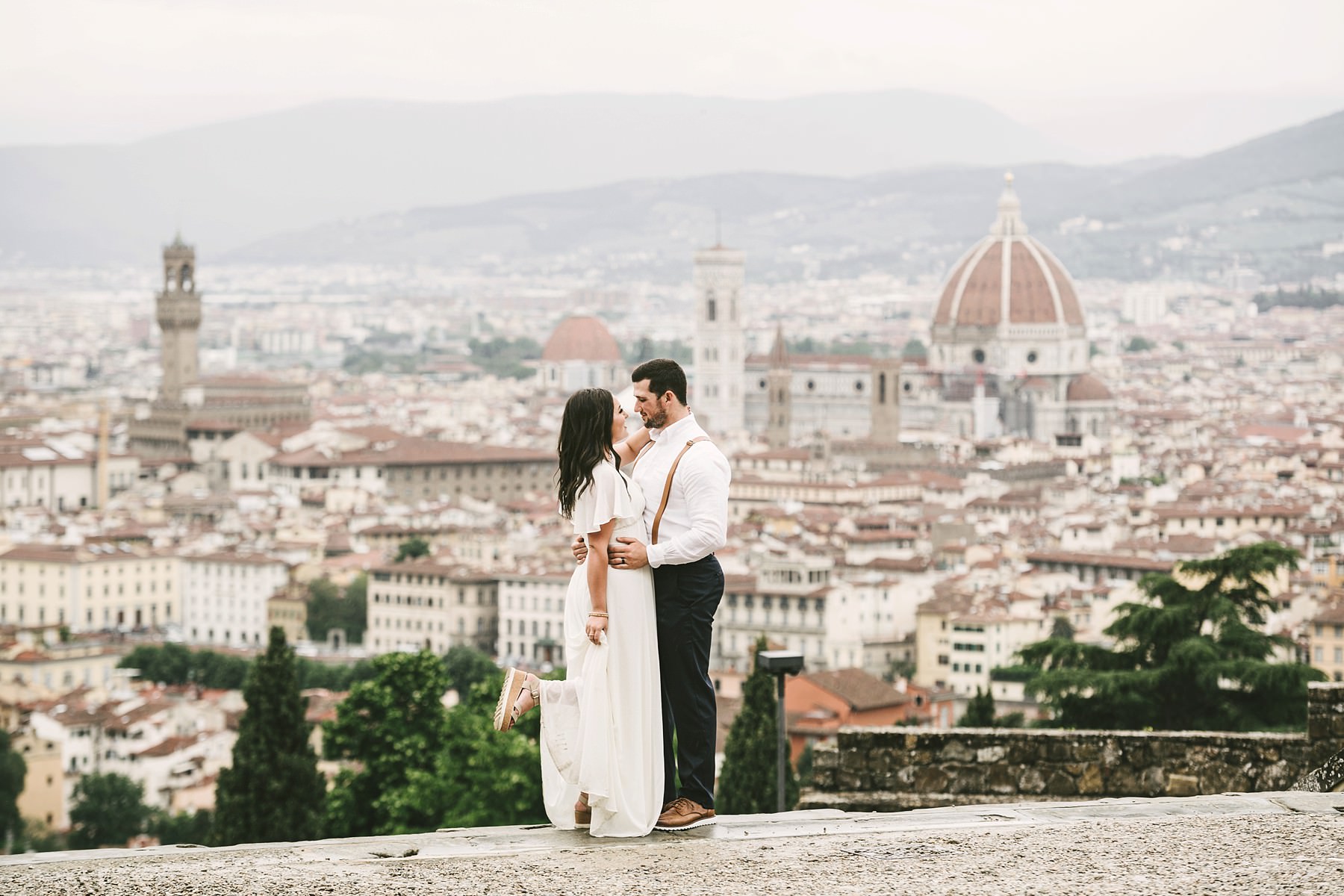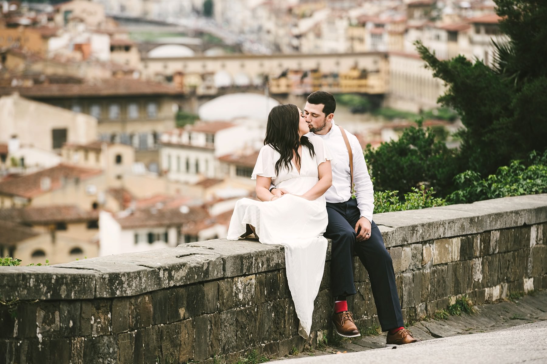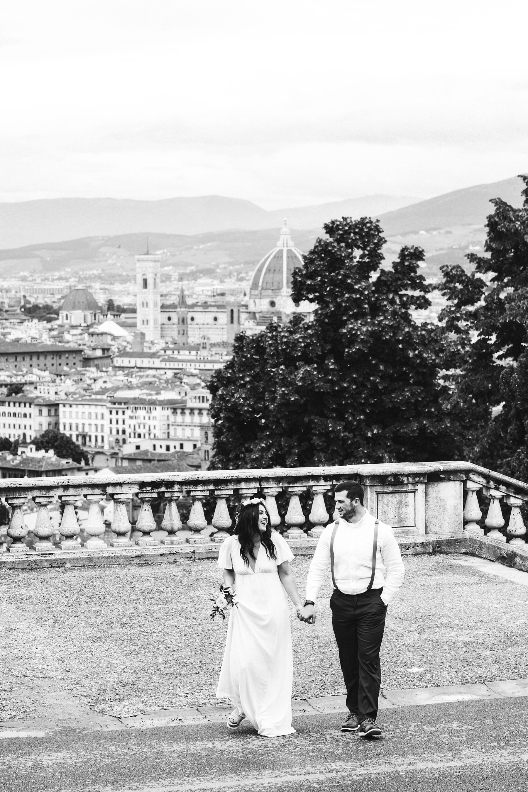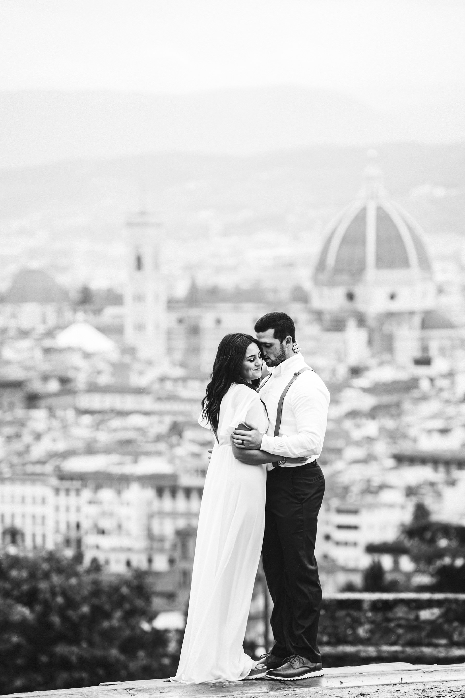 Elegant and romantic elopement wedding photo session at Piazzale Michelangelo in Florence. Photo by the creative, elegant and modern elopement wedding photographer in Tuscany based Florence Gabriele Fani