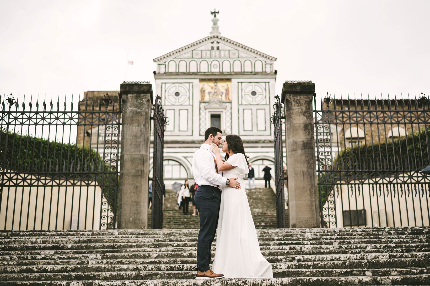 American your couple elopement photo shoot in Florence at San Miniato al Monte panoramic location. Photo by the creative, elegant and modern elopement wedding photographer in Tuscany based Florence Gabriele Fani