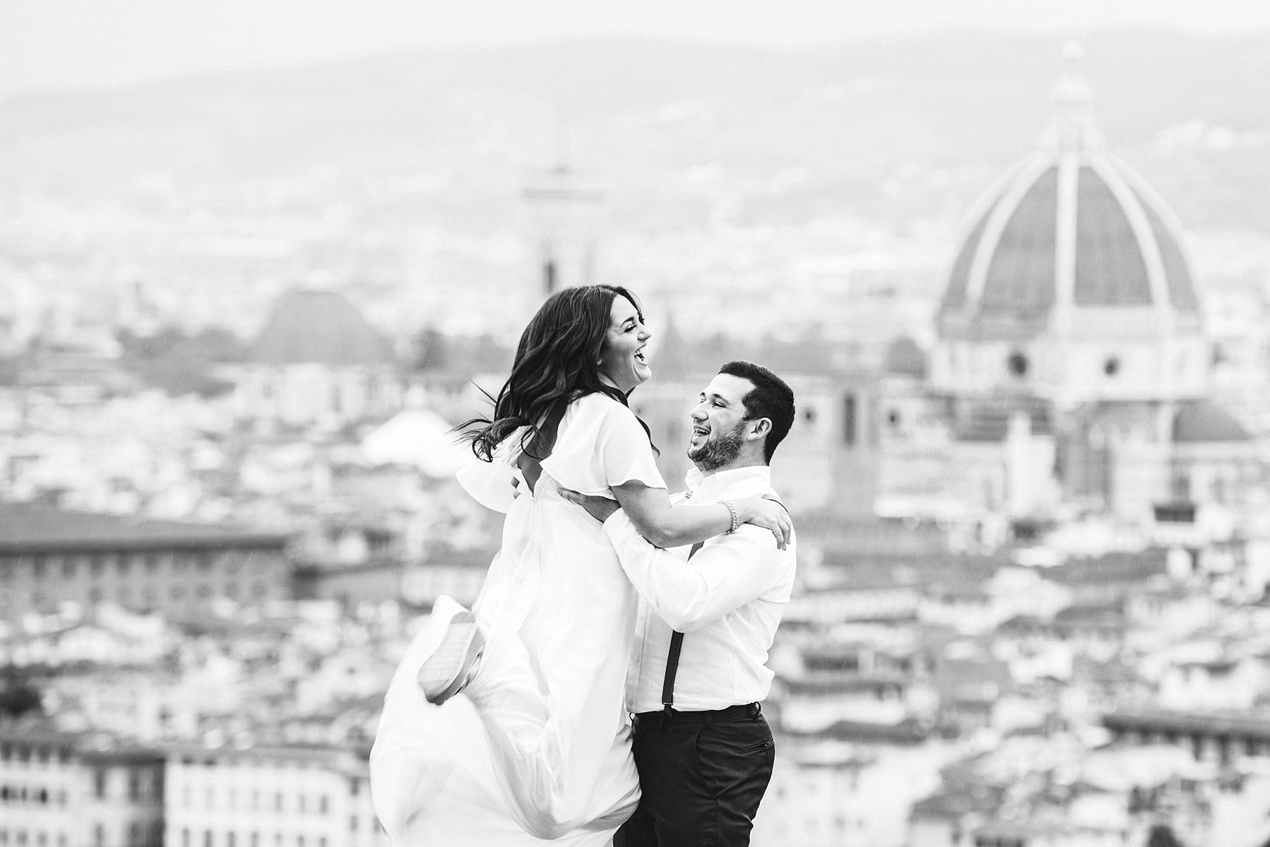 Exciting couple portrait elopement wedding photo session in Florence. Photo by the creative, elegant and modern elopement wedding photographer in Tuscany based Florence Gabriele Fani