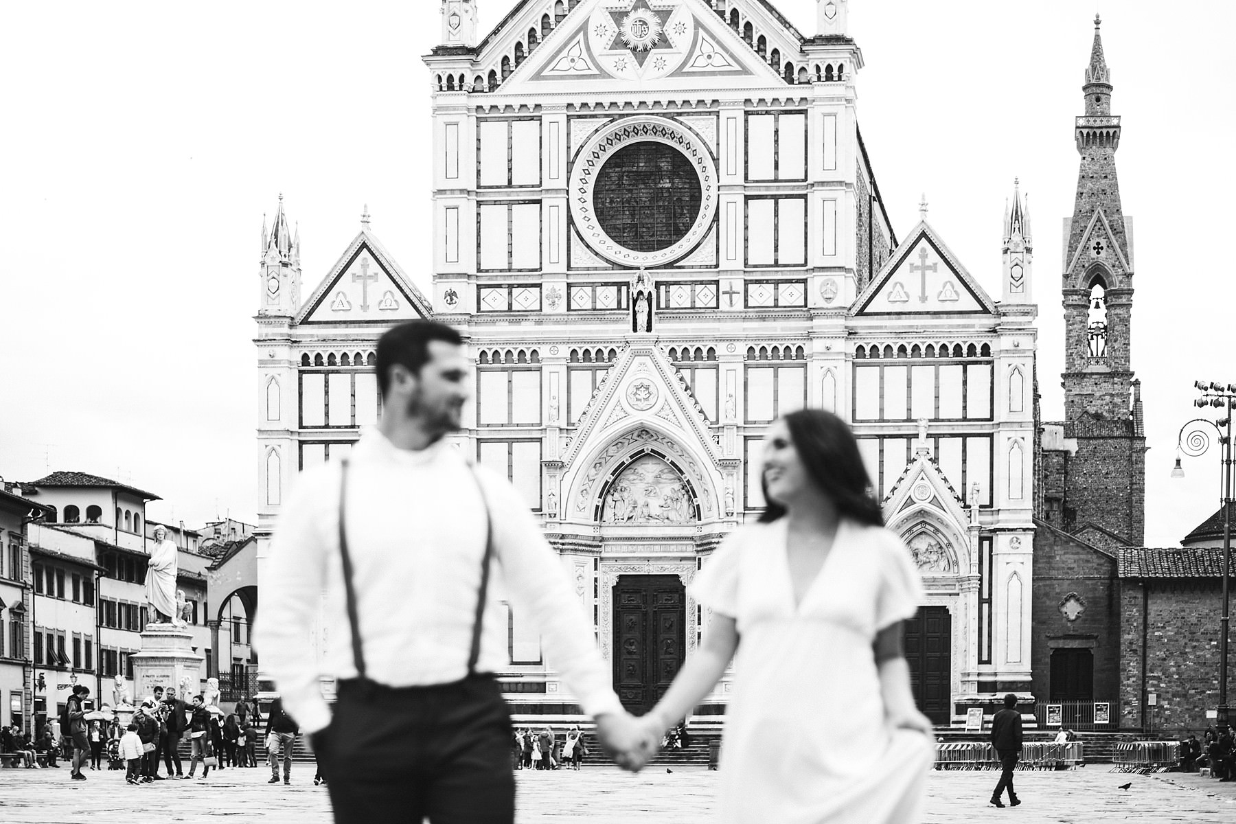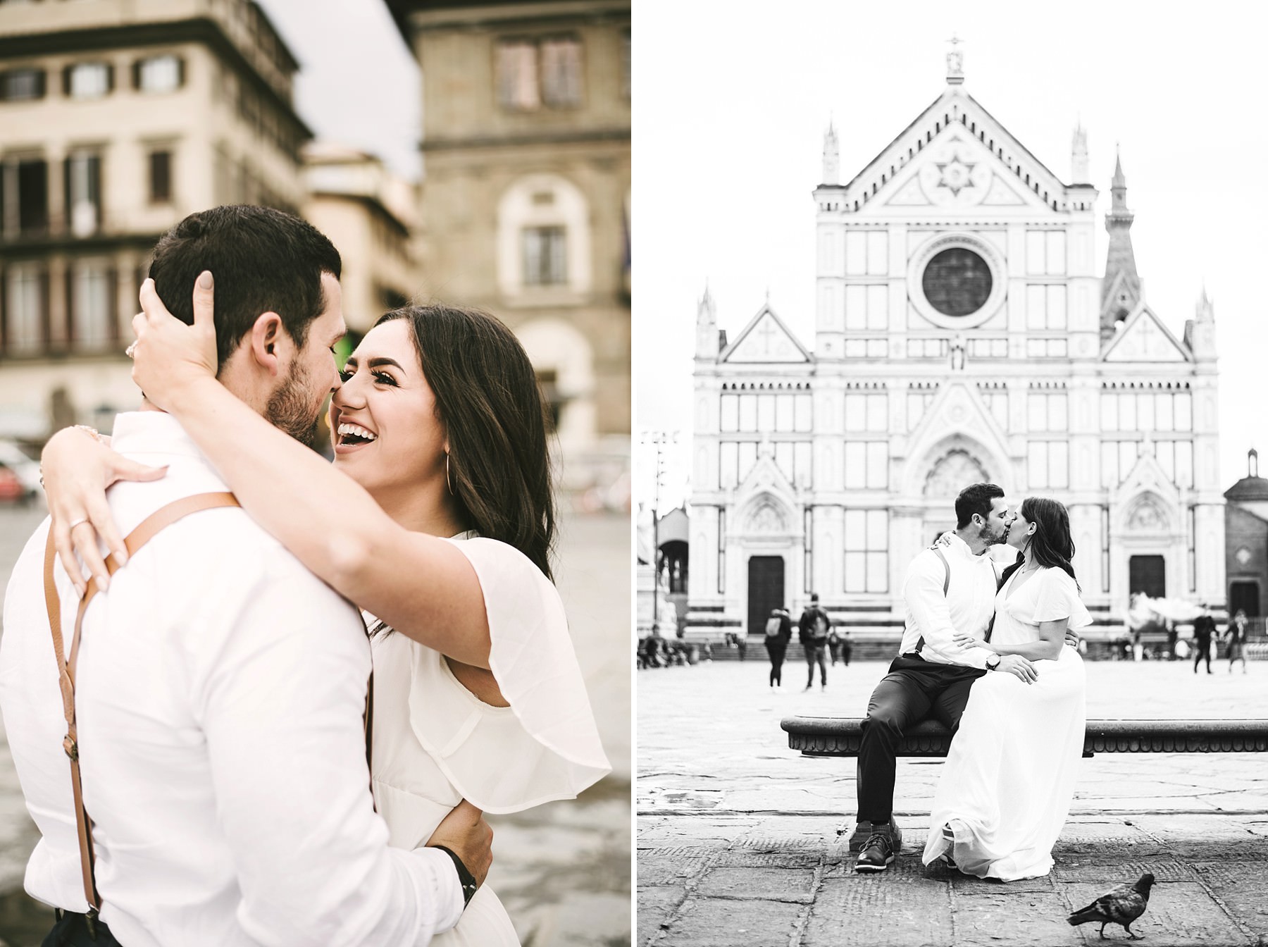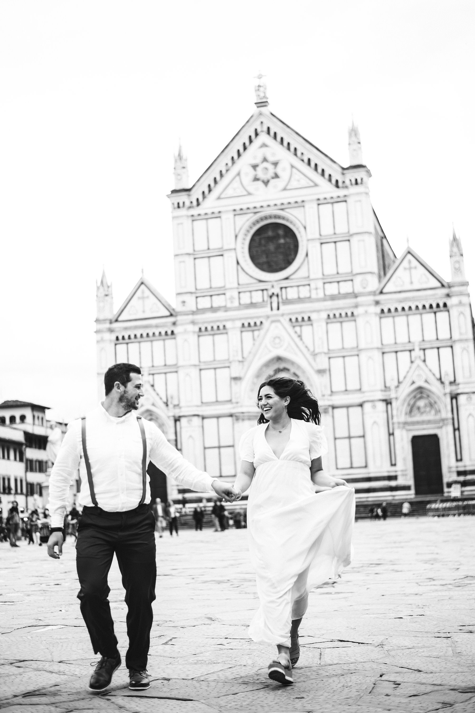 Romantic, fun and exciting elopement photo shoot in Florence near Santa Croce in the historic centre of the cradle of Renaissance. Photo by the creative, elegant and modern elopement wedding photographer in Tuscany based Florence Gabriele Fani