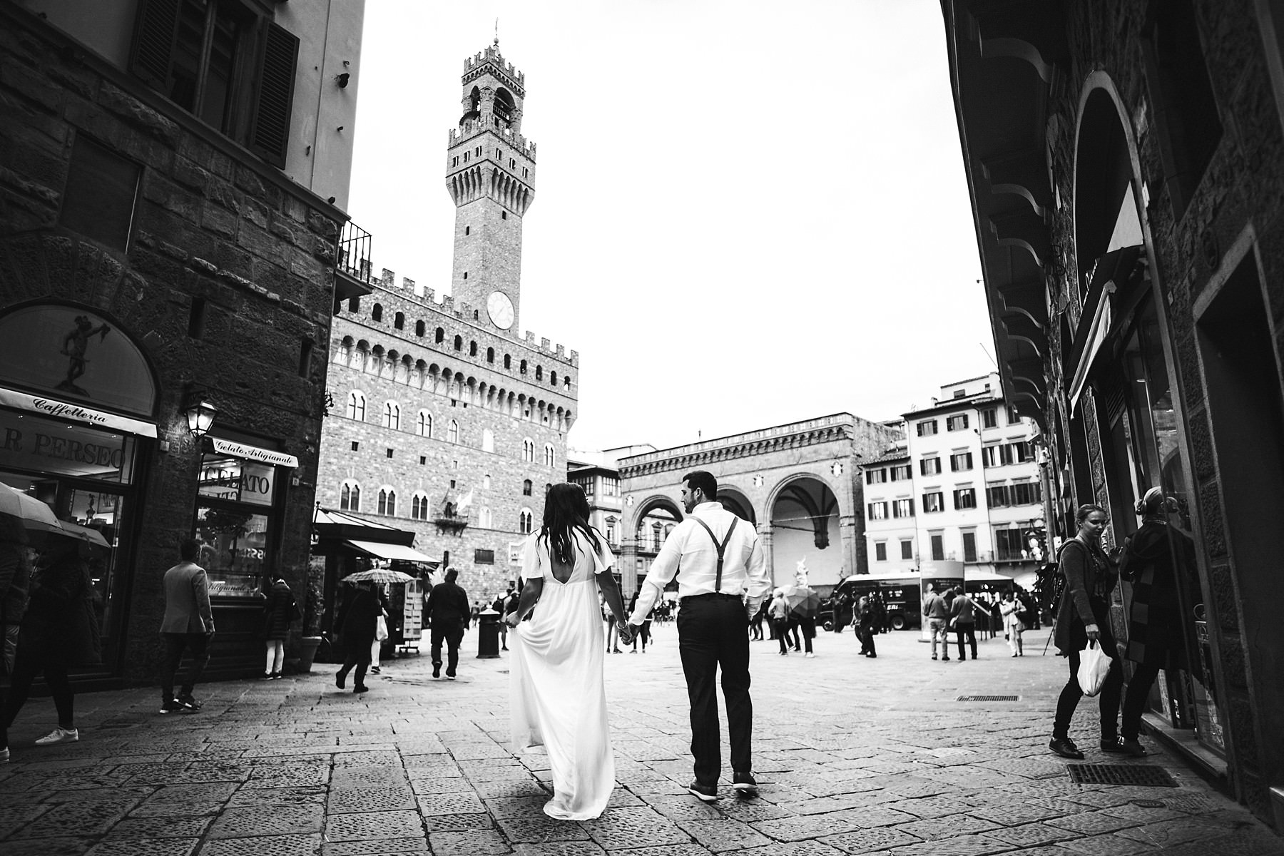 Lovely Florence walk tour photo shoot in the historic center. Elopement wedding photo session. Photo by the creative, elegant and modern elopement wedding photographer in Tuscany based Florence Gabriele Fani