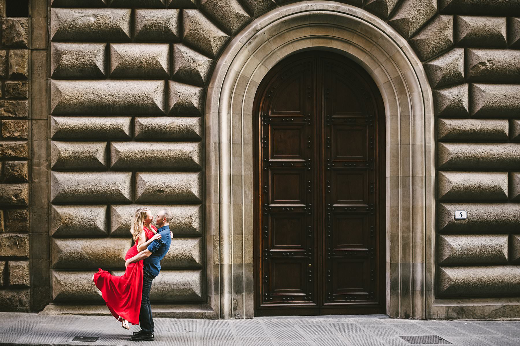 Anniversary photos in Florence: soft as sunrise, red as passion. Creative and modern portrait in Florence at Sunrise near Palazzo Vecchio and Palazzo Gondi in the very heart of the city. Anniversary photo by the Italian vacation holiday photographer in Tuscany based Florence Gabriele Fani