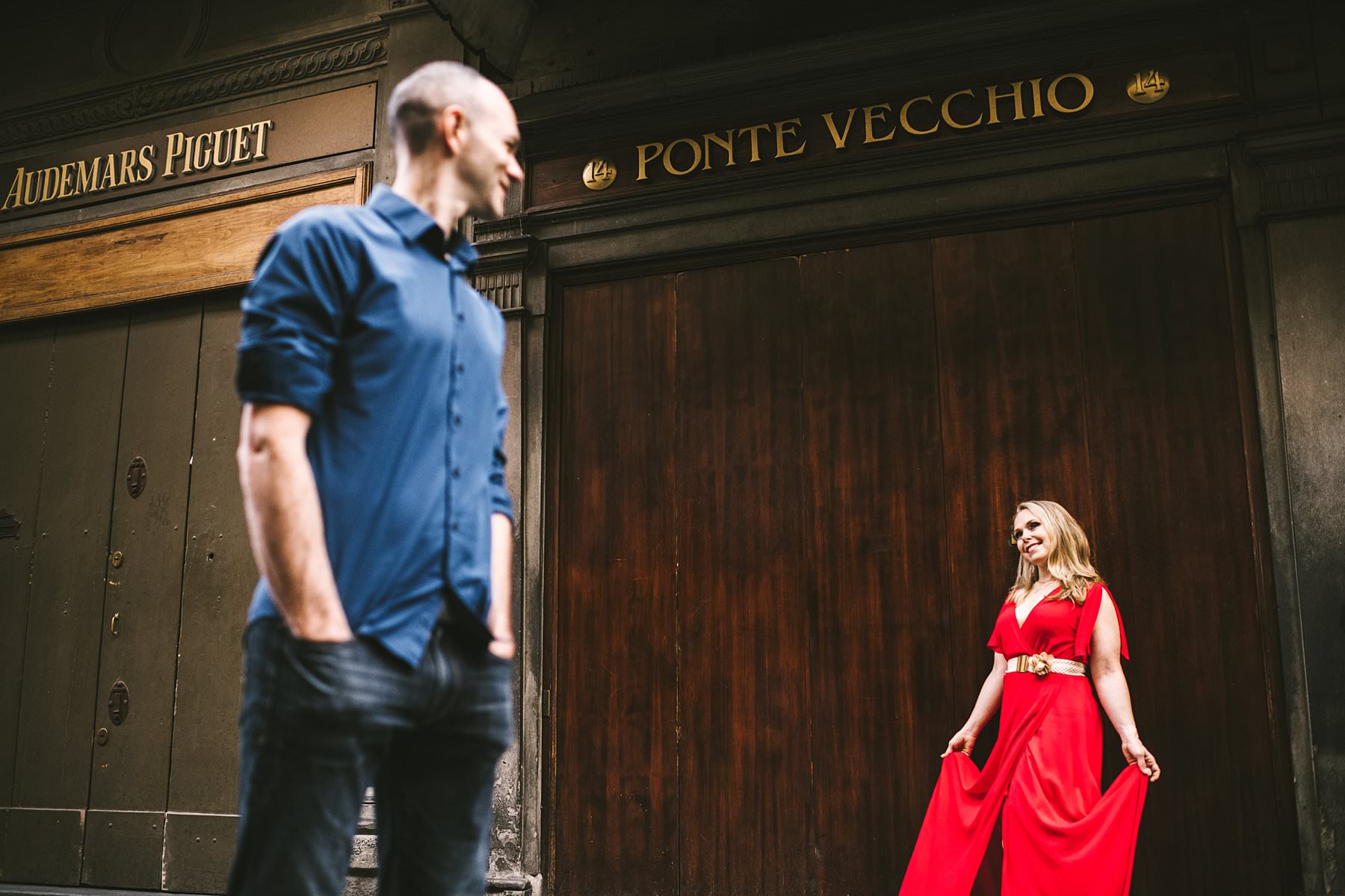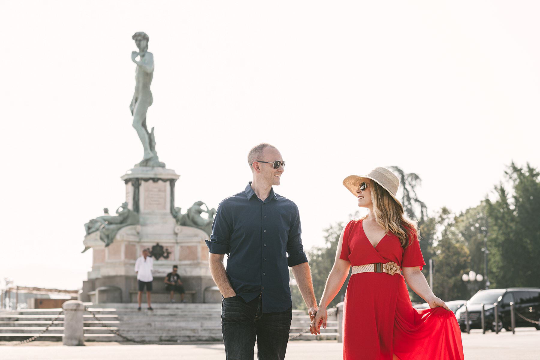 Abbiamo passeggiato per le strade della città, durante una sessione che è durata quasi tre ore e toccato tutti i luoghi più iconici: da Piazza della Signoria alla Galleria degli Uffizi, da Palazzo Gondi a Piazza S. Firenze, da Ponte Vecchio a Piazzale Michelangelo. Quest’ultimo è un luogo davvero indimenticabile da cui si può godere di una vista mozzafiato sulla città: la cornice fotografica più meravigliosa che chiunque possa desiderare.
