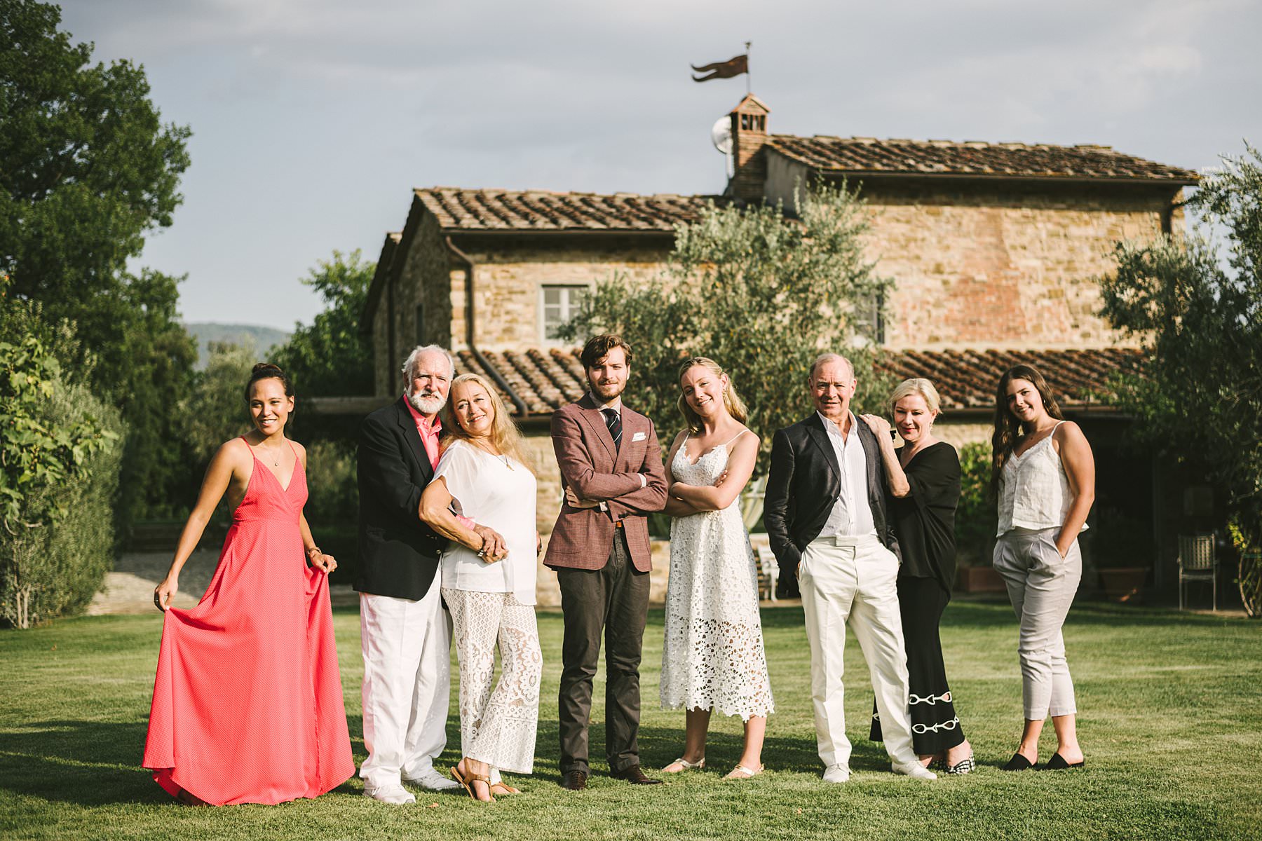 La famiglia Armstrong – genitori, fratello, sorella, zia, zio e cugina – ha viaggiato dalla California alla Toscana per il 65° compleanno del papà, insieme alla migliore amica di Madeleine.