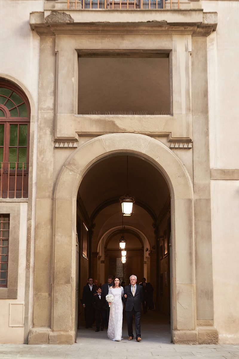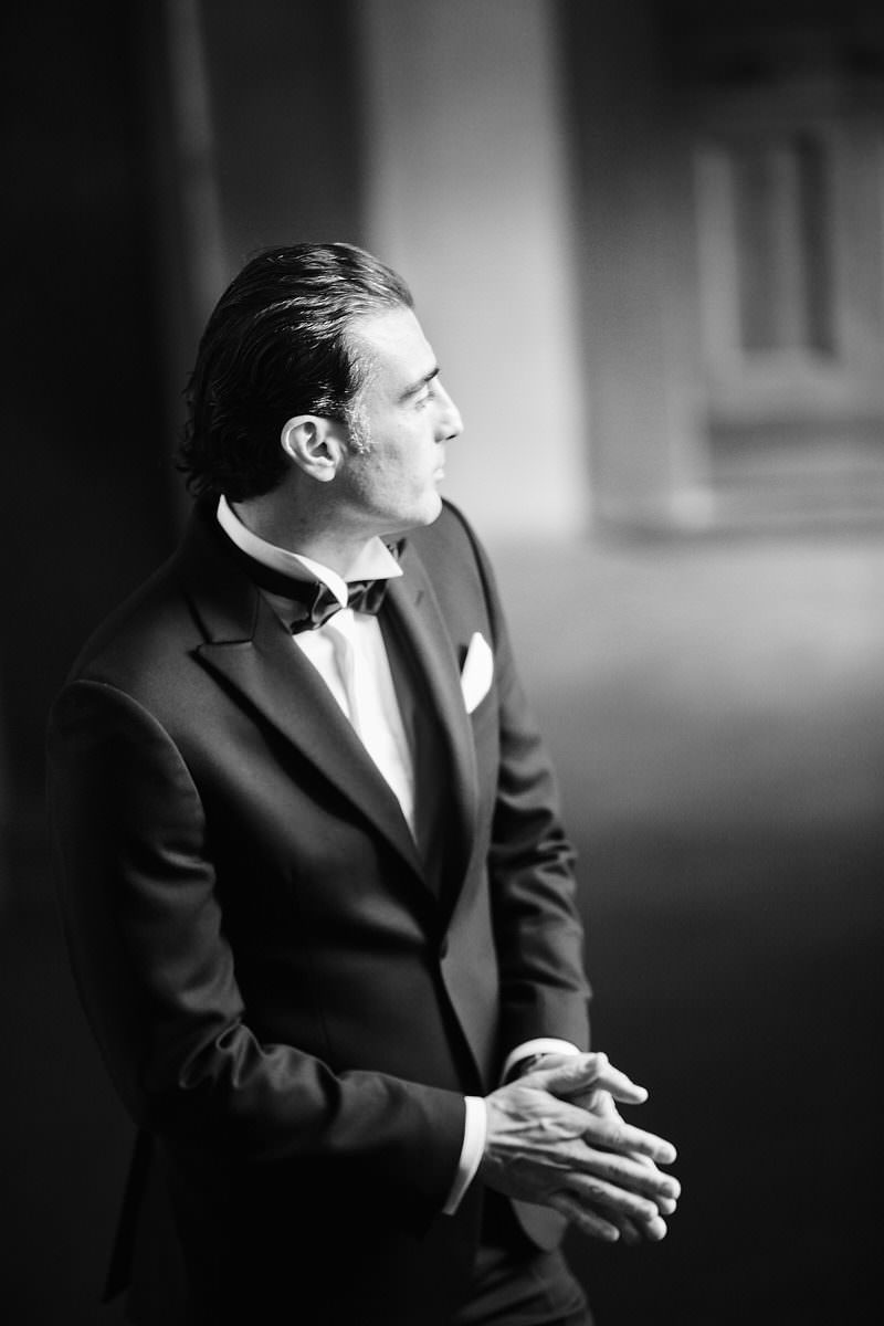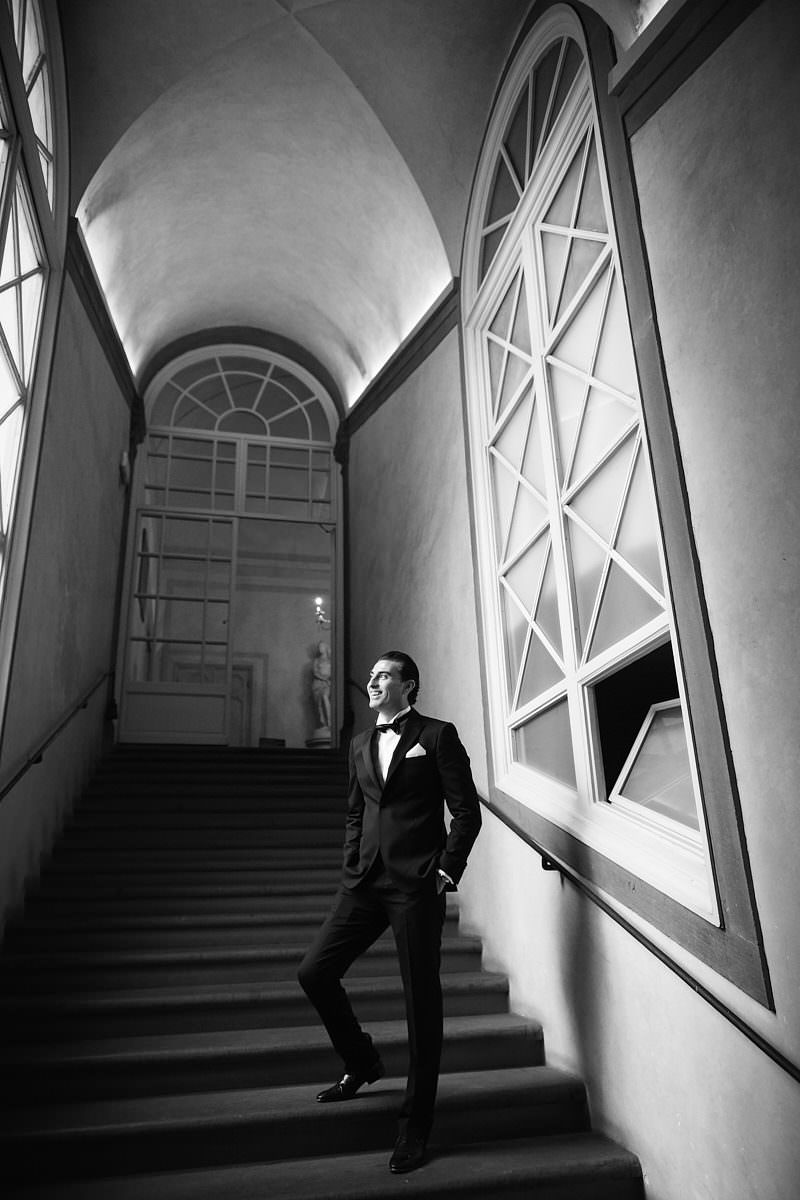 Prima di partire alla volta di Palazzo Vecchio il collega Alessandro, che ringrazio per avermi aiutato a raccontare questa storia, ha sfruttato tutto lo charme del giardino della Gherardesca con le caratteristiche statue sullo sfondo per qualche portrait di Sergio con i figli che lo avevano raggiunto nel frattempo. Prima di scambiarsi i voti gli sposi si sono incontrati per il “first look” appena prima di varcare la soglia della splendida Sala Rossa in Palazzo Vecchio dove amici e parenti li hanno accolti calorosamente e con entusiasmo!