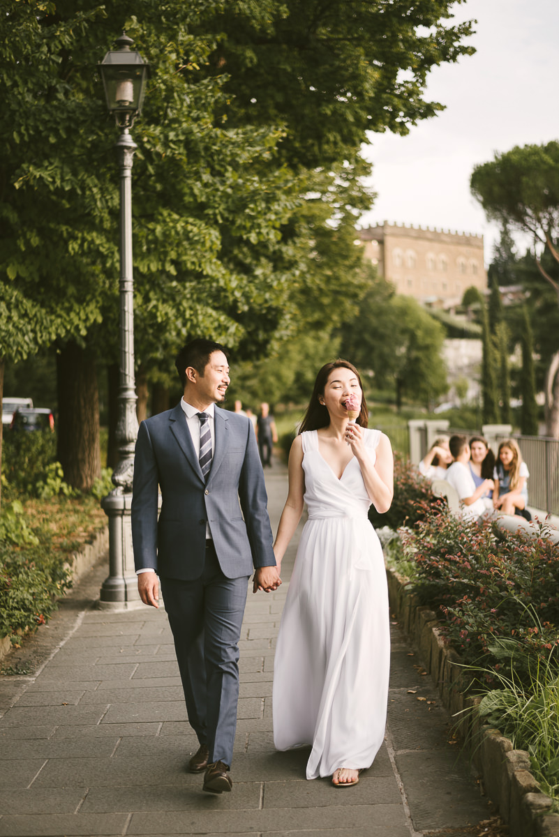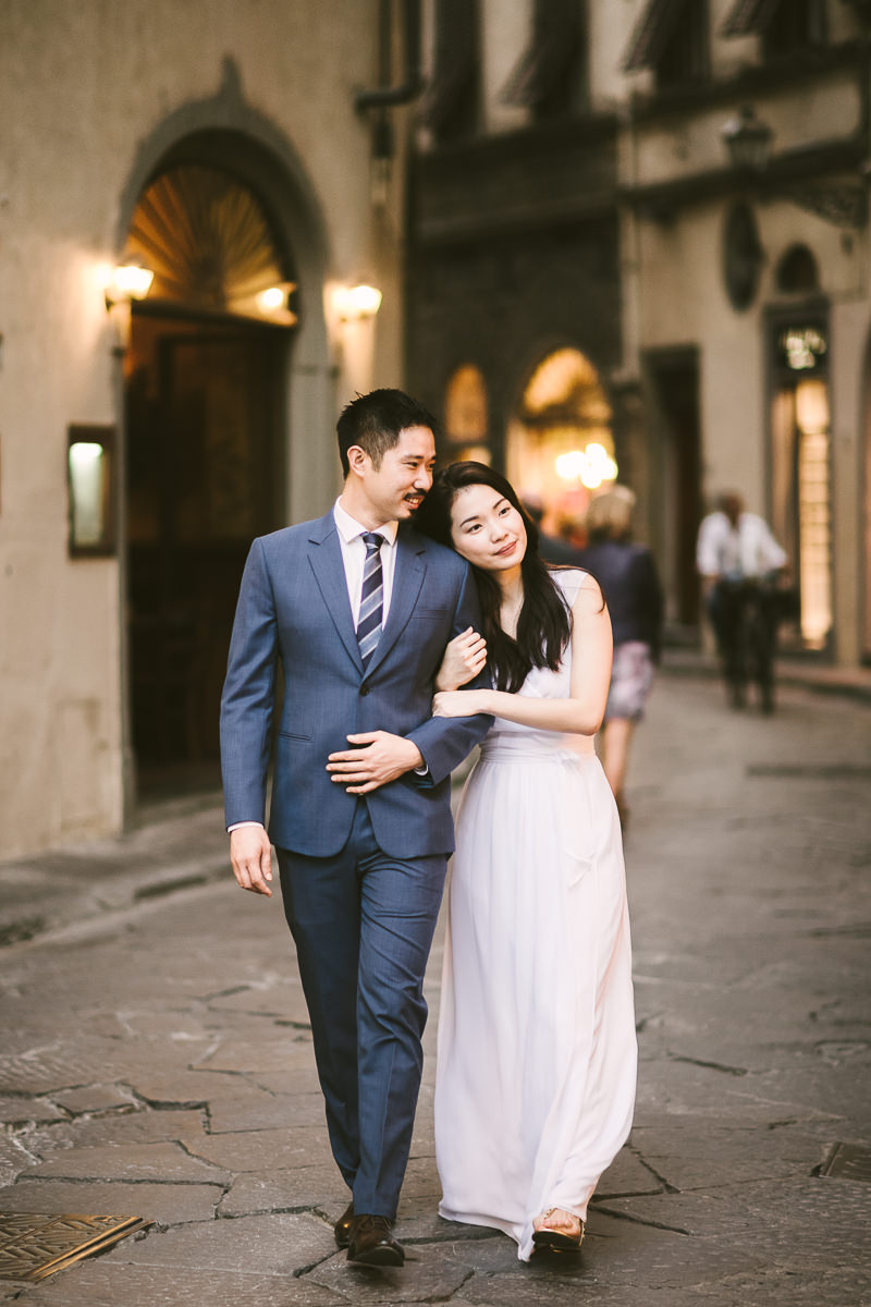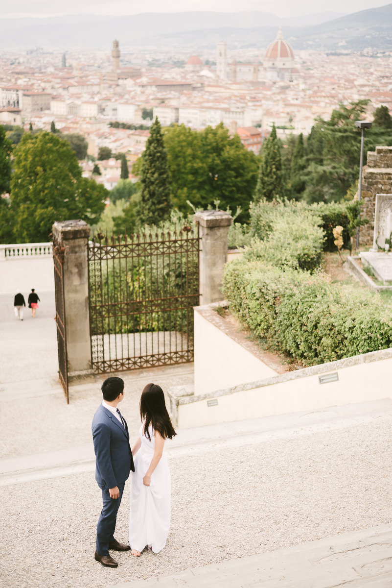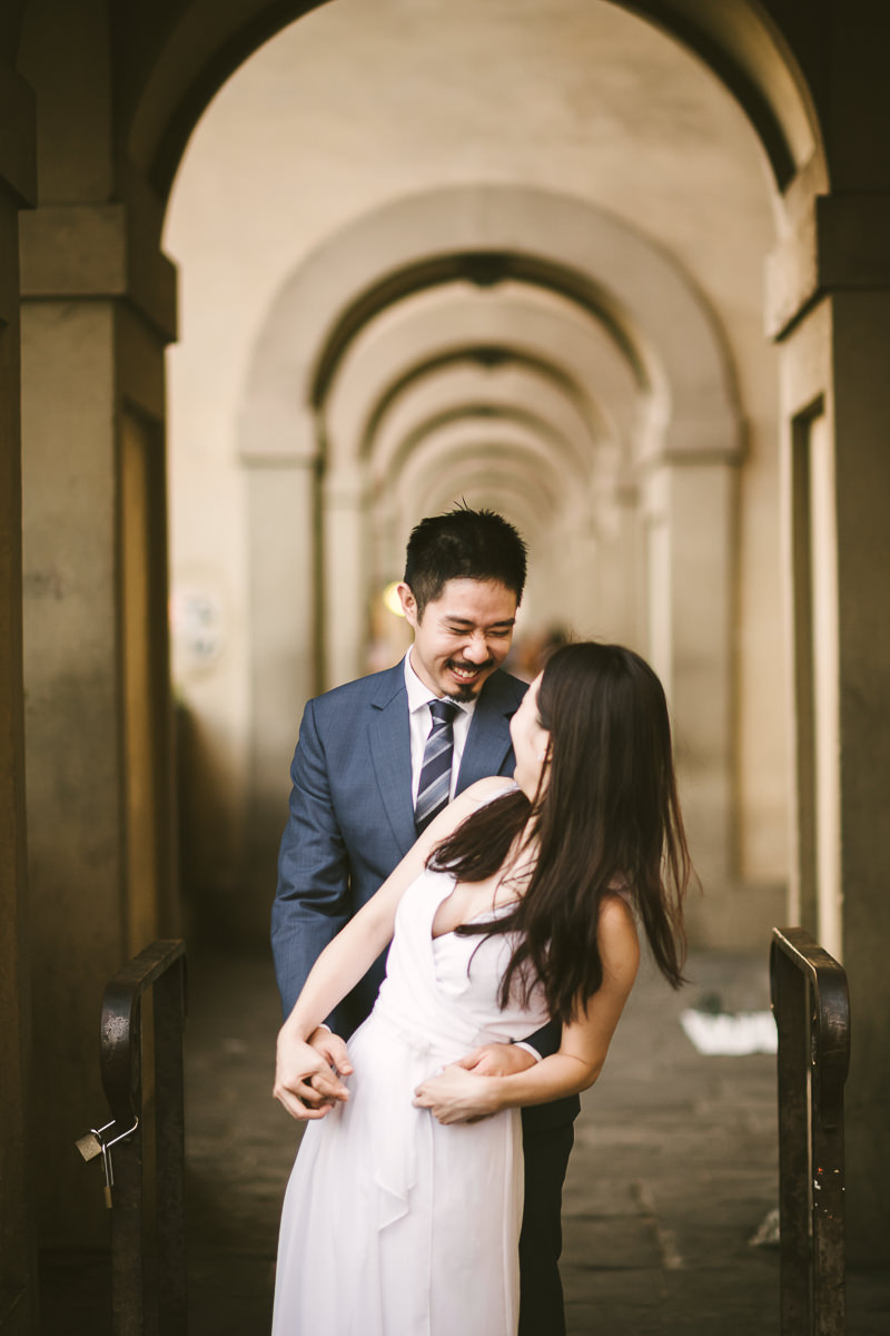 Quale migliore opportunità per fare un servizio fotografico pre-matrimoniale se non durante la vacanza nella città più bella del Mondo? Michelle e Jared provenienti da Singapore hanno condiviso con me questa fantastica esperienza in occasione della loro visita a Firenze. Le location coinvolte nel servizio fotografico sono l’Abbazia di San Miniato per immortalare qualche momento con la città sullo sfondo, il Piazzale Michelangelo e il centro per qualche ricordo dei vicoli caratteristici che lo caratterizzano e del Ponte Vecchio.
