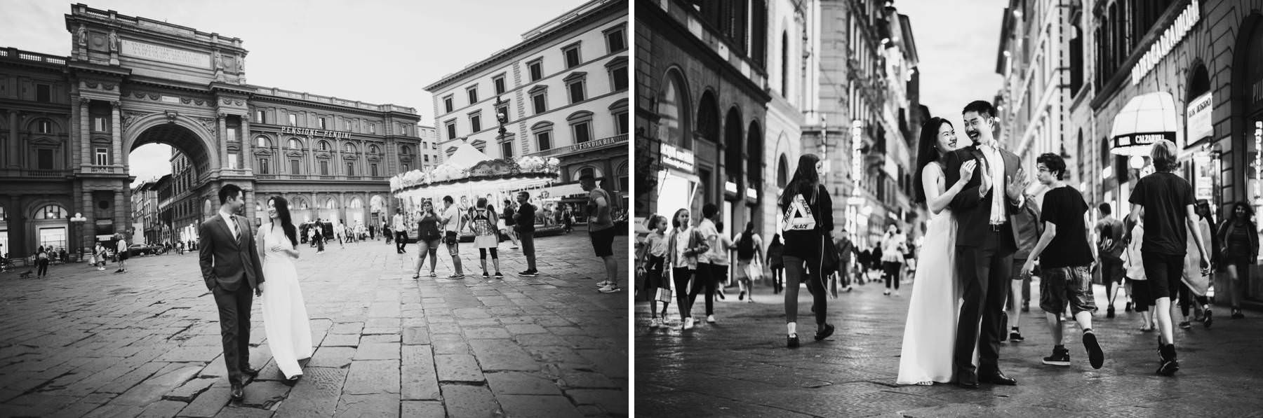 Le strade intorno al Duomo, come via dei Calzaiouli e via Roma, sono il cuore della città, i maestosi palazzi rinascimentali sono una gioia per gli occhi e Piazza della Repubblica, con il suo arco e la giostra, è una delle più belle del città. Il vecchio, storico carosello al centro della piazza, realizzato in legno e interamente decorato, crea un’atmosfera romantica e magica per chi, nelle foto pre-matrimonio, vorrebbe tornare bambini.