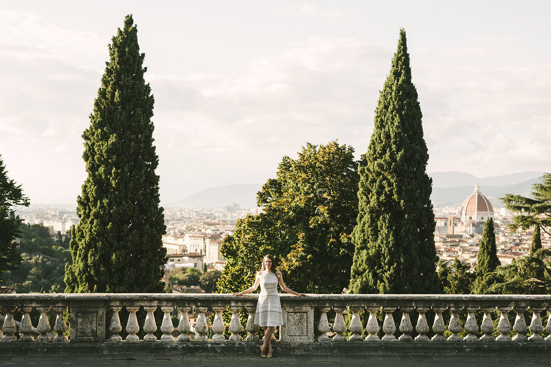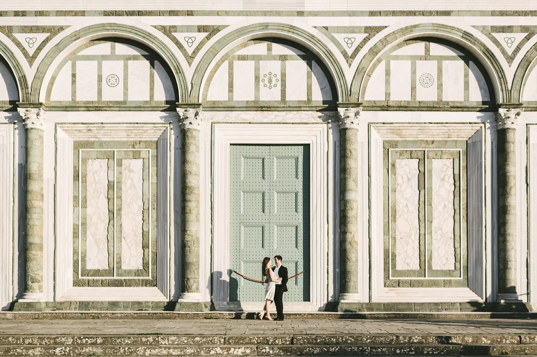 La ciliegina sulla torta a San Miniato al Monte, una deliziosa cattedrale situata su una collina che domina la città. La vista da lì è mozzafiato: l’intera Firenze si estende ai suoi piedi creando uno sfondo incredibile per un servizio fotografico al tramonto. Immagina di essere accarezzato dal piacevole bagliore della luce del tardo pomeriggio, oppure dai un’occhiata alle seguenti fotografie per avere un’idea di quella perfetta alchimia.