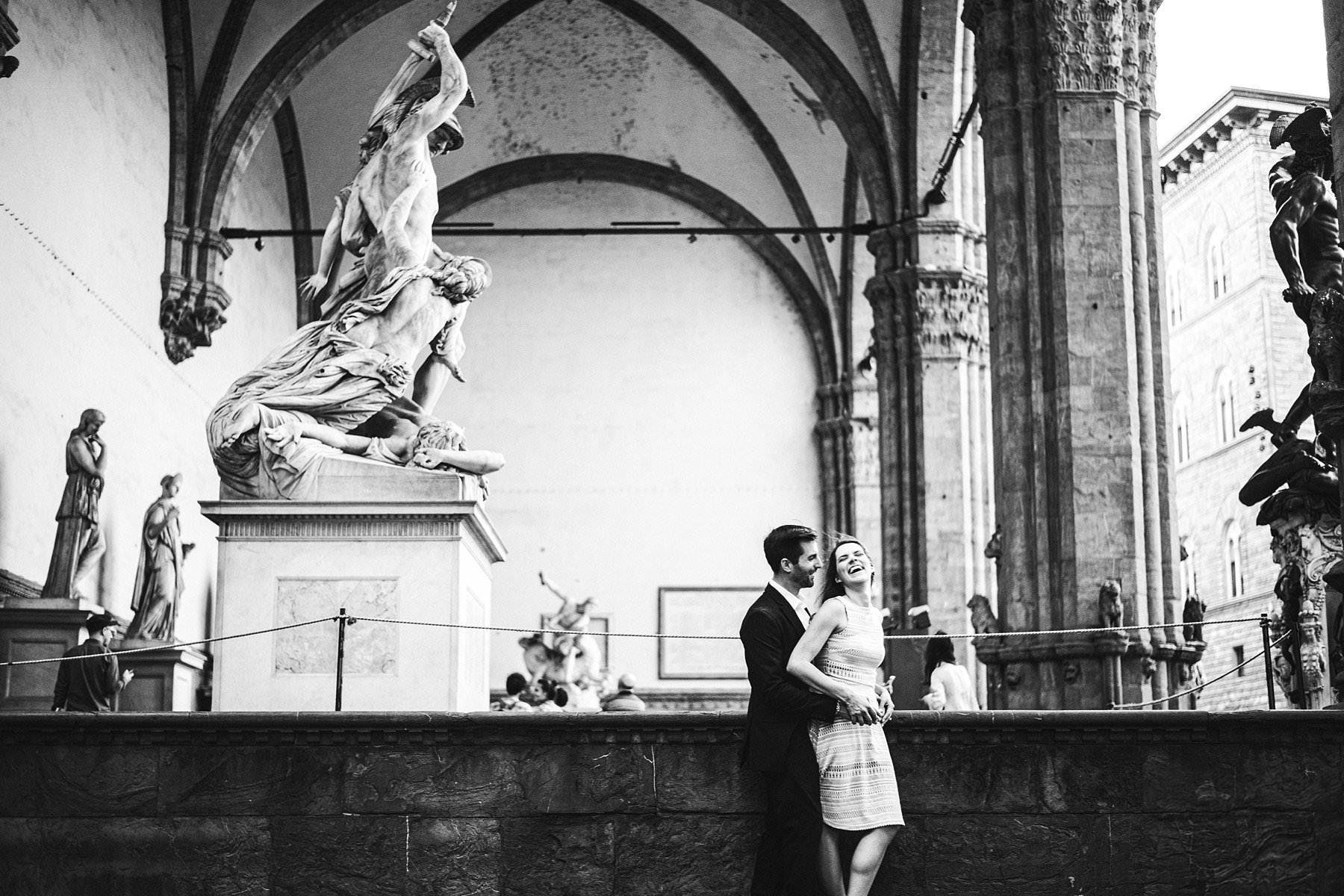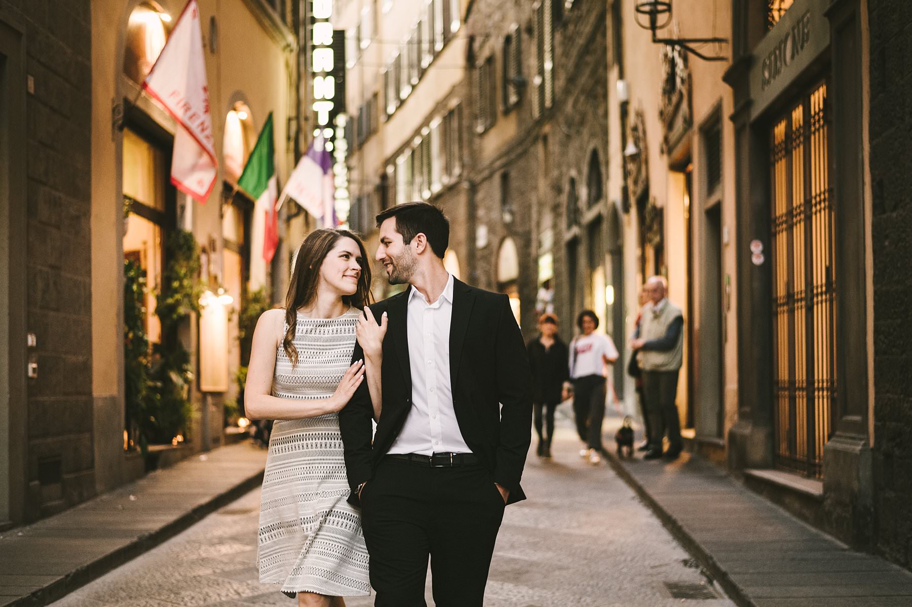Volevano un ricordo duraturo e prezioso di quell’evento significativo da conservare per sempre, quindi mi hanno contattato per un servizio fotografico al tramonto per le strade di Firenze. Perché al tramonto? Perché la sua luce dorata rende tutto più romantico e più caldo, come i sentimenti provano l’uno per l’altro. E perché la città diventa ancora più affascinante di quanto non sia di solito.