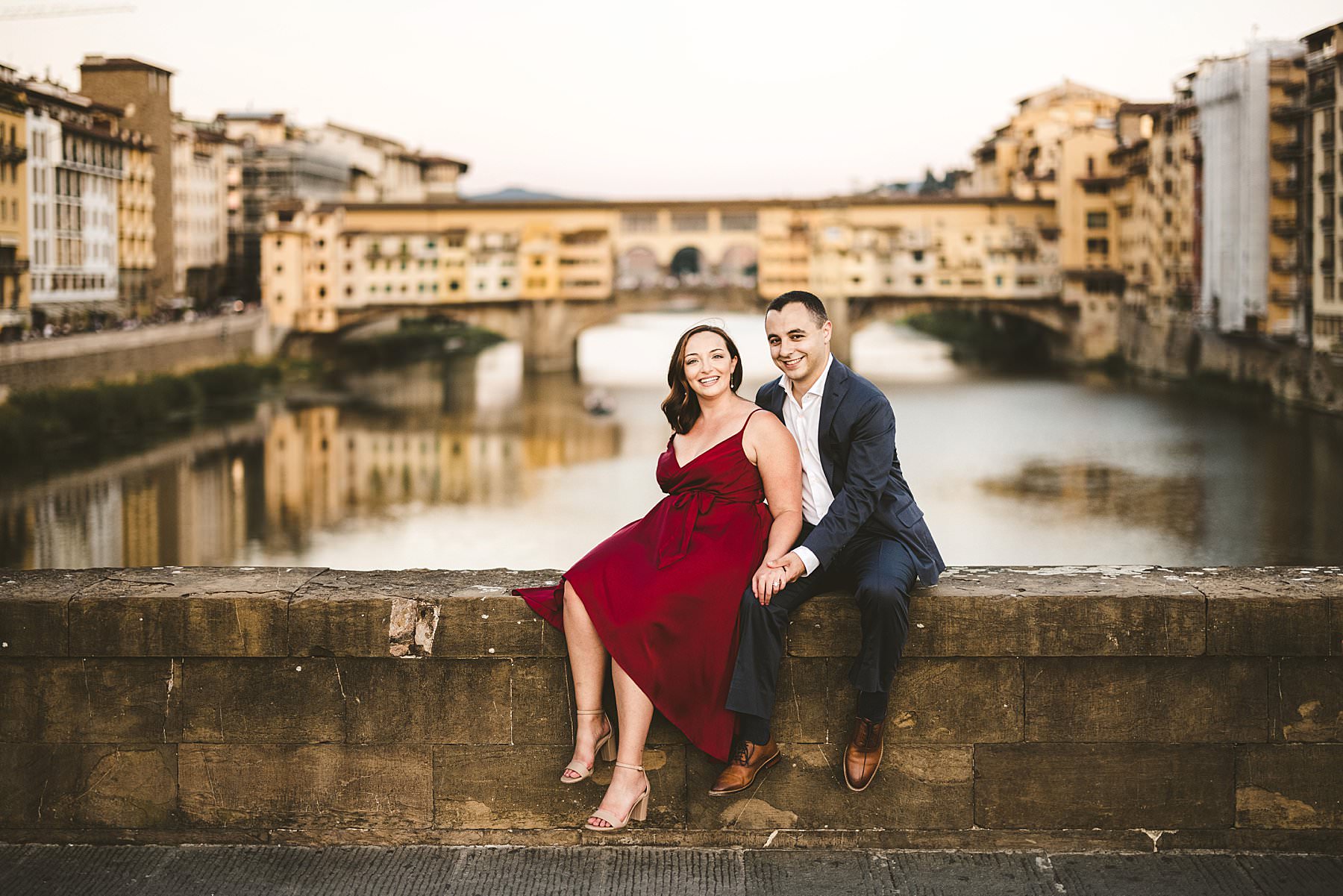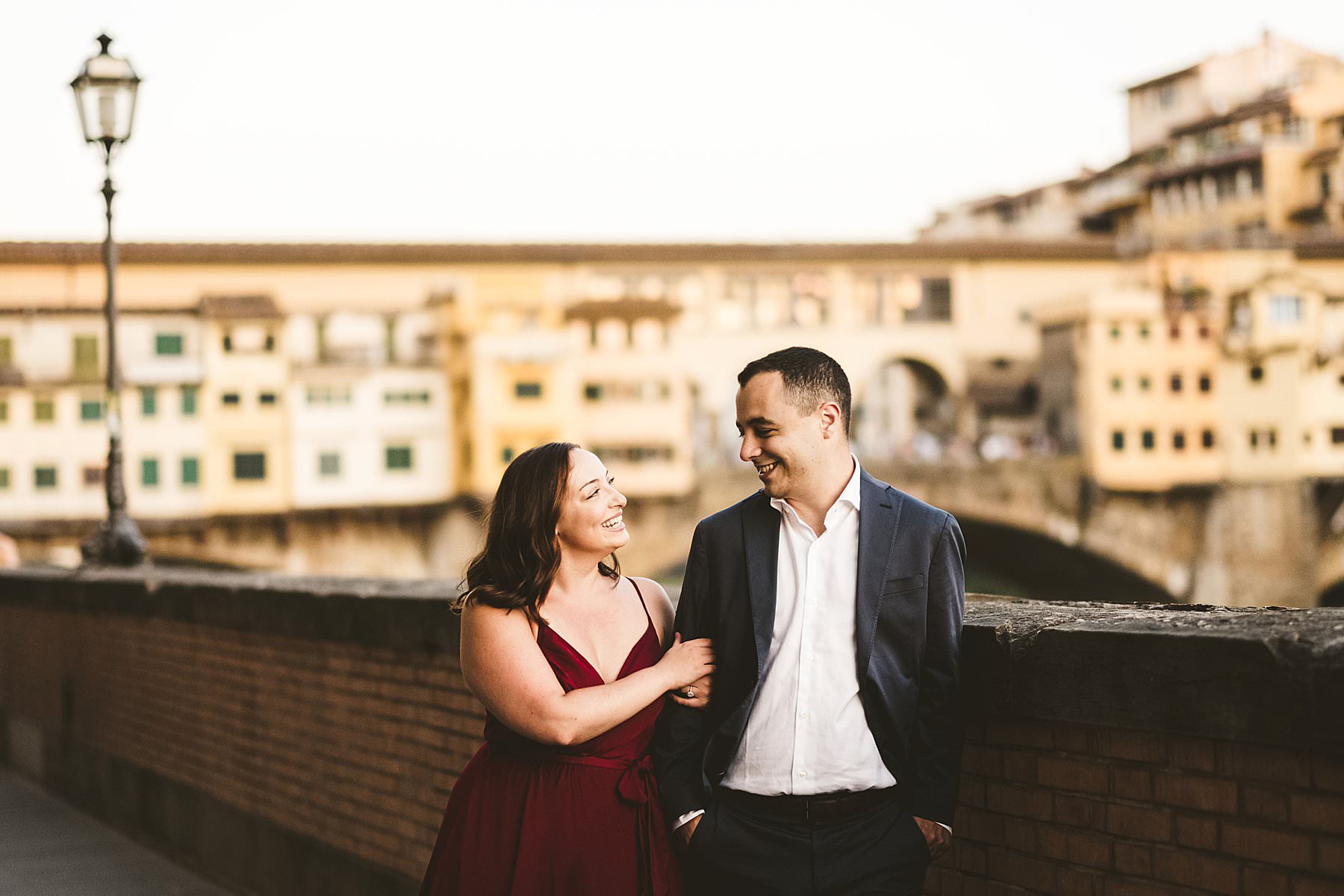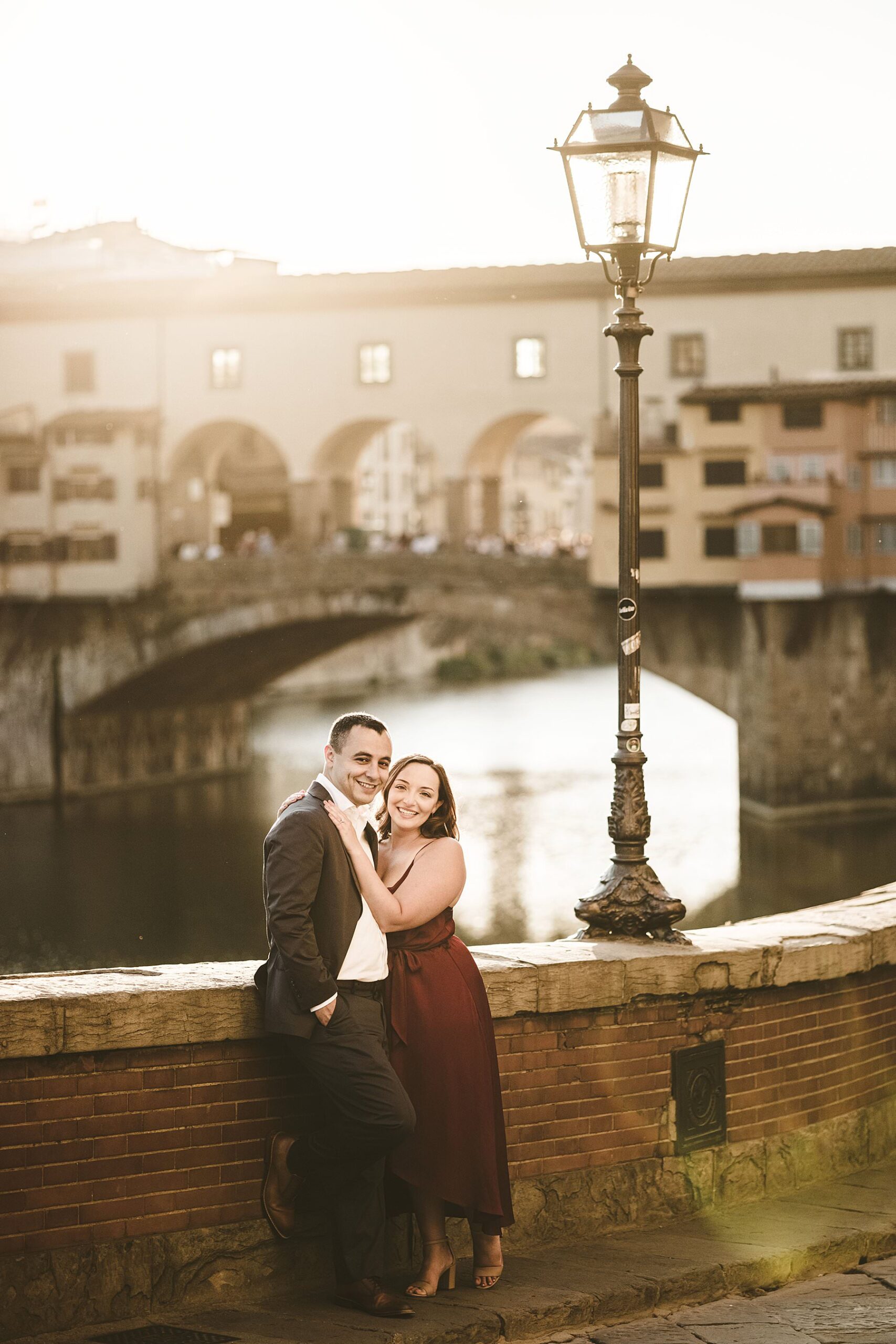 Andrea and CJ’s shooting started from San Miniato al Monte, a place that offers the most incredible view over Florence. From up there you can see the whole city, and the cathedral too! After that, we reached the heart of the town where we took some lovely couple portrait photos along the river Arno, near the famous Ponte Vecchio and by the charming Uffizi Gallery. They will surely remember this journey forever, thanks to their precious photoshoot.
