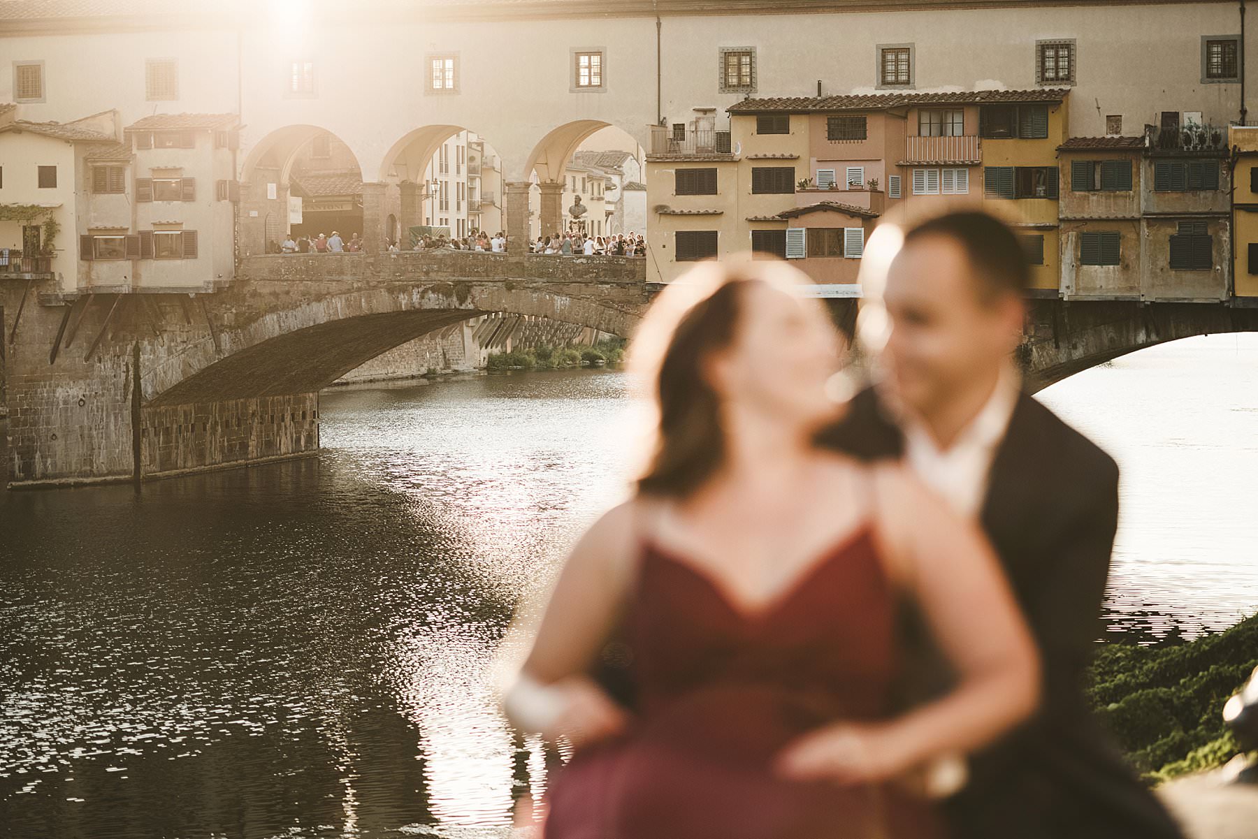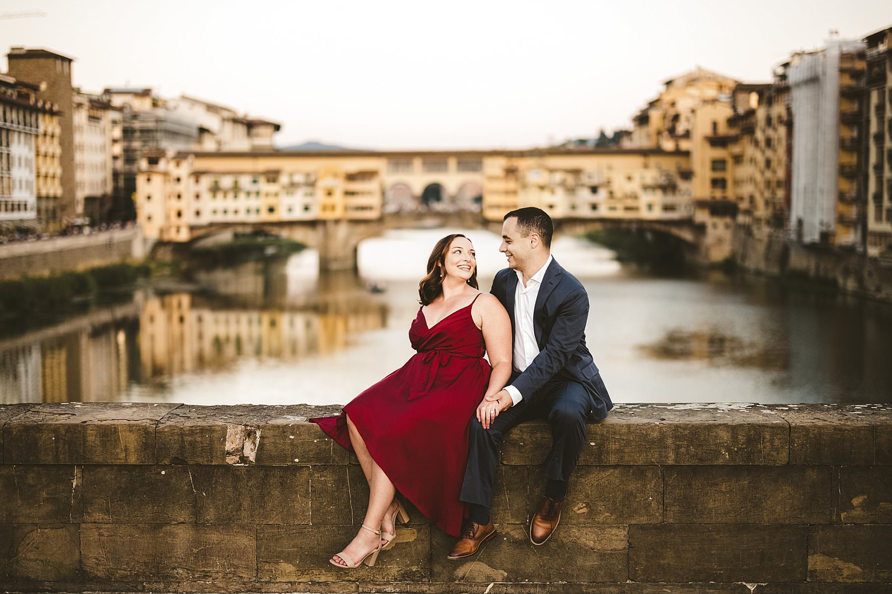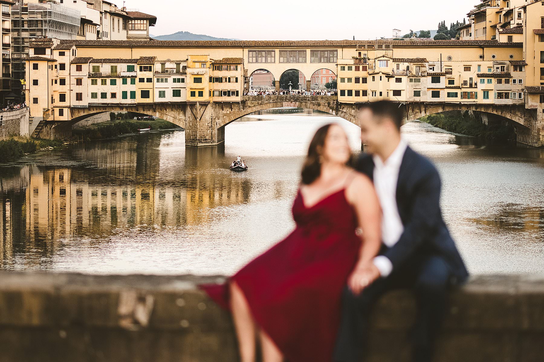 Andrea and CJ’s shooting started from San Miniato al Monte, a place that offers the most incredible view over Florence. From up there you can see the whole city, and the cathedral too! After that, we reached the heart of the town where we took some lovely couple portrait photos along the river Arno, near the famous Ponte Vecchio and by the charming Uffizi Gallery. They will surely remember this journey forever, thanks to their precious photoshoot.