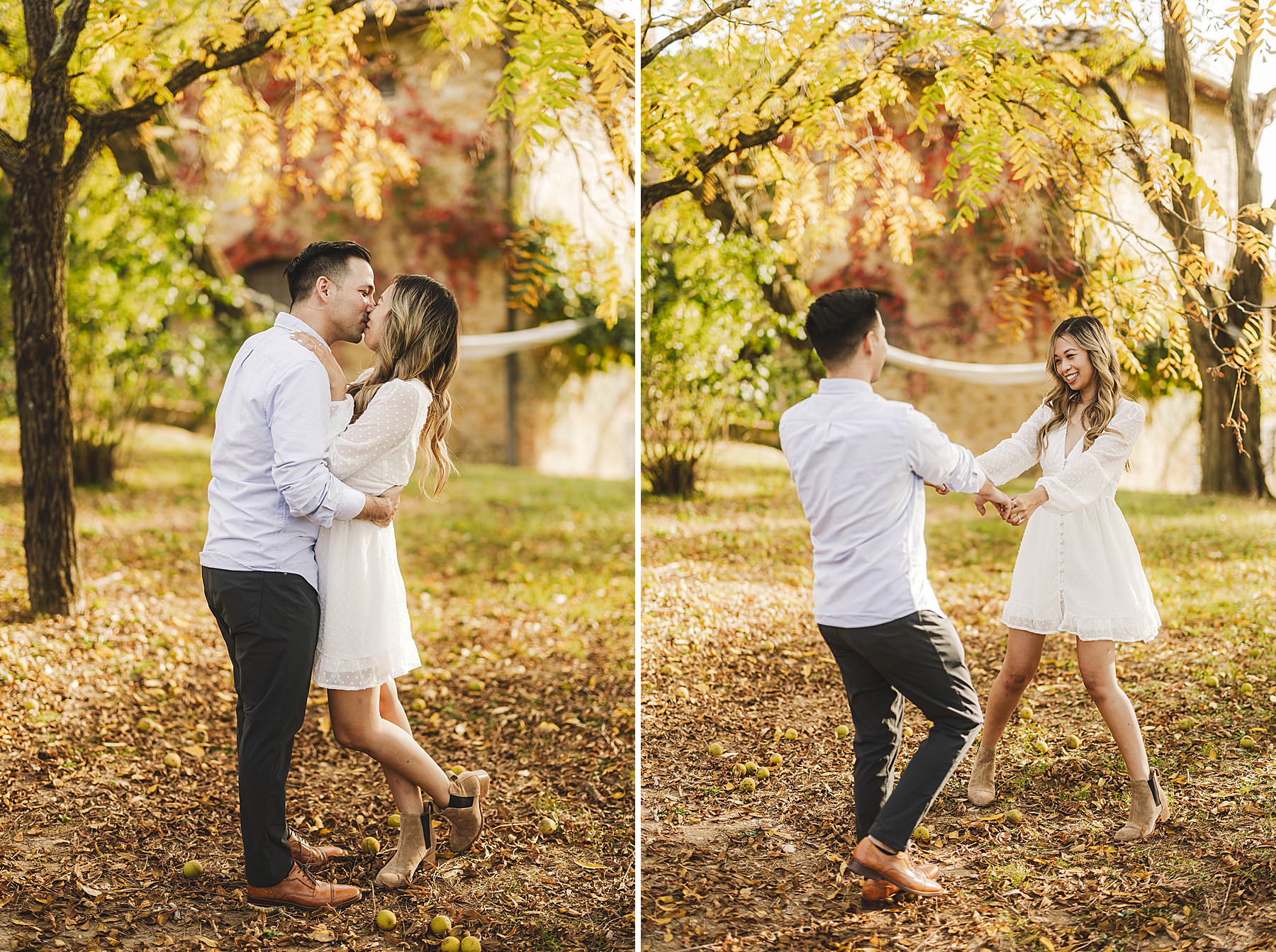Fun-loving and spontaneous couple photo shoot in Chianti countryside. Photo by the Italian elegant engagement photographer in Tuscany based Florence Gabriele Fani