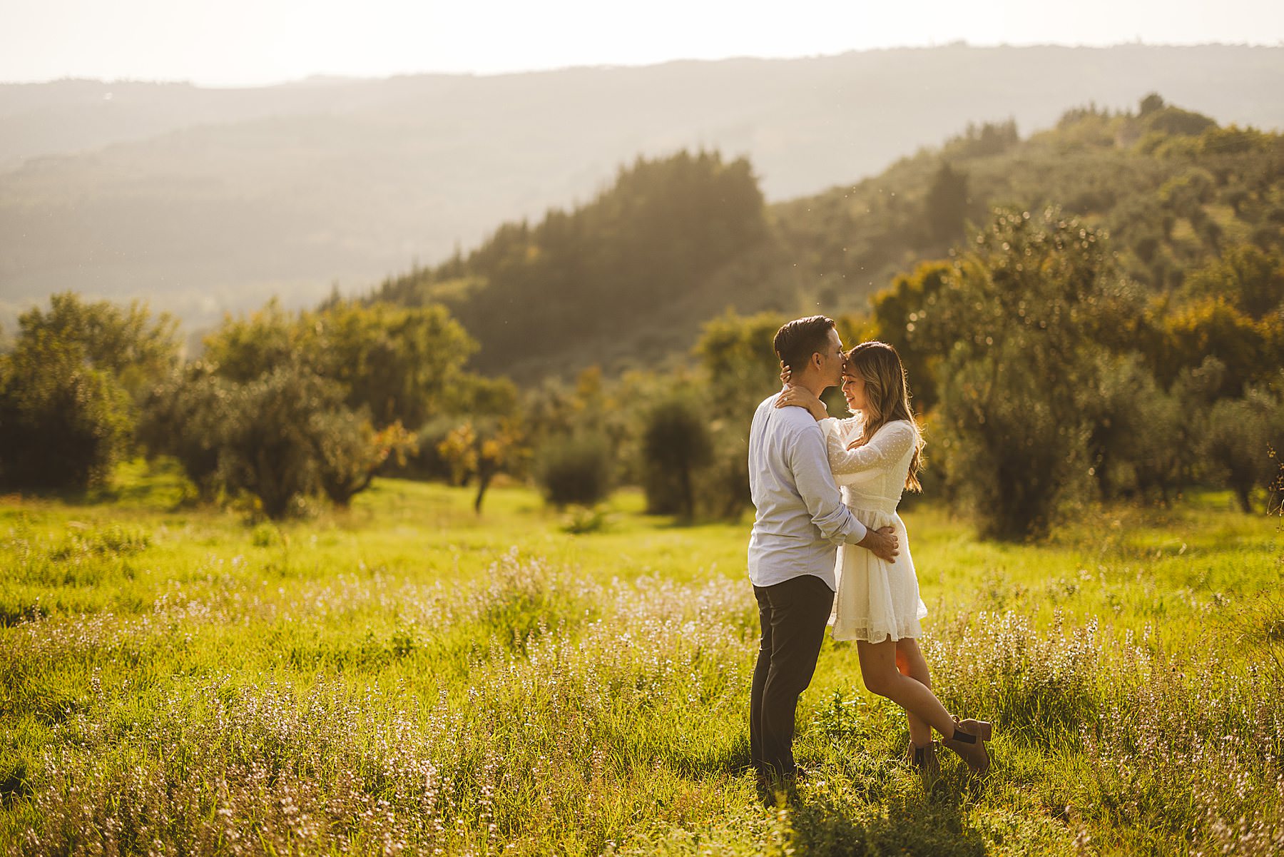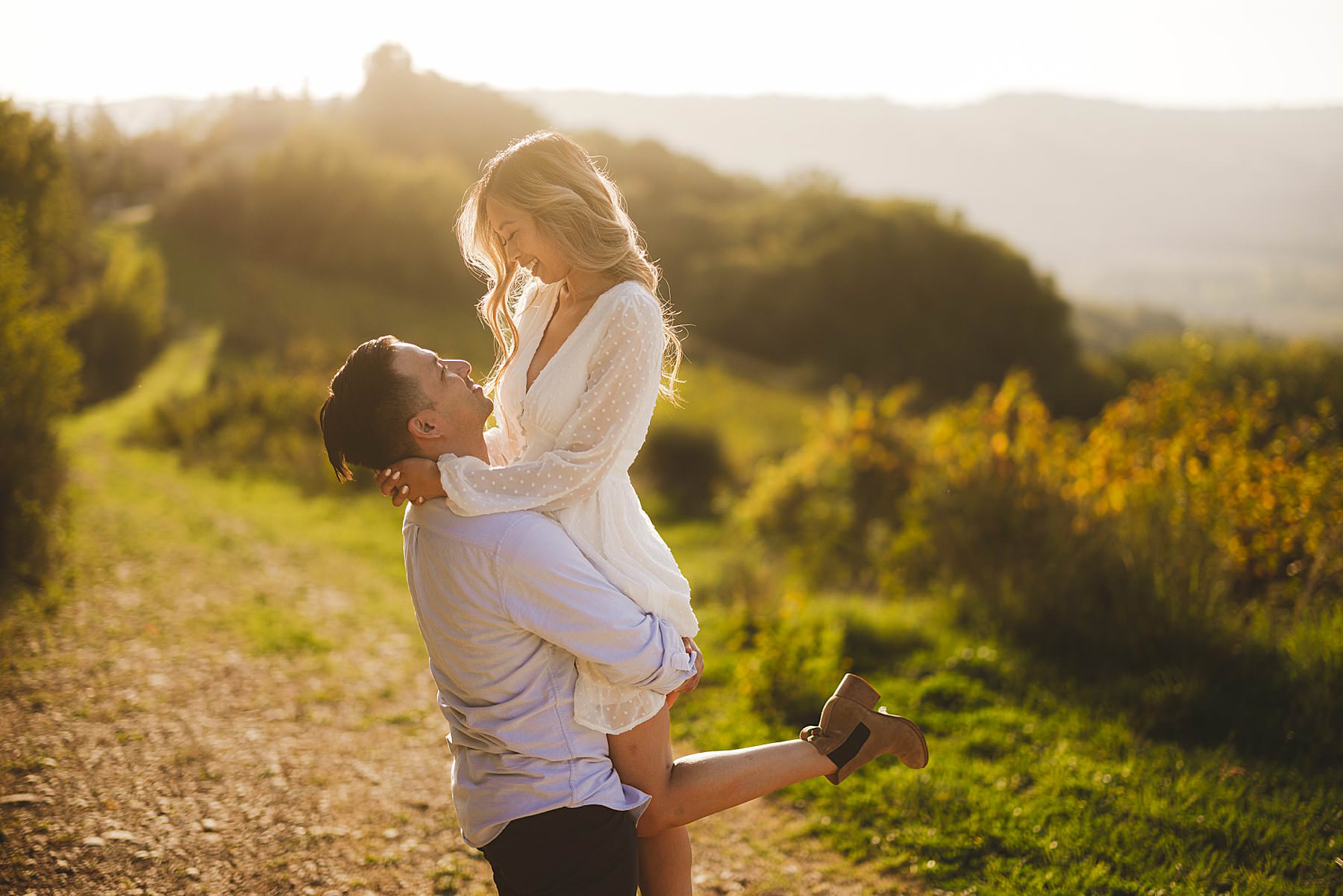 Melinda and Justin, a fun-loving and spontaneous couple from Los Angeles, were looking for an engagement photographer to shoot some pictures of them in the beautiful area of Chianti. We opted for San Casciano, or better: the rolling hills that surround it.
