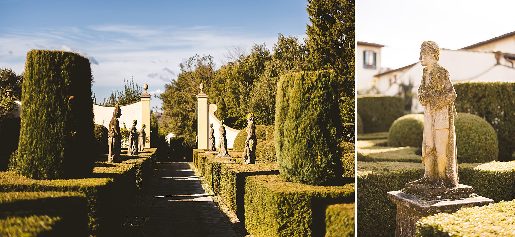 Romantic and classic engagement pre-wedding photo shoot in the Italian Garden of Villa Le Piazzole. Photo by the Italian classic and elegant engagement photographer in Tuscany based Florence Gabriele Fani