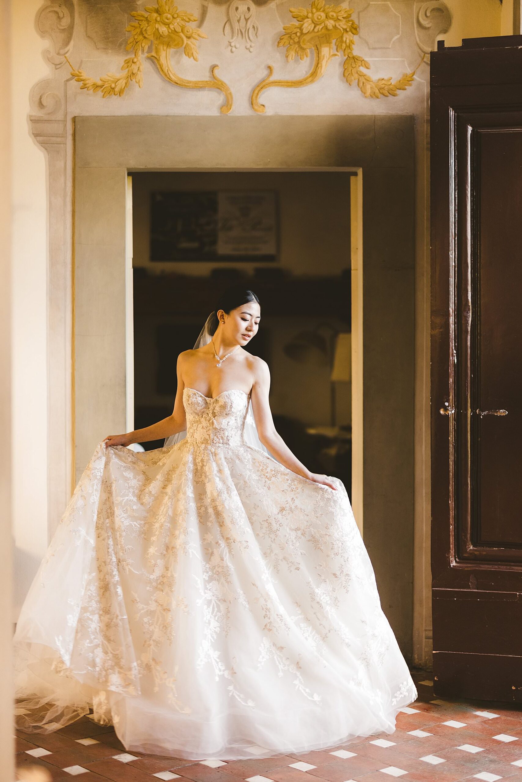 Elegant bridal pre-wedding portrait at Villa Le Piazzole a charming estate right out of Florence. Photo by the Italian classic and elegant engagement photographer in Tuscany based Florence Gabriele Fani