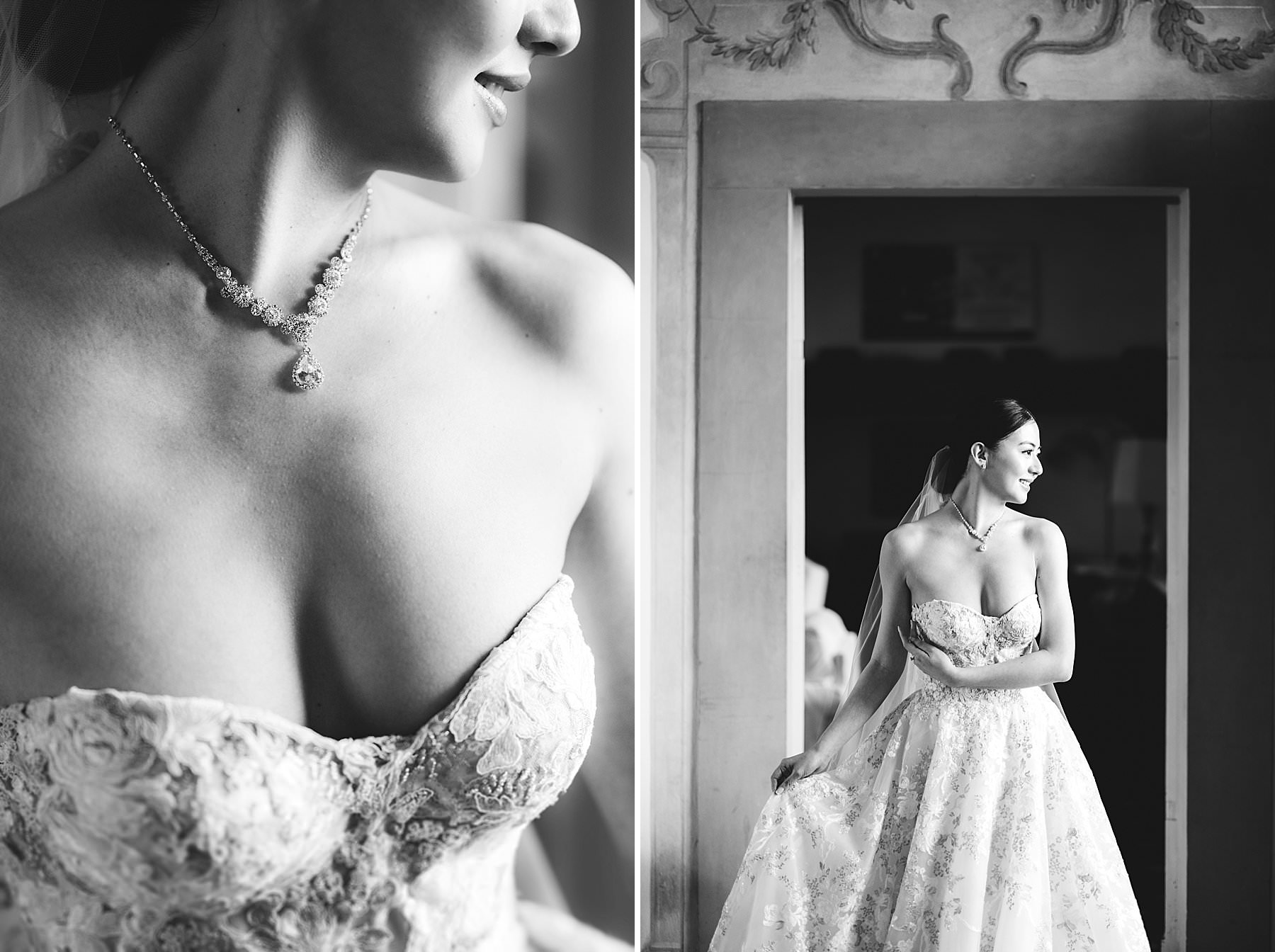 Elegant pre-wedding bridal portrait at Villa Le Piazzole a charming estate. Photo by the Italian classic and elegant engagement photographer in Tuscany based Florence Gabriele Fani