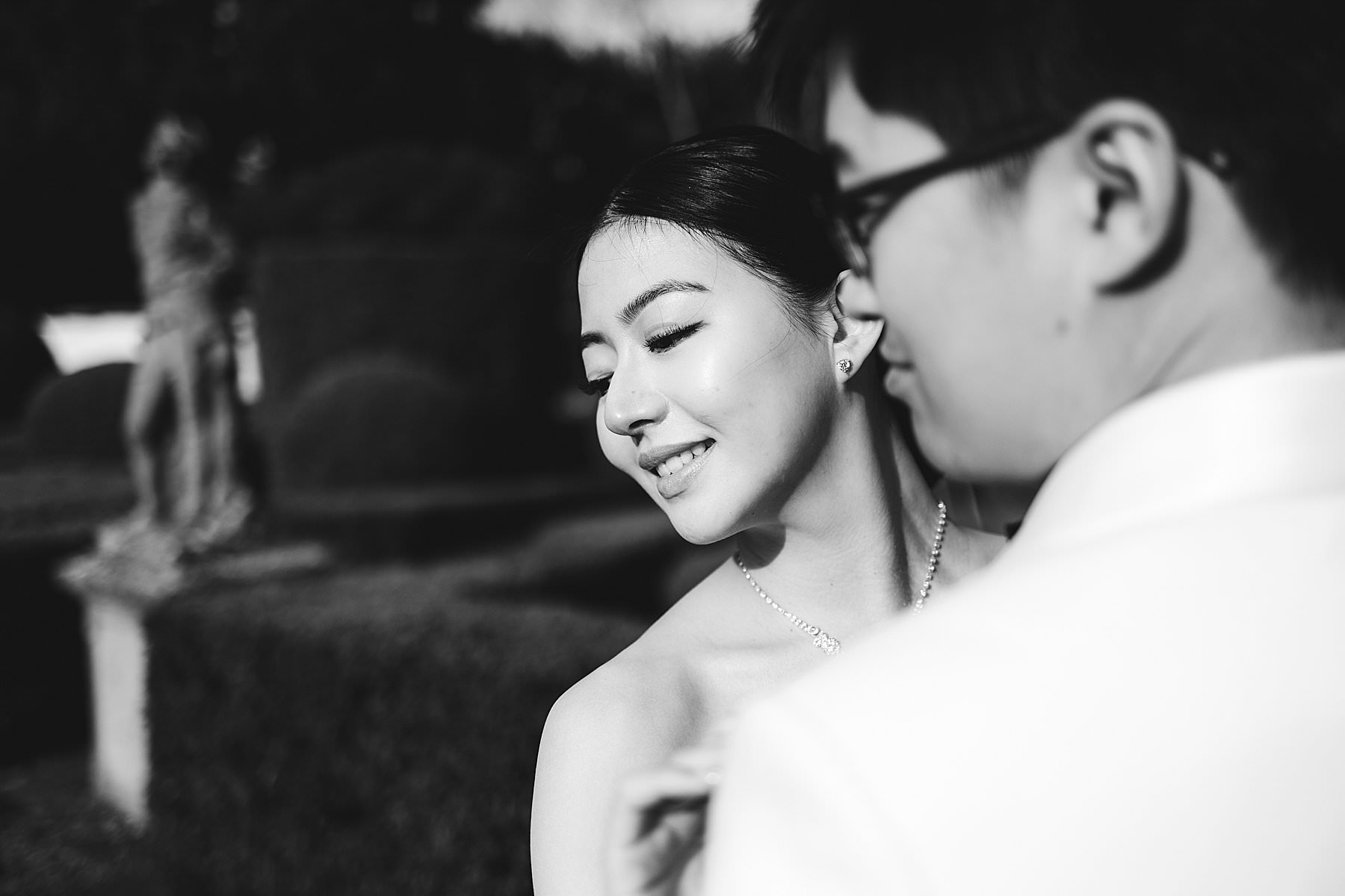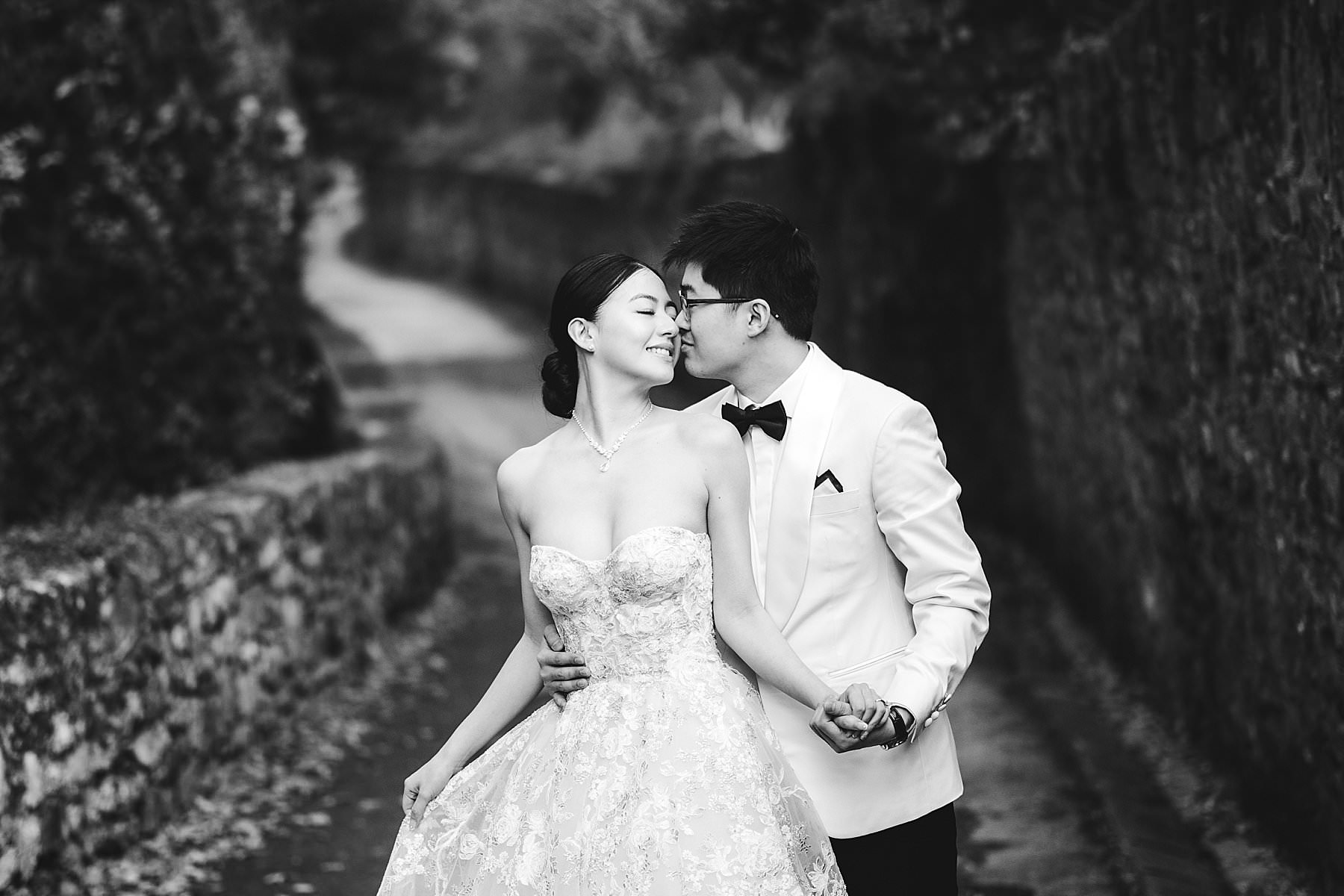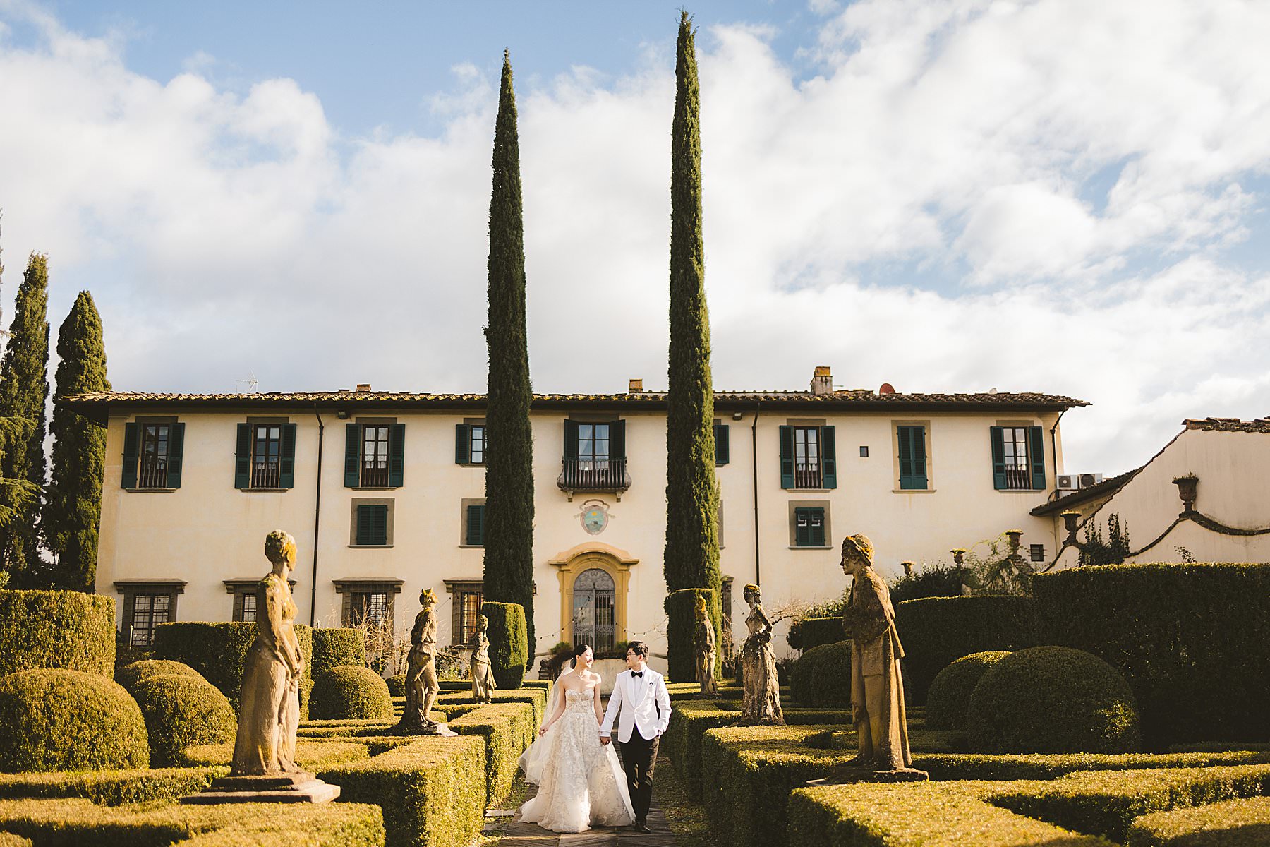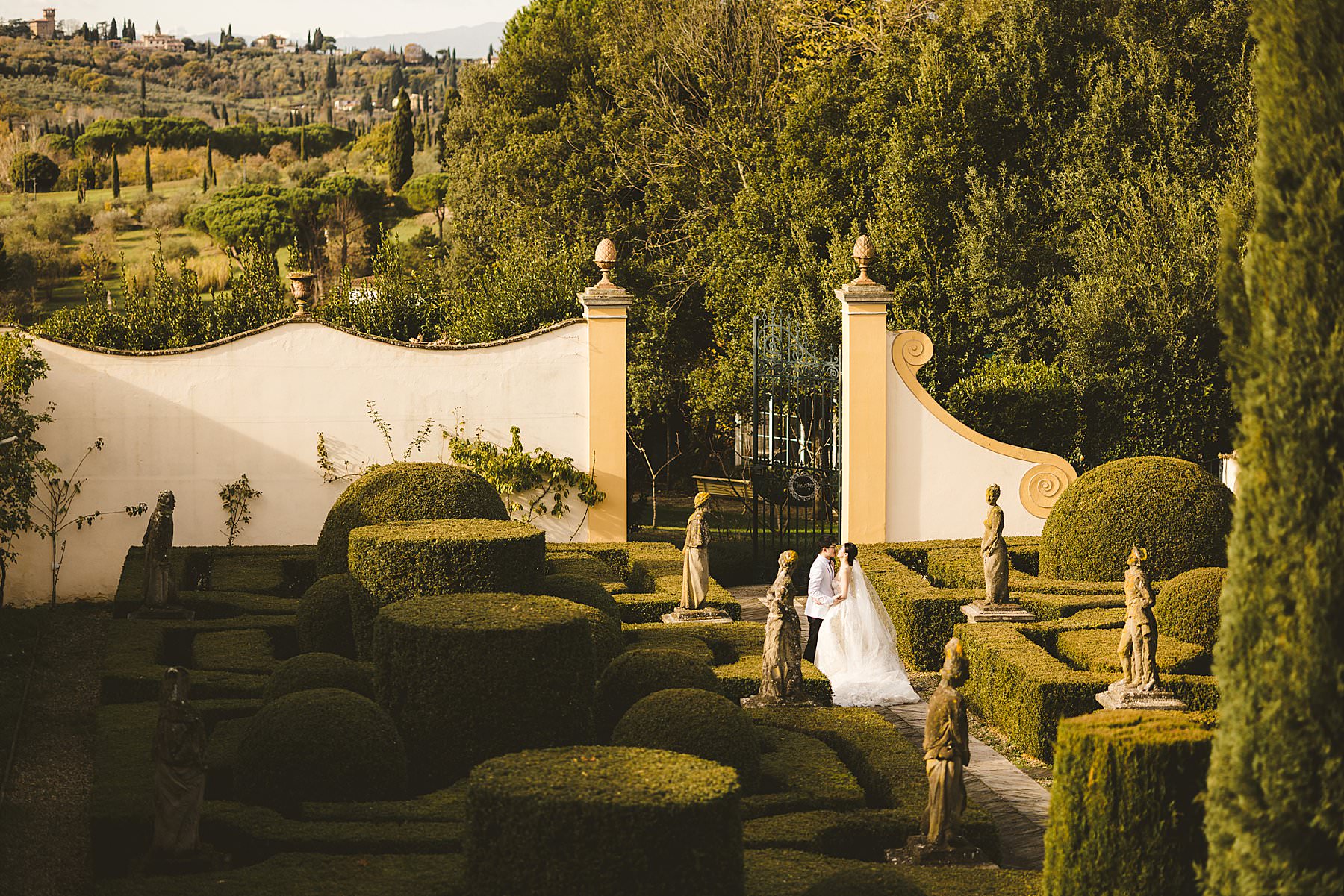 Elegant asian couple pre-wedding photo shoot in Florence at Villa Le Piazzole in the Italian garden. Photo by the Italian classic and elegant engagement photographer in Tuscany based Florence Gabriele Fani