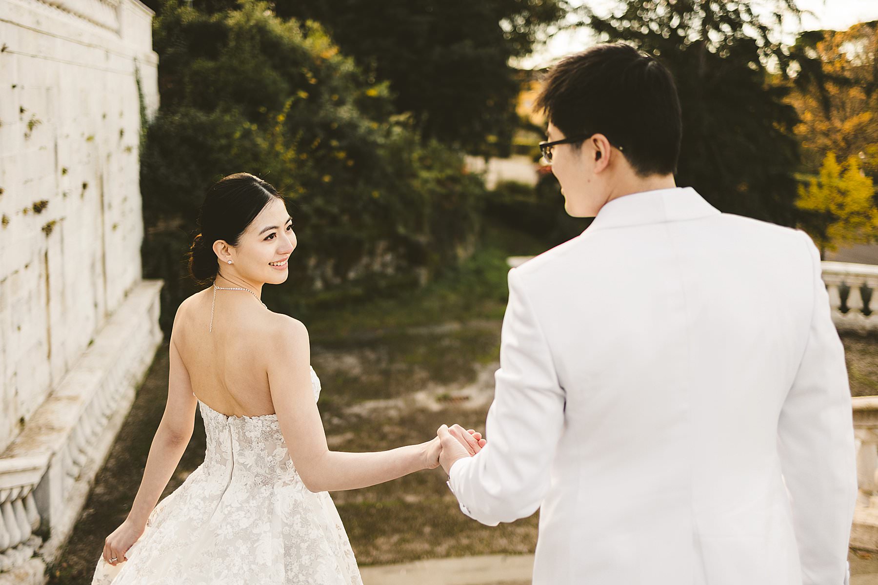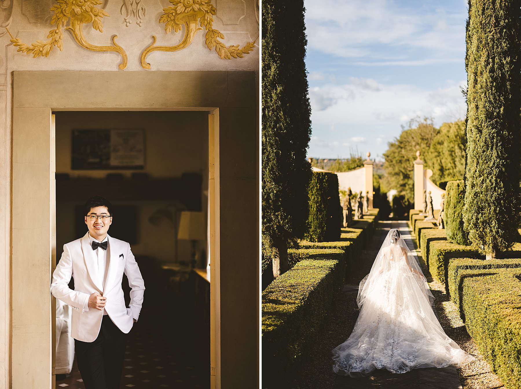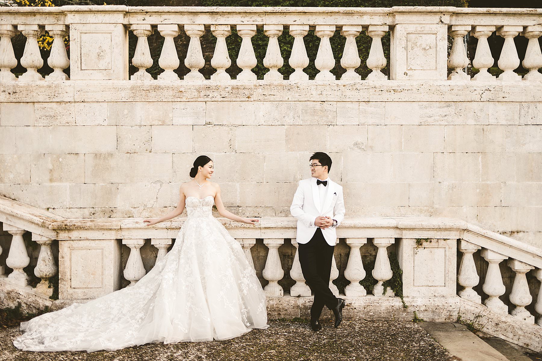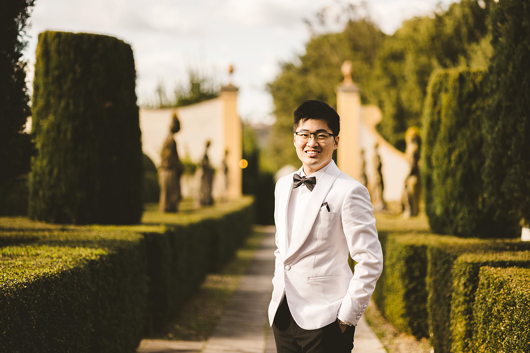 Elegant asian couple pre-wedding photo shoot in Florence at Villa Le Piazzole in the Italian garden. Photo by the Italian classic and elegant engagement photographer in Tuscany based Florence Gabriele Fani