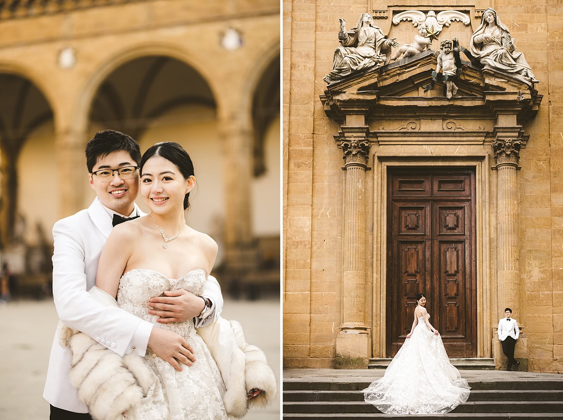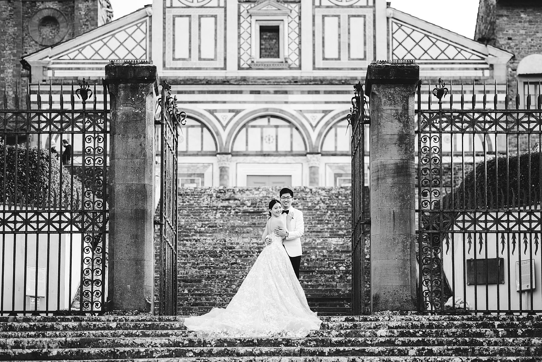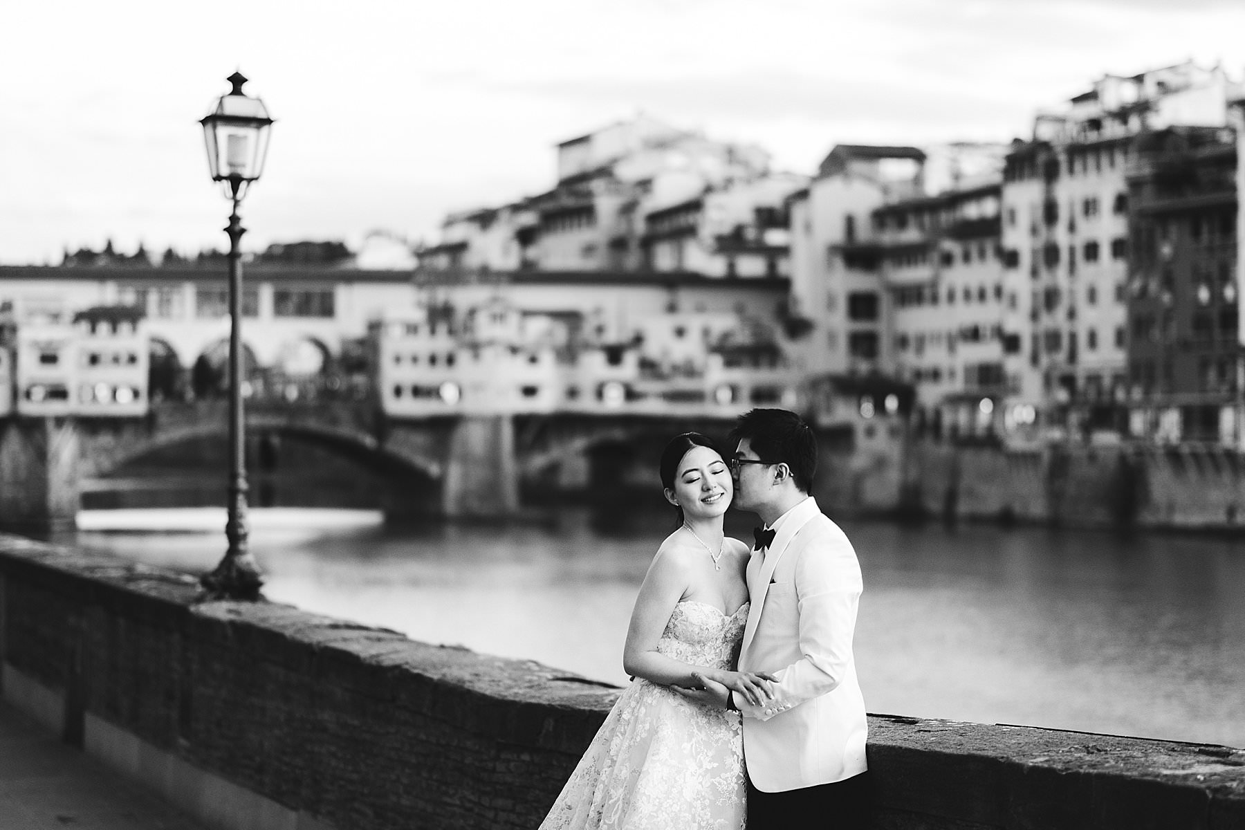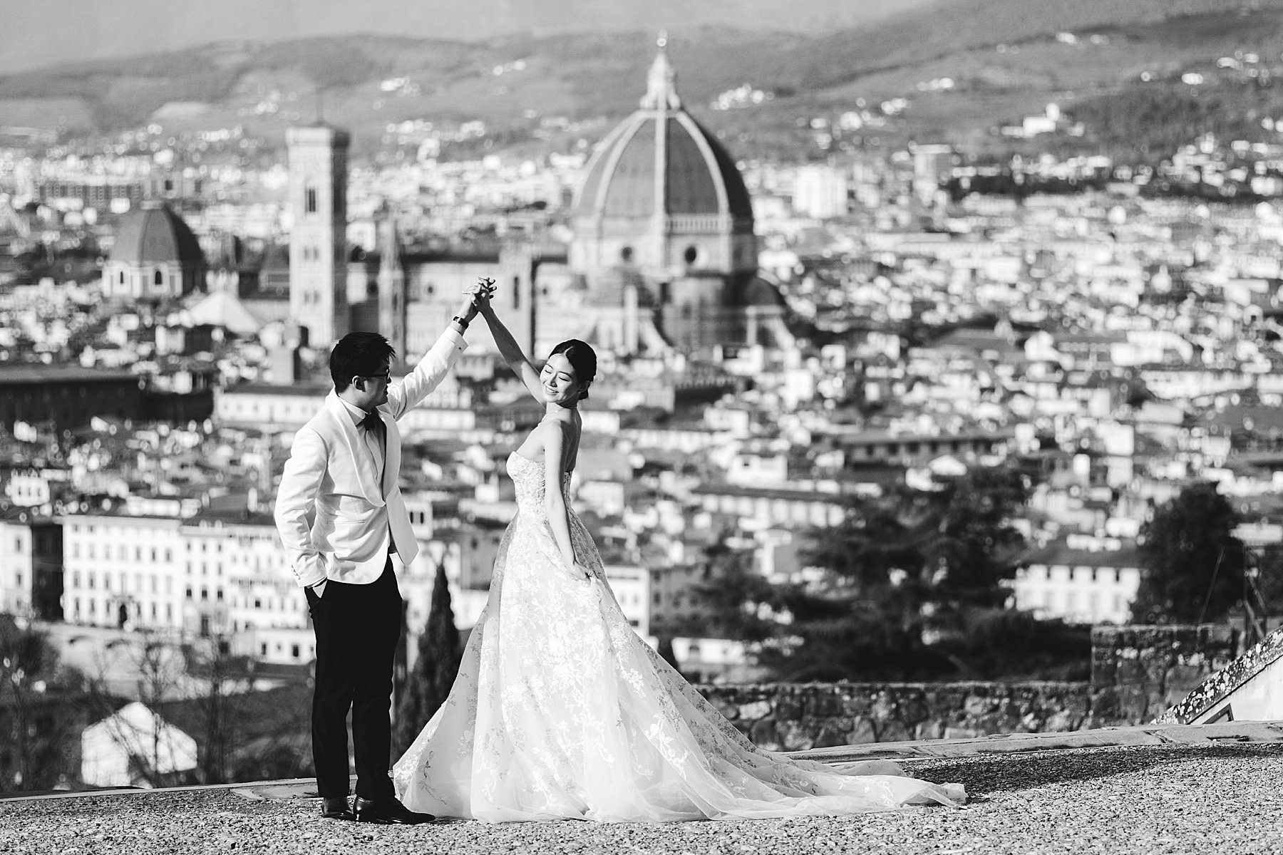 The second part of the engagement session took place in the city: even though tourists usually come in the summer, Florence in winter has a magic allure. From San Miniato al Monte to the historic heart of town, I pictured Carmen and Yang in all of the most iconic spots. I loved their wedding outfits, both white: they convey to each photo a touch of undisputable grace and sophistication.