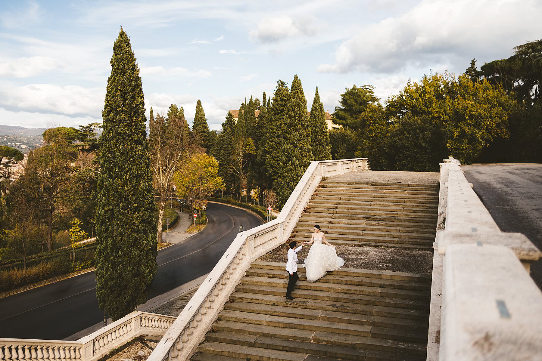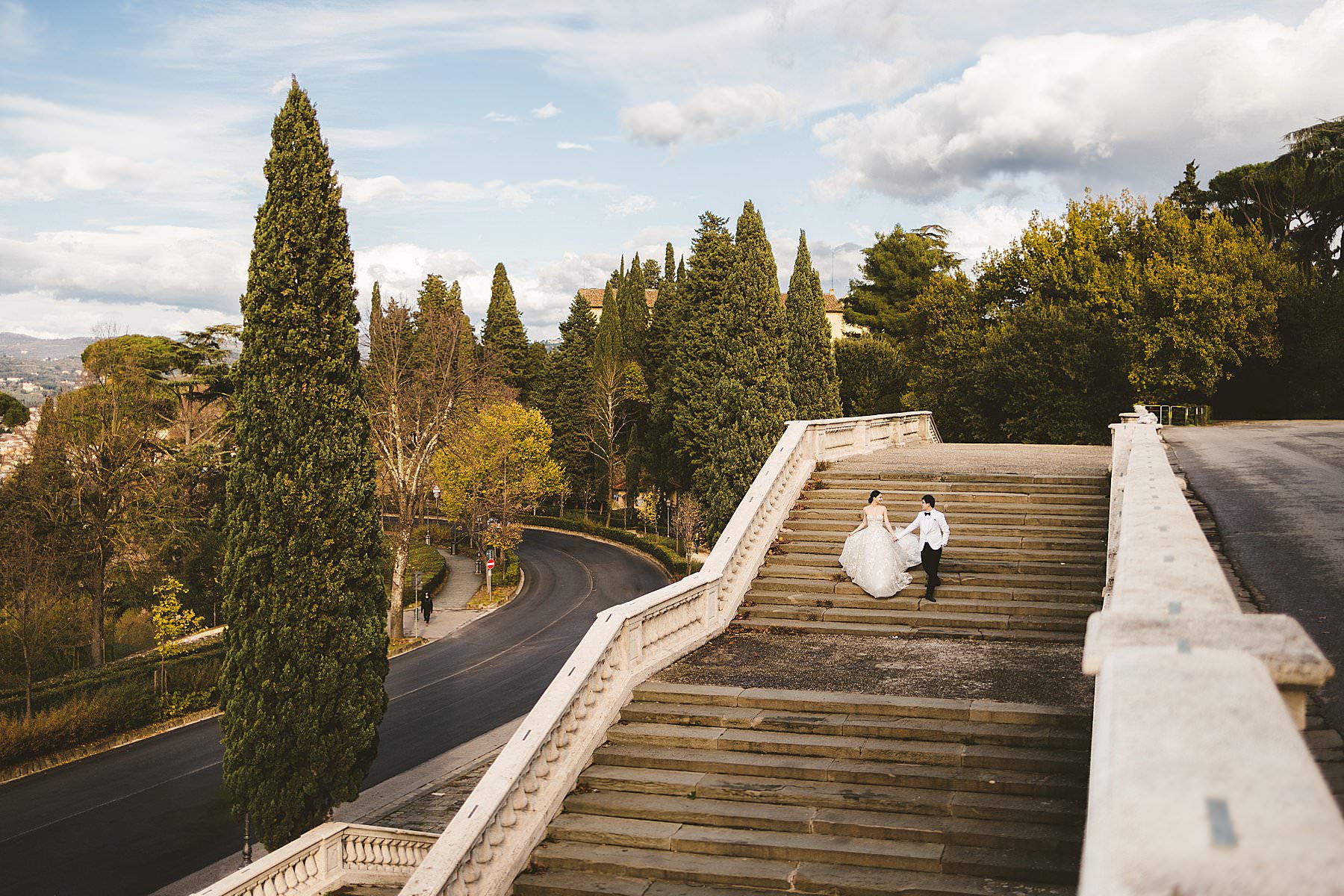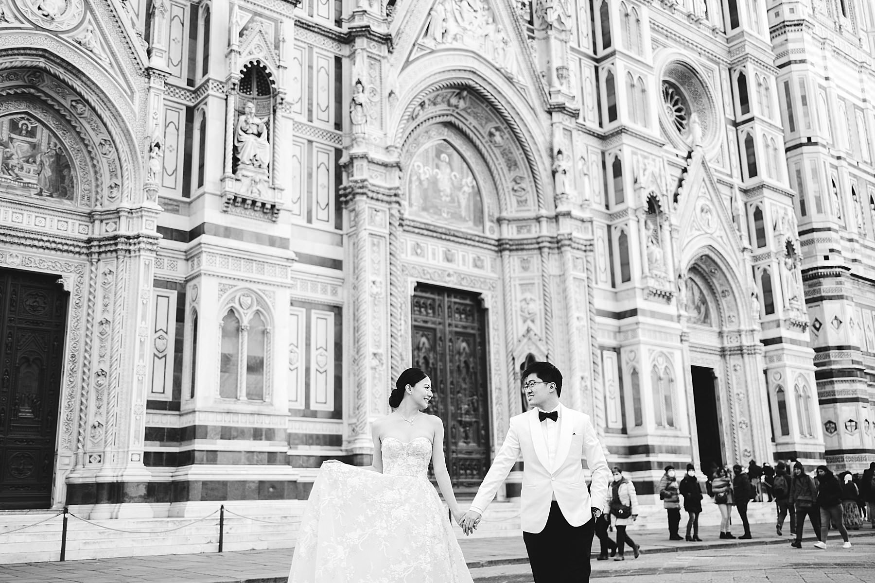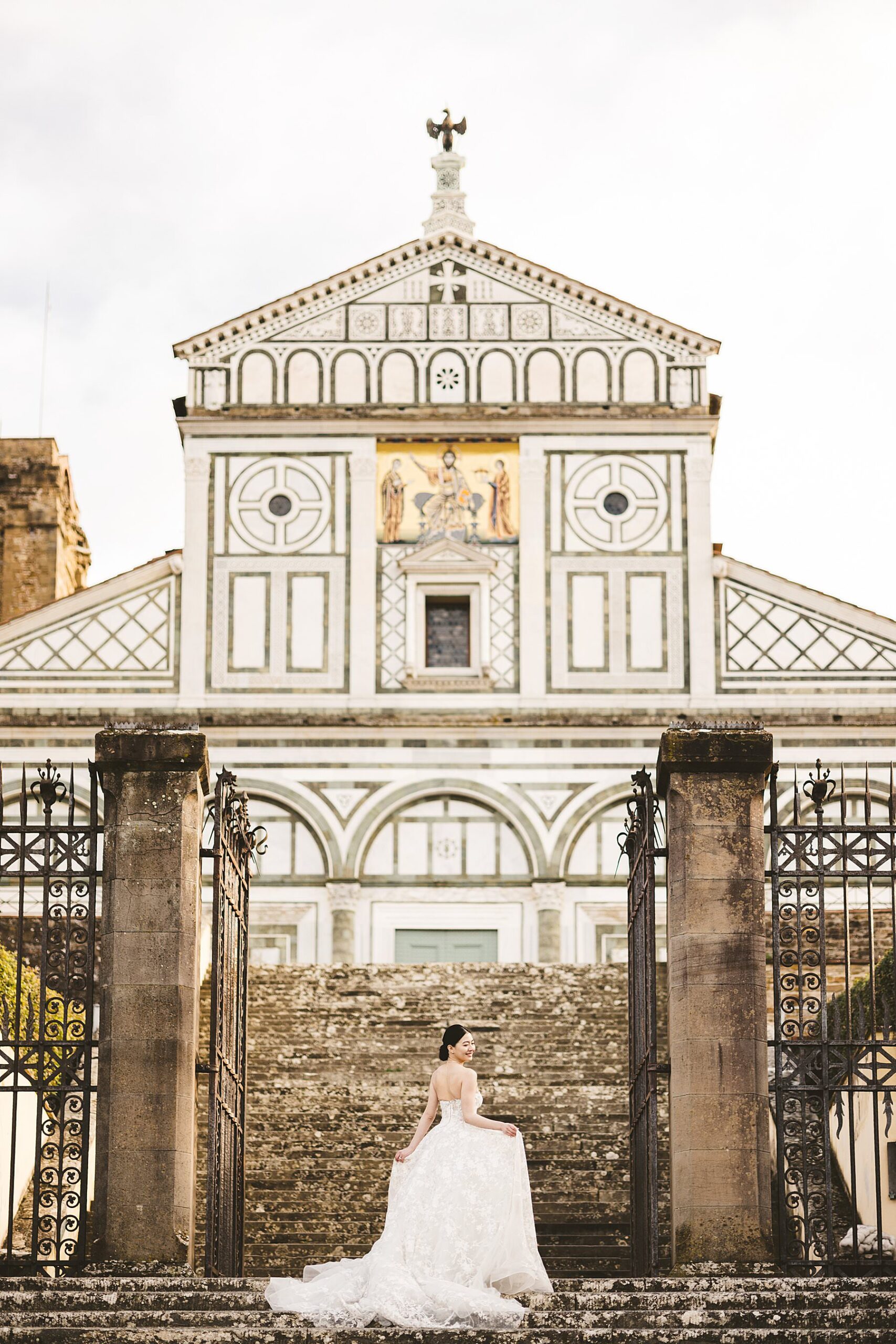 The second part of the engagement session took place in the city: even though tourists usually come in the summer, Florence in winter has a magic allure. From San Miniato al Monte to the historic heart of town, I pictured Carmen and Yang in all of the most iconic spots. I loved their wedding outfits, both white: they convey to each photo a touch of undisputable grace and sophistication.