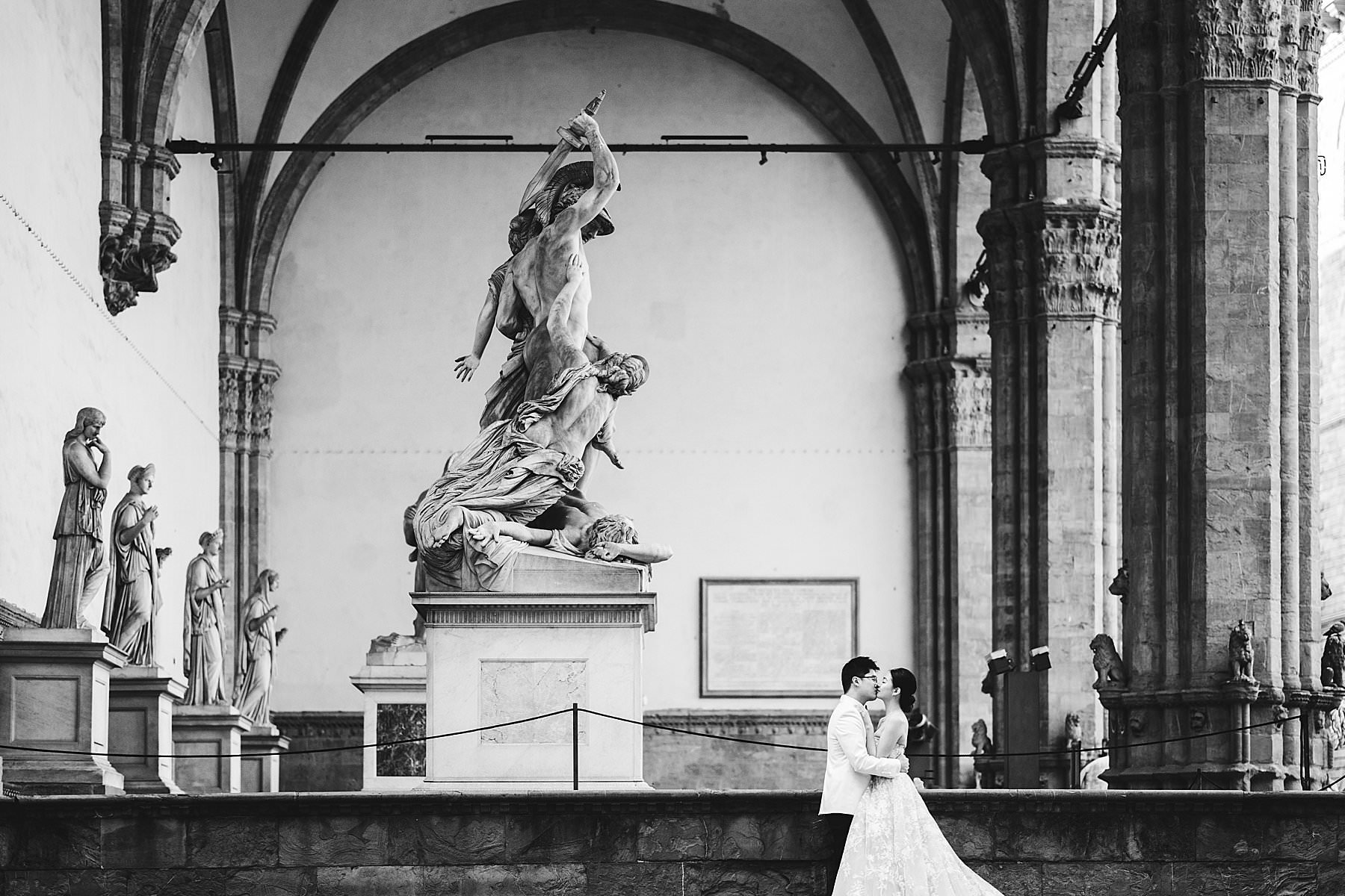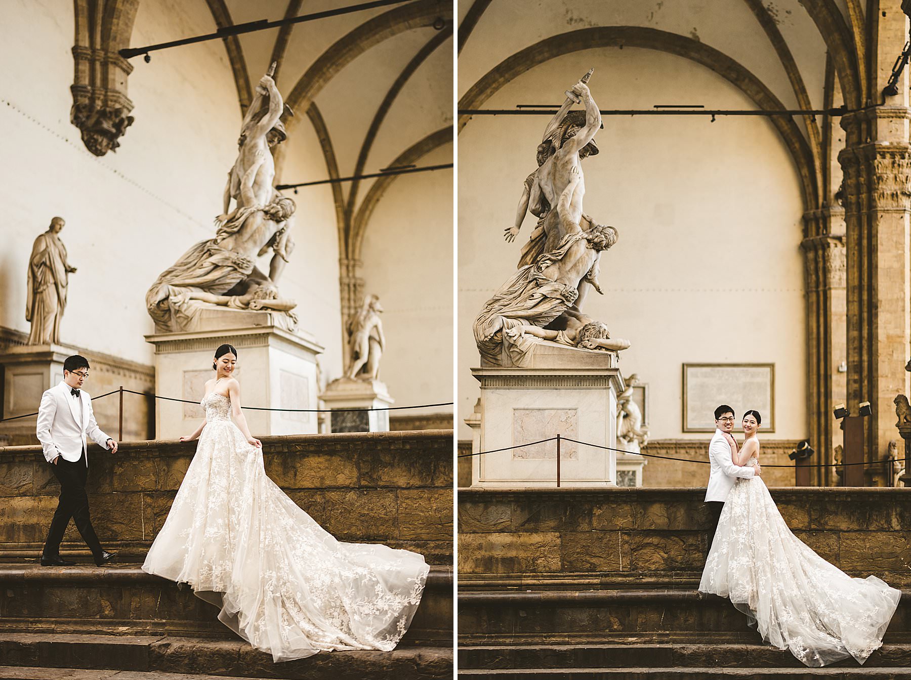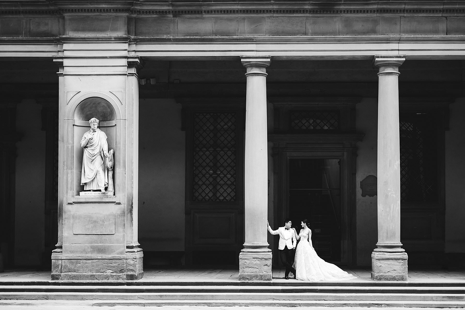 Elegant pre-wedding photography in the very heart of Florence. Photo by the Italian classic and elegant engagement photographer in Tuscany based Florence Gabriele Fani
