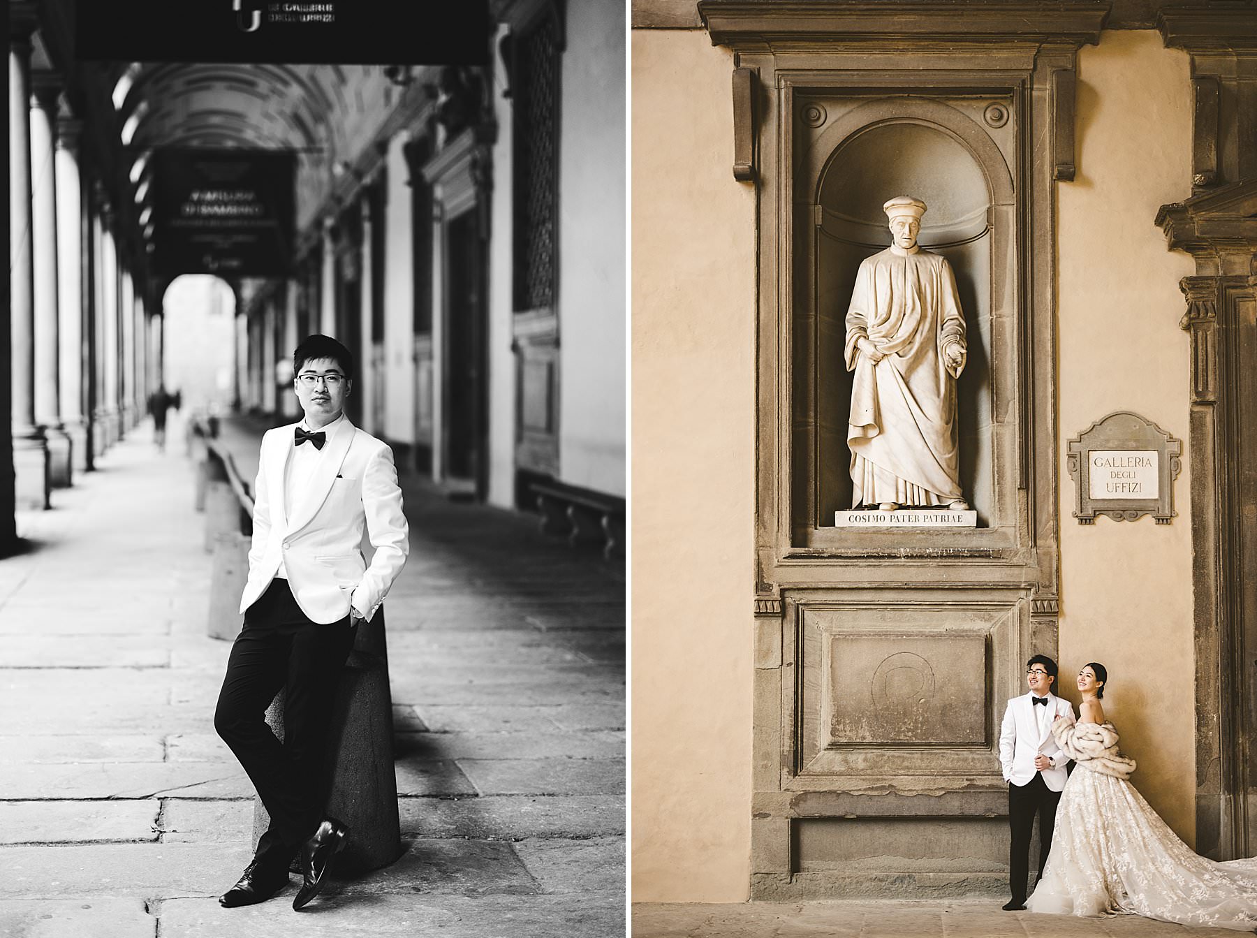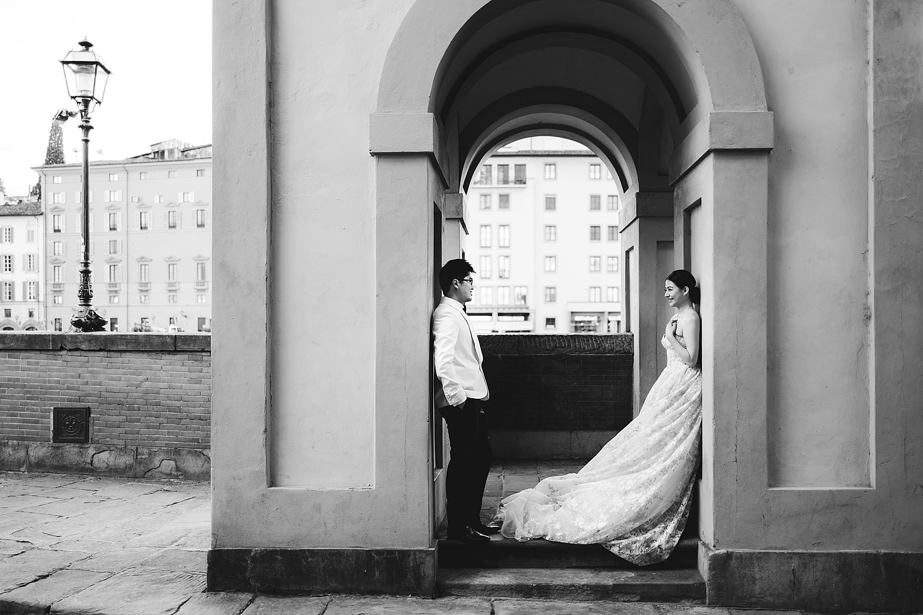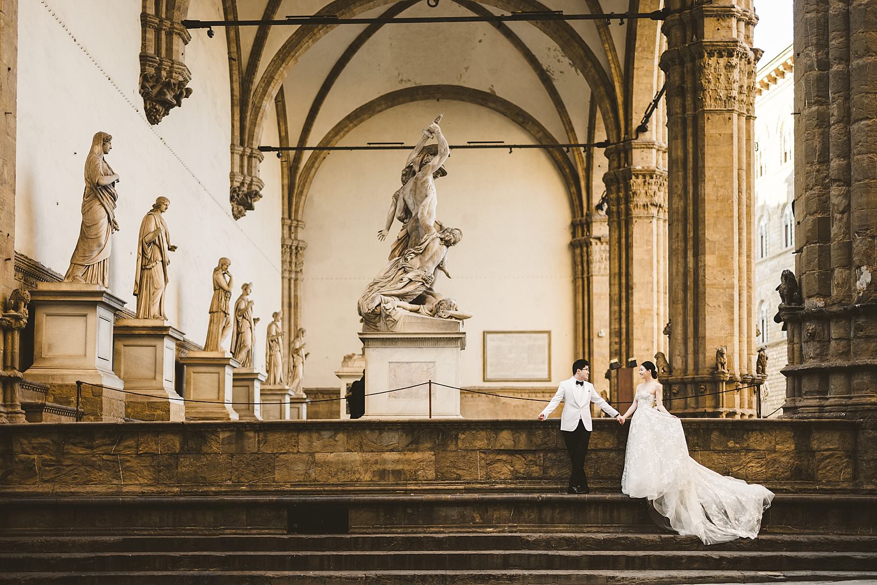 Elegant pre-wedding photography in the very heart of Florence. Photo by the Italian classic and elegant engagement photographer in Tuscany based Florence Gabriele Fani