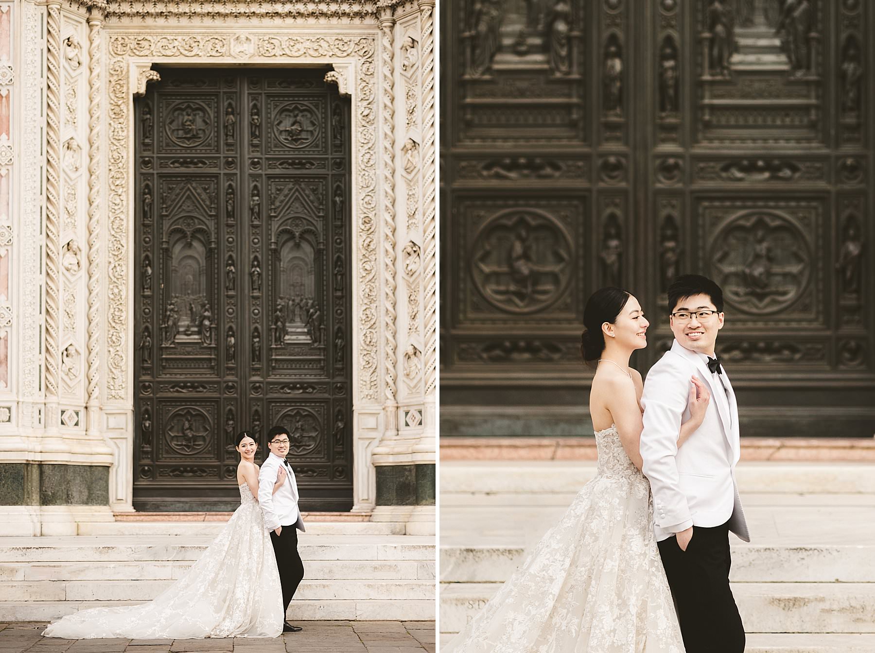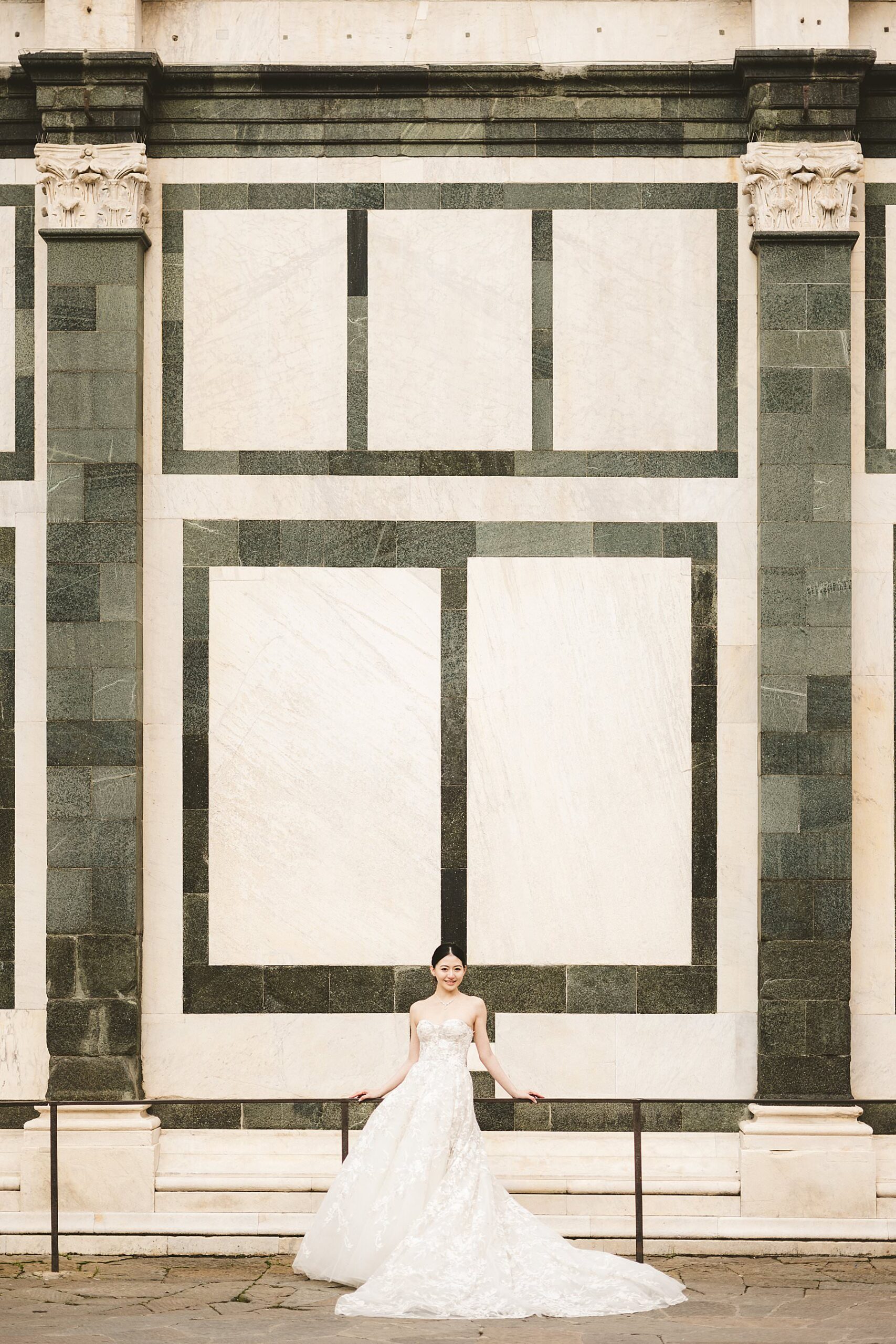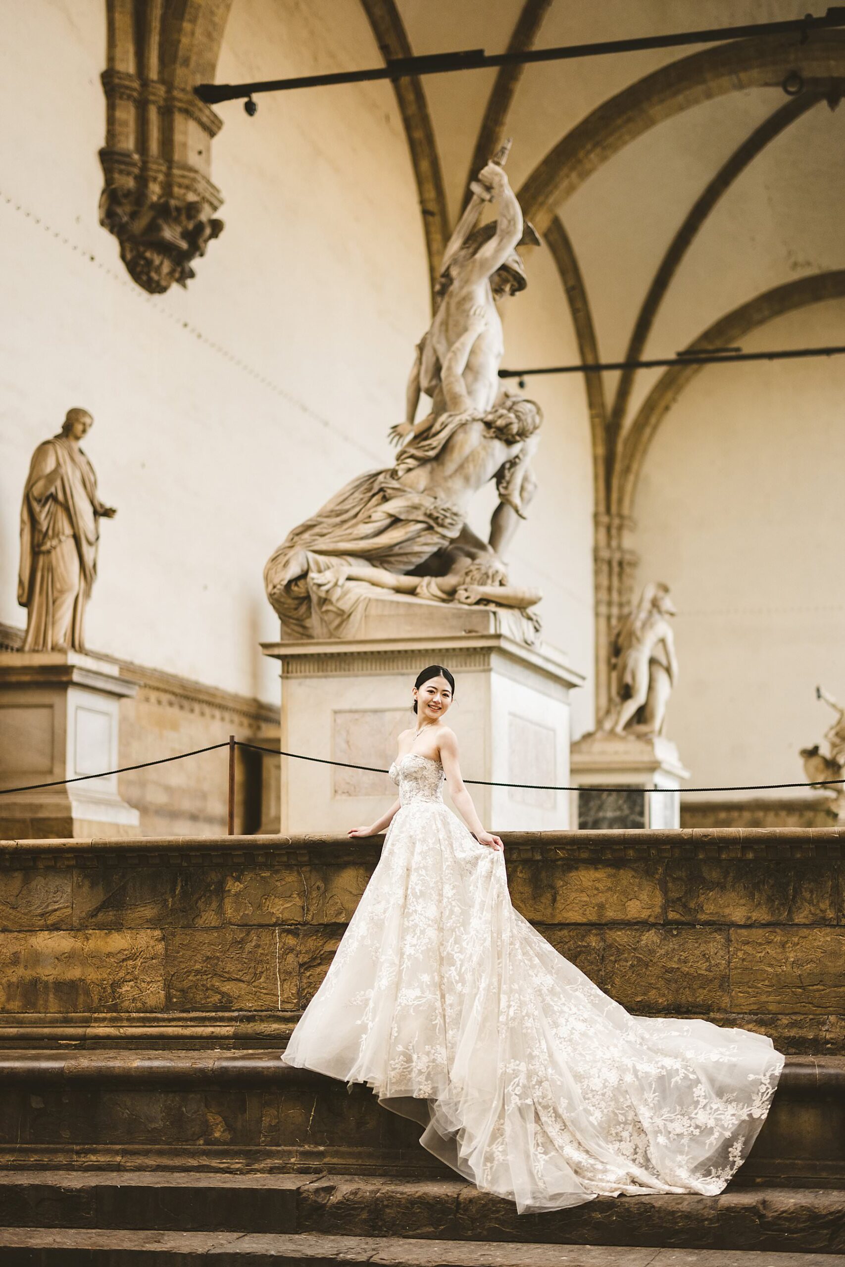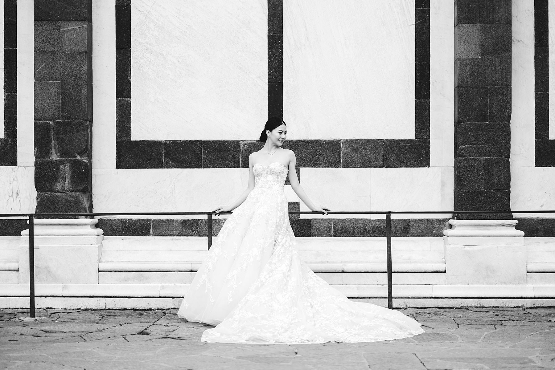 Beautiful bride pre-wedding photo shoot in Florence at the Duomo. Photo by the Italian classic and elegant engagement photographer in Tuscany based Florence Gabriele Fani