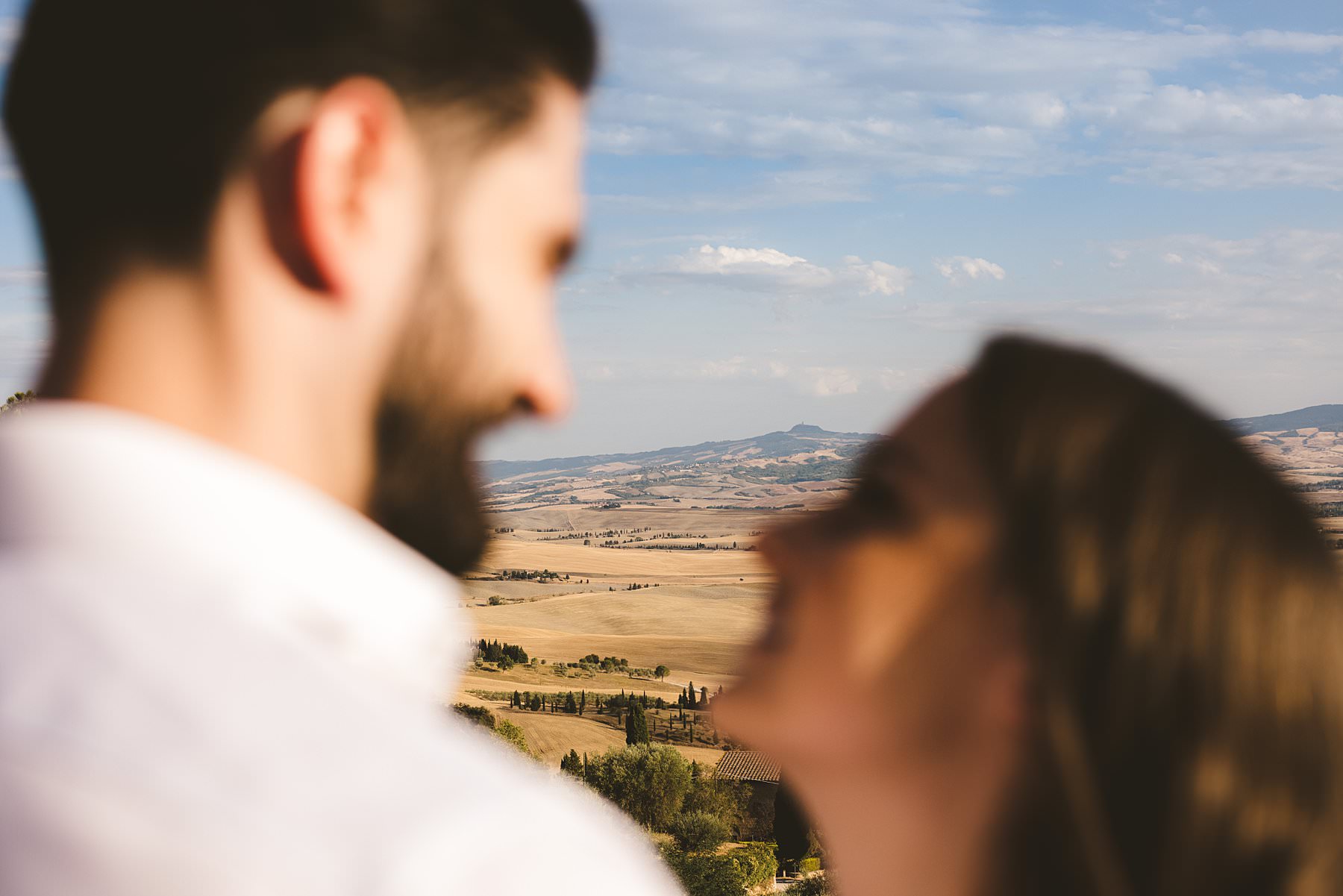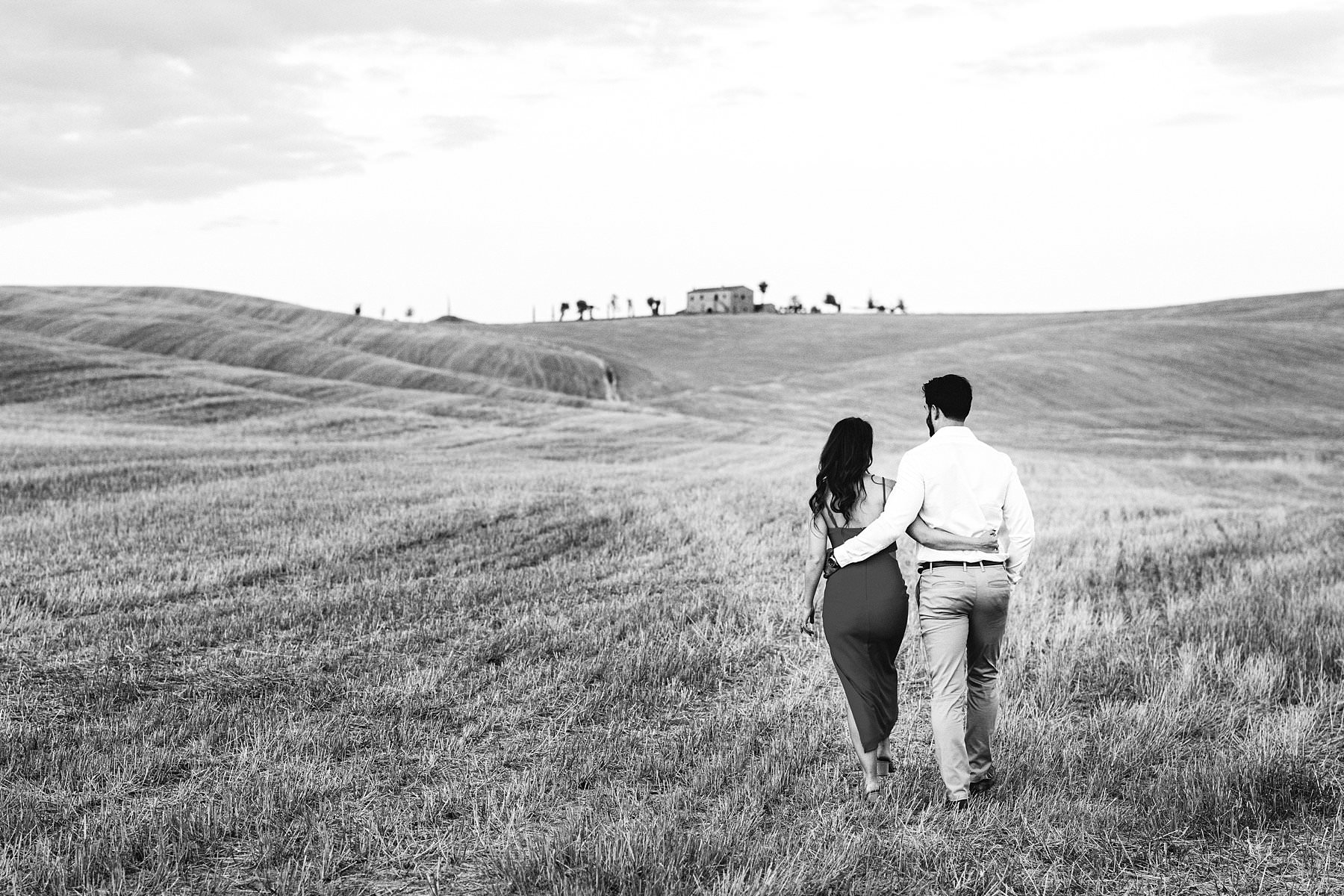 The Val D’Orcia, the best region in Tuscany where to book a couple portrait photo shoot. Photo by the Italian creative elegant and modern engagement photographer in Tuscany Gabriele Fani.